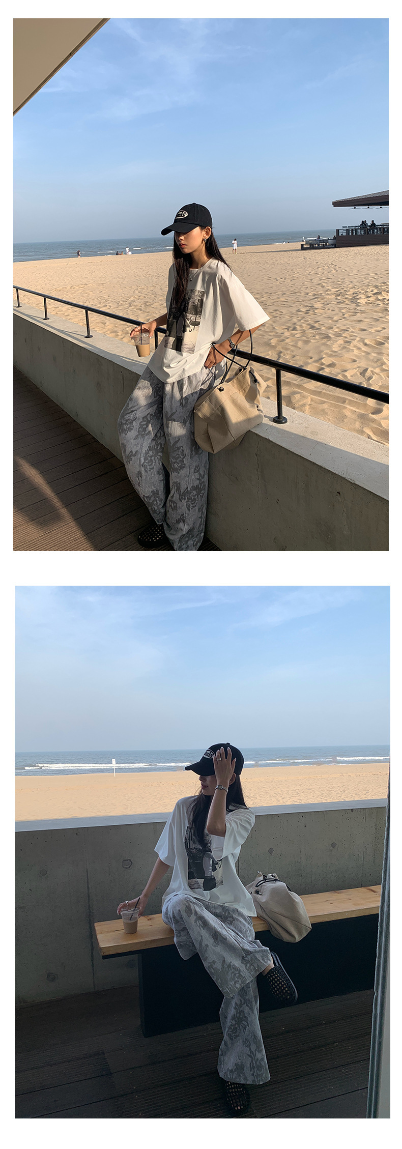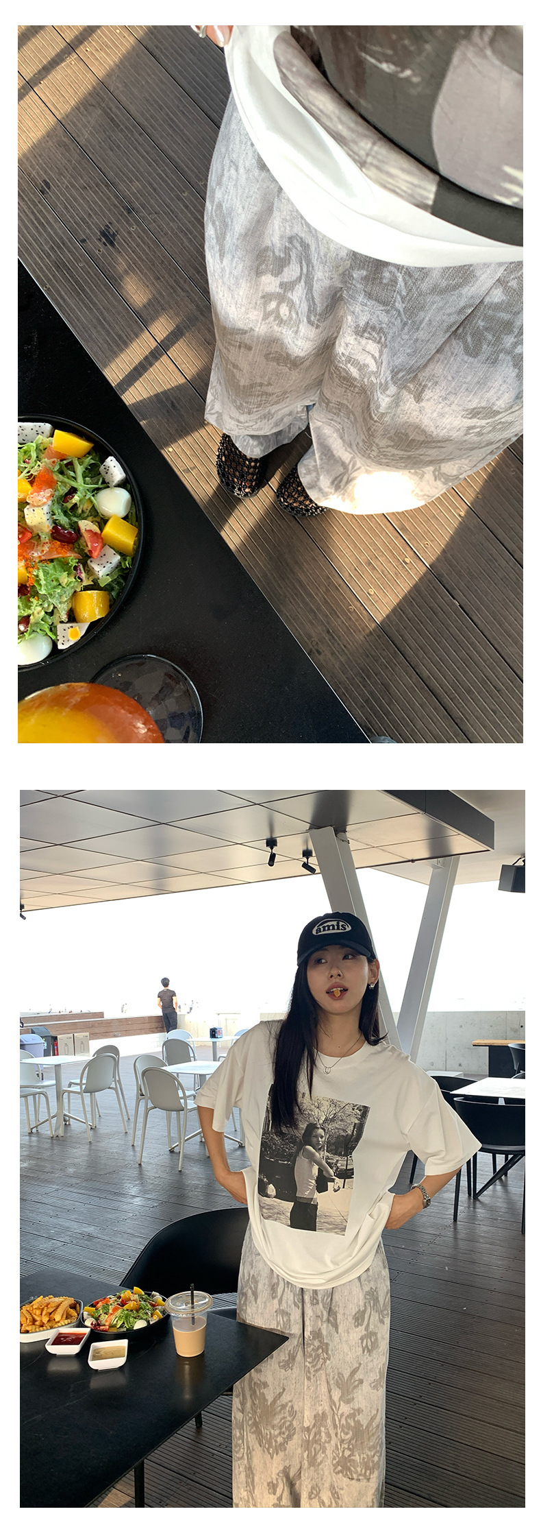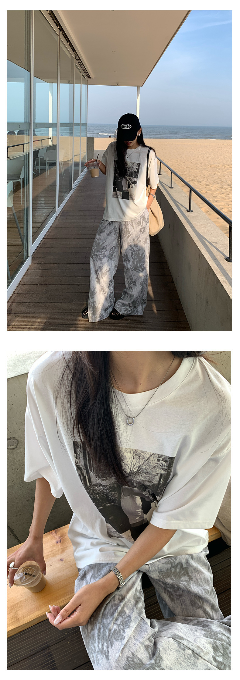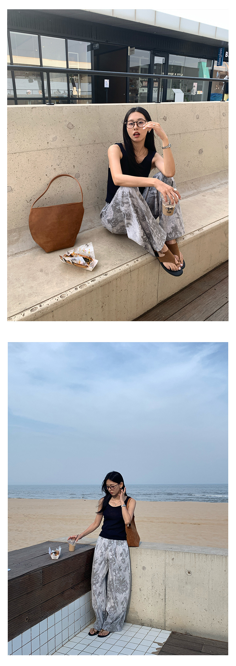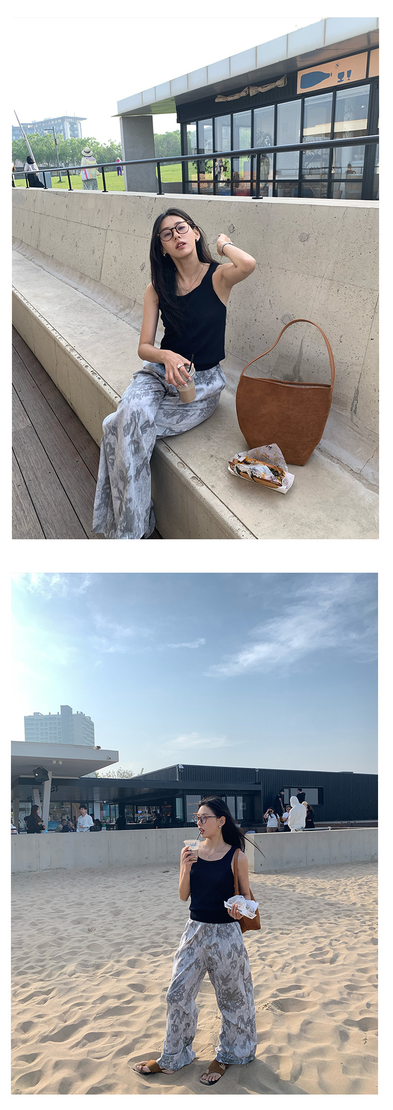 *o-ha-you*【FHZH1GB5020621】韓系復古印花高級​​感闊腿褲高腰寬鬆垂感松馳拖地褲