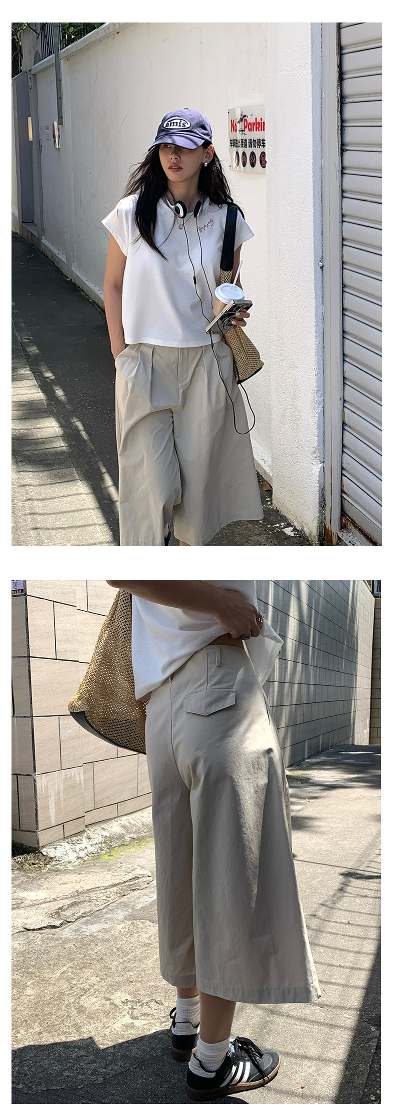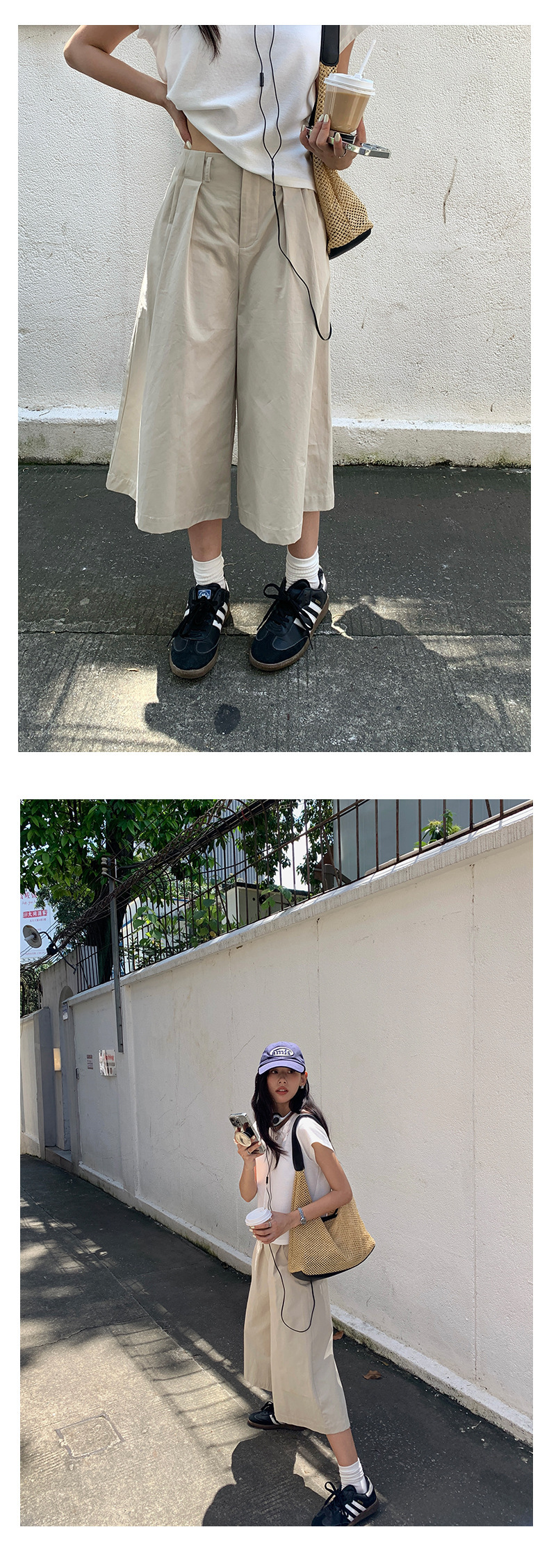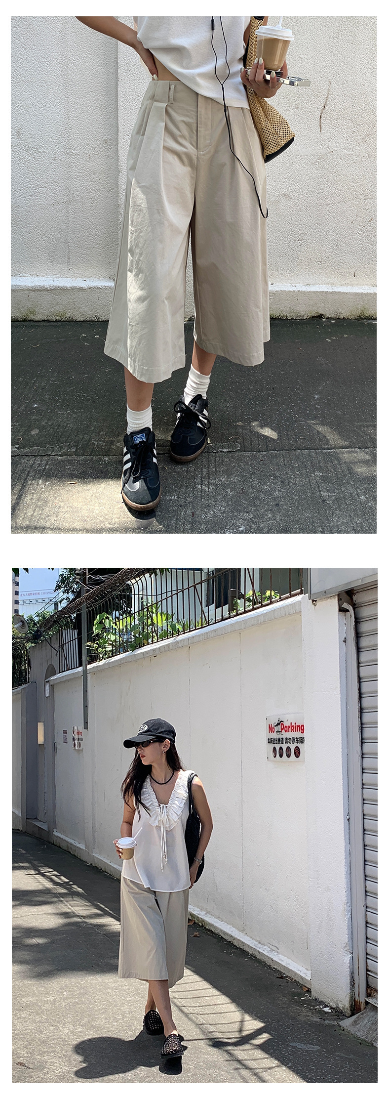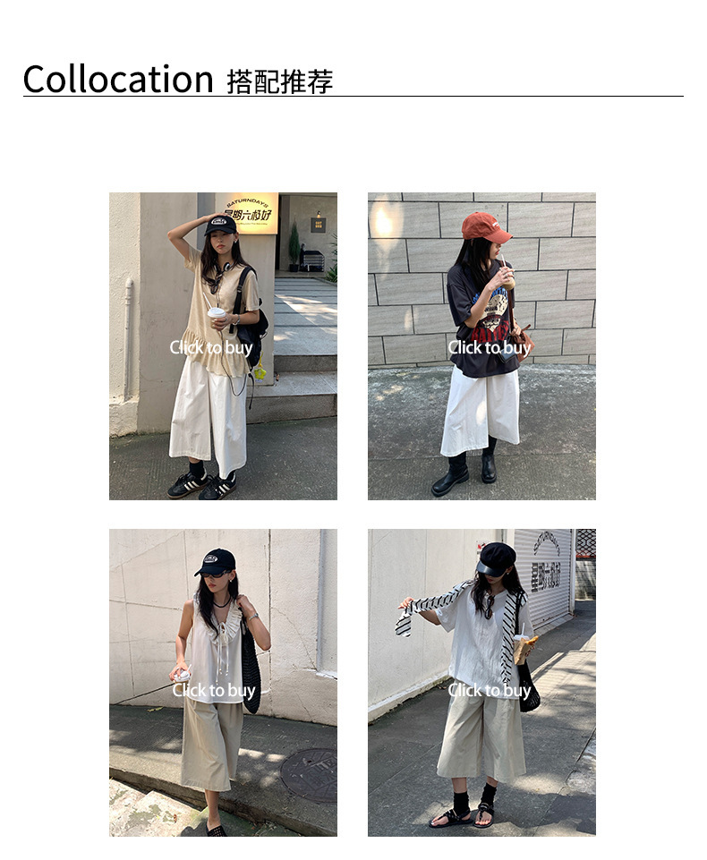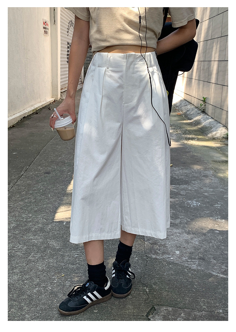 *o-ha-you*【FHZH1GB5020697】韓版純色低腰壓褶中褲女百搭寬鬆直筒版型七分褲-2色-如有需要請先諮詢