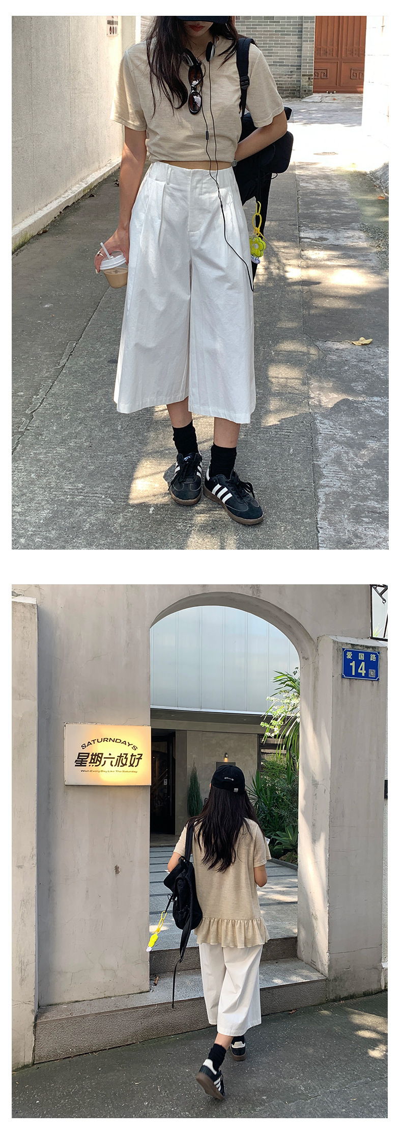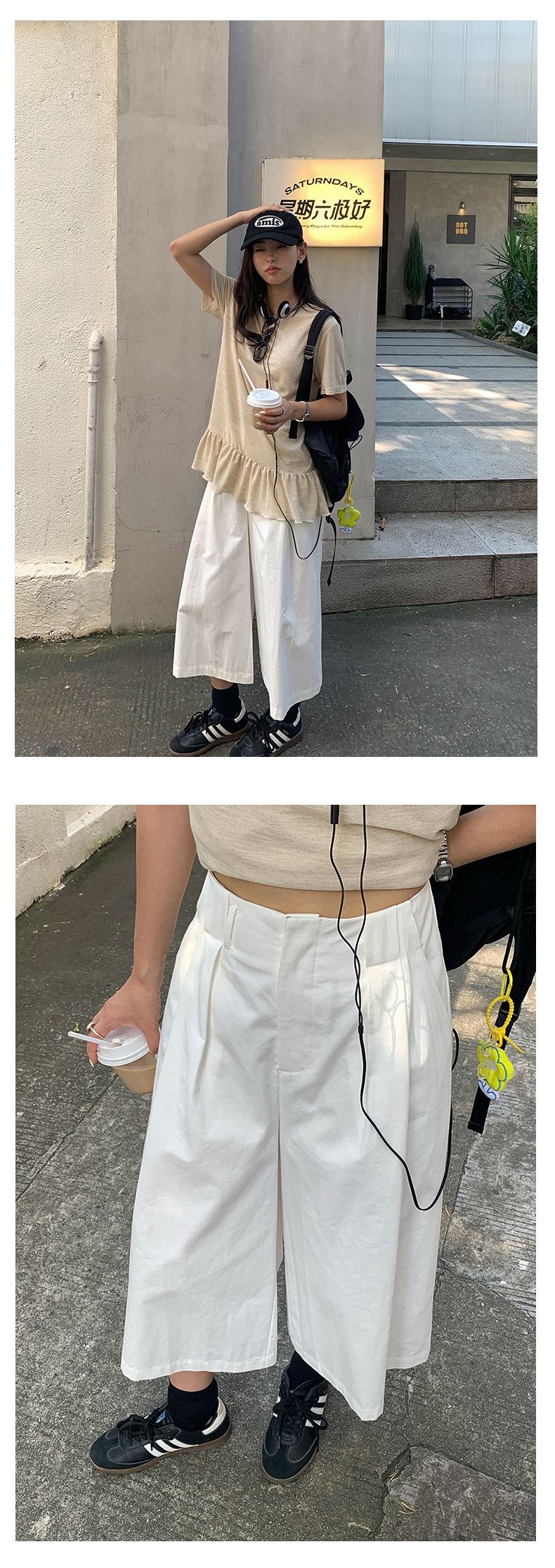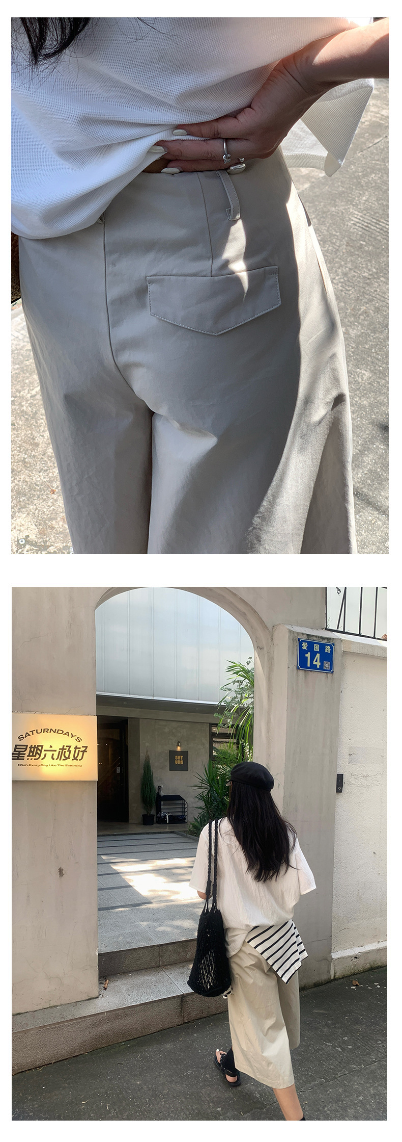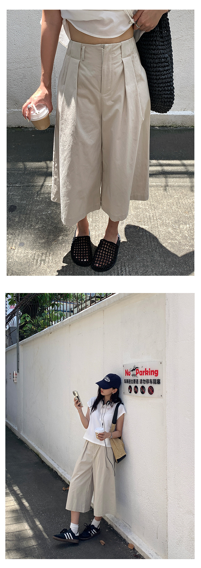 *o-ha-you*【FHZH1GB5020697】韓版純色低腰壓褶中褲女百搭寬鬆直筒版型七分褲-2色-如有需要請先諮詢