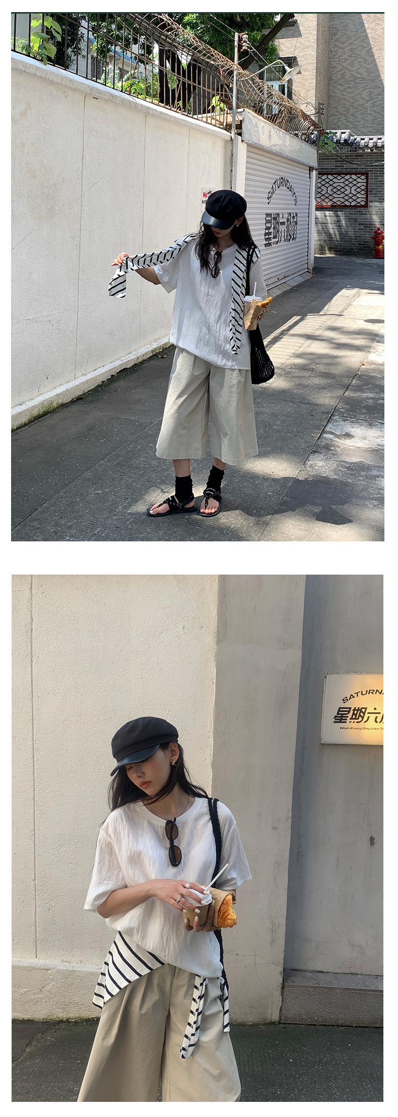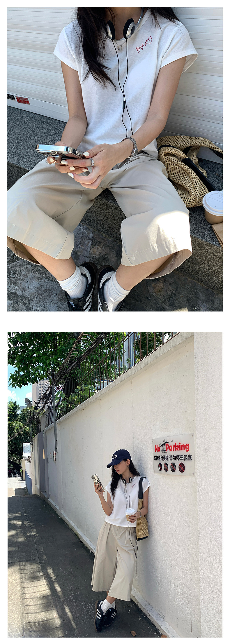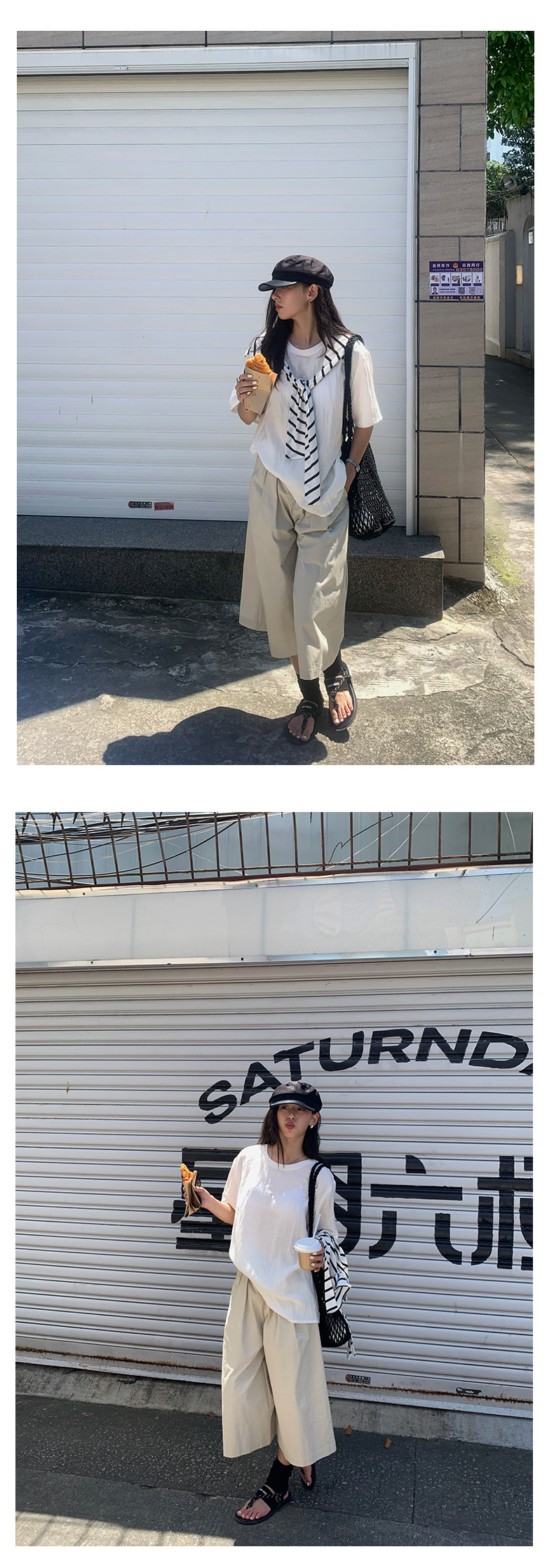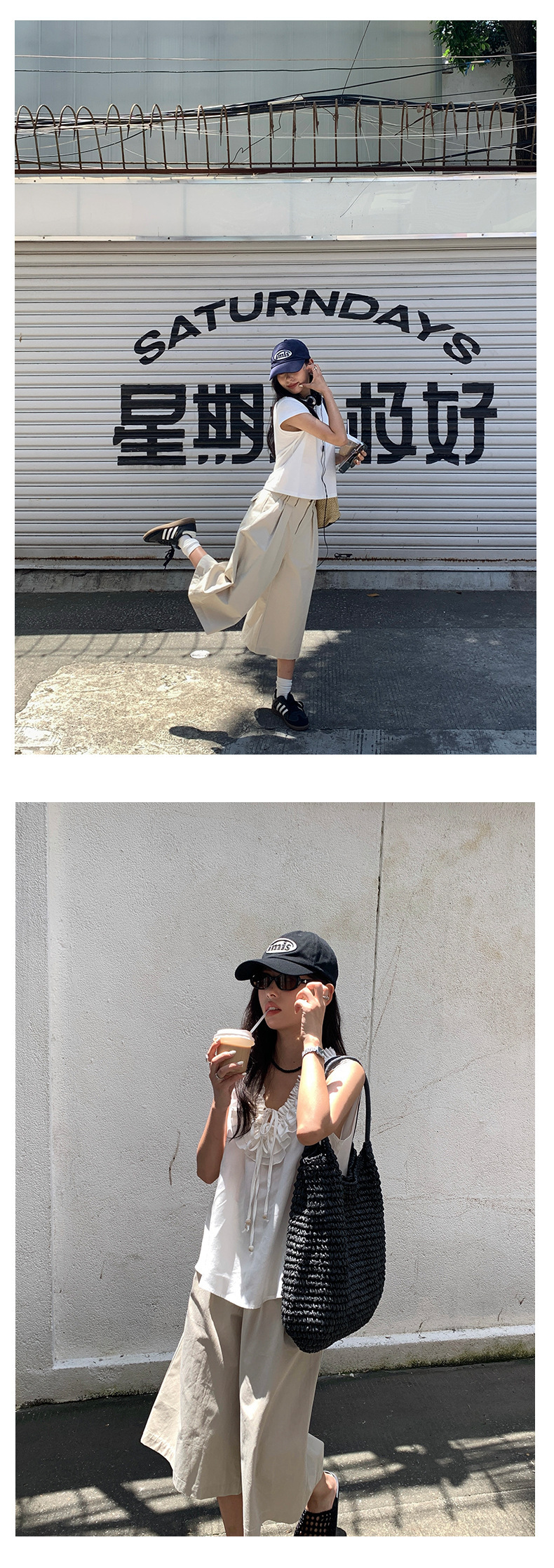 *o-ha-you*【FHZH1GB5020697】韓版純色低腰壓褶中褲女百搭寬鬆直筒版型七分褲-2色-如有需要請先諮詢