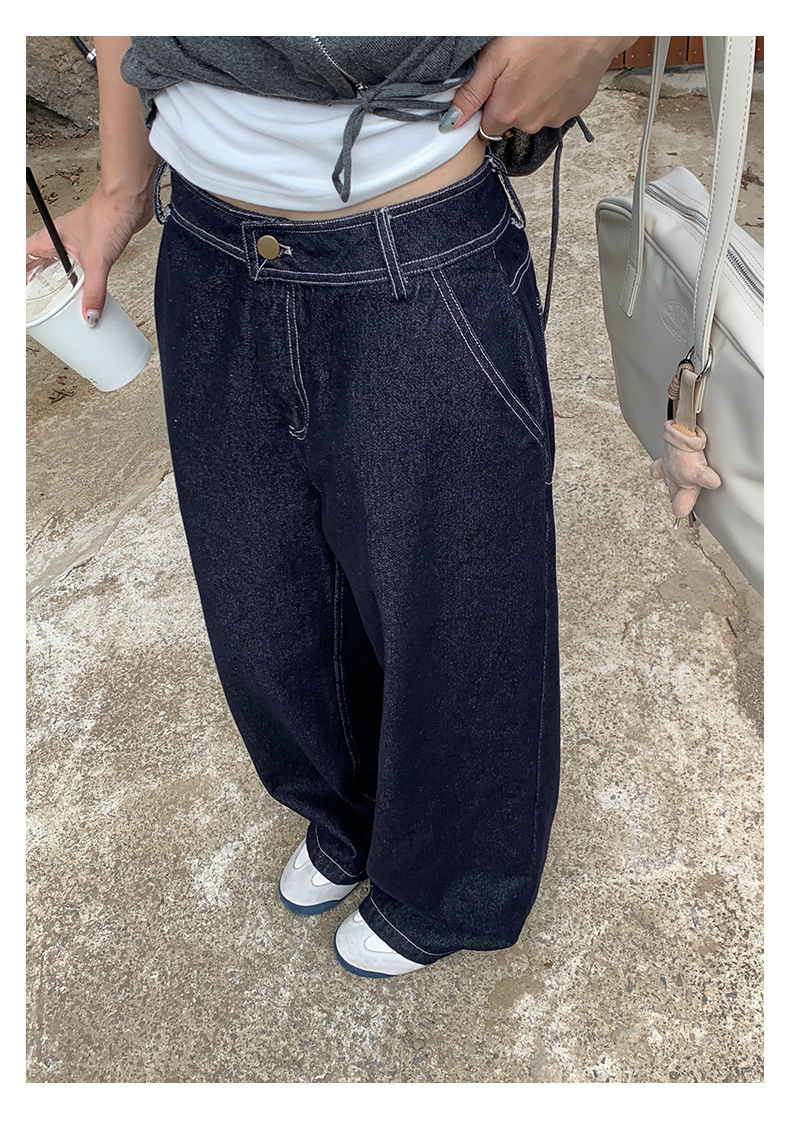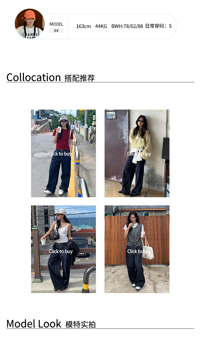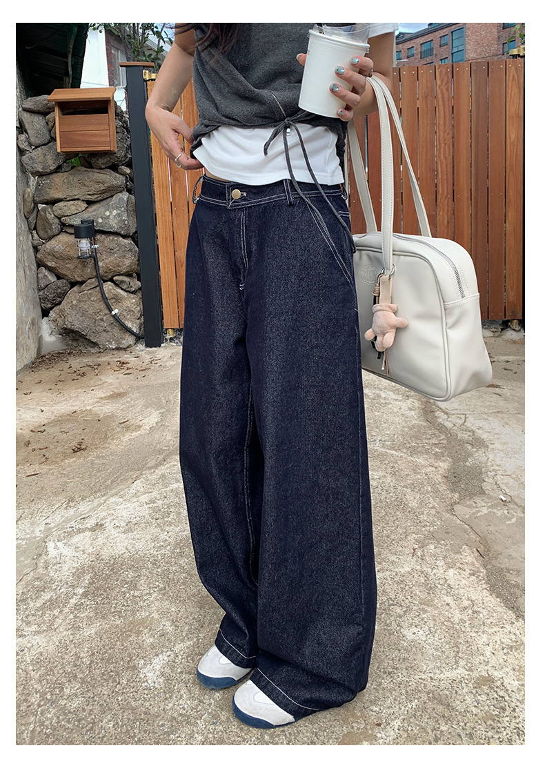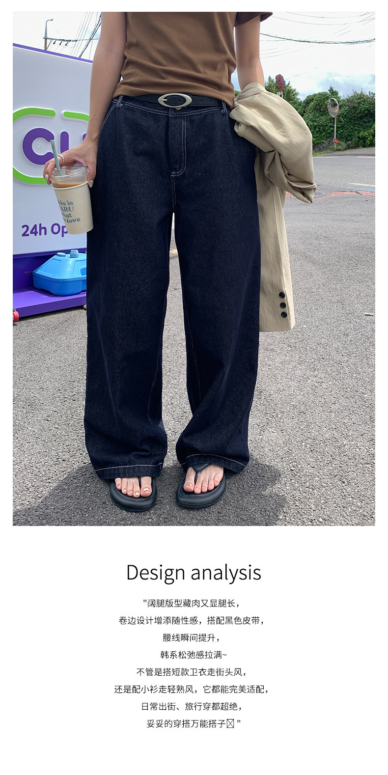 *o-ha-you*【FHZH1GB5030768】美式復古水洗棉直筒牛仔褲小個子顯腿長闊腿長褲