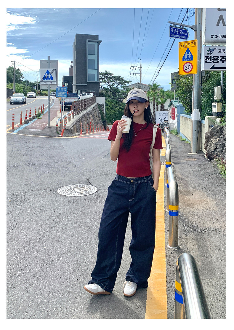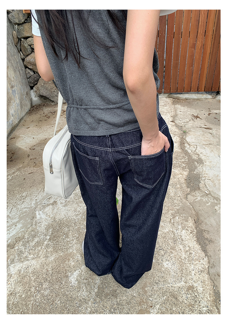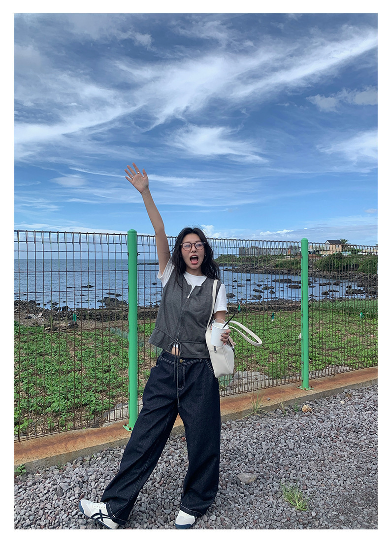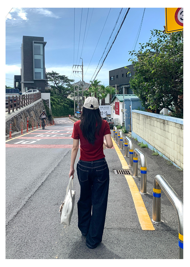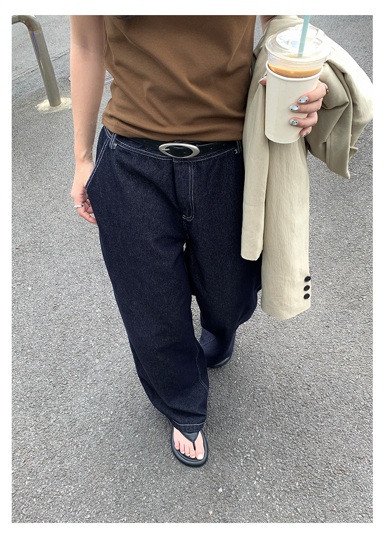 *o-ha-you*【FHZH1GB5030768】美式復古水洗棉直筒牛仔褲小個子顯腿長闊腿長褲