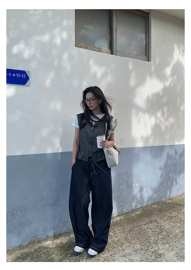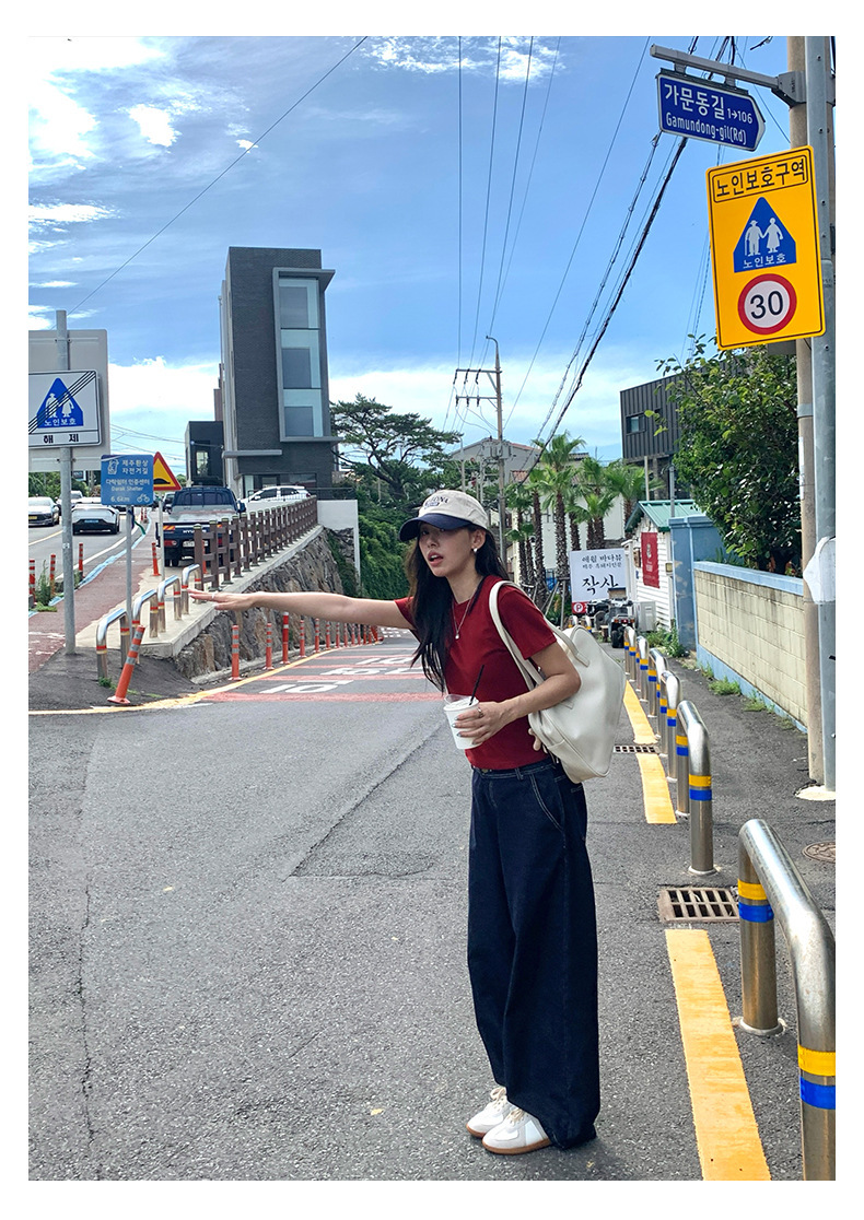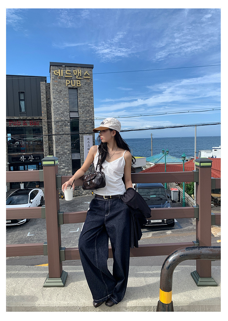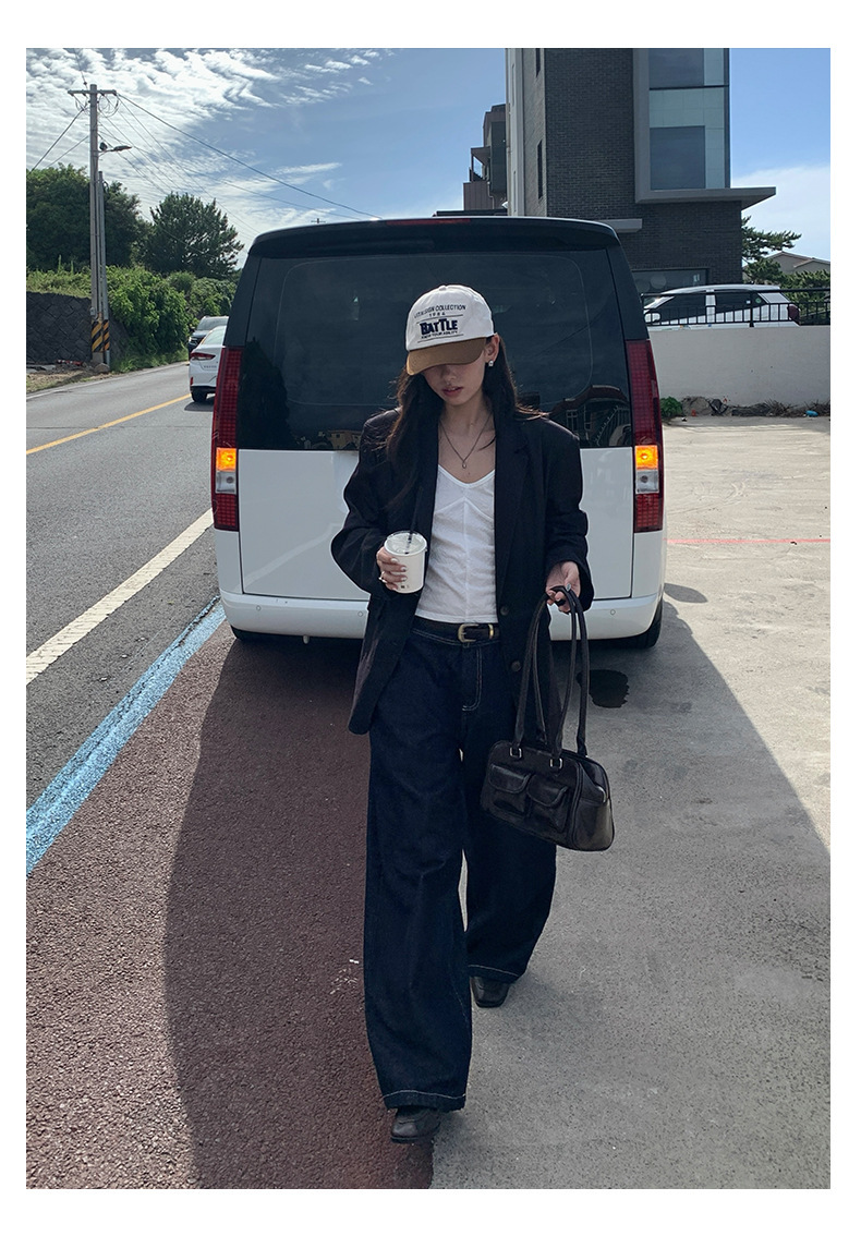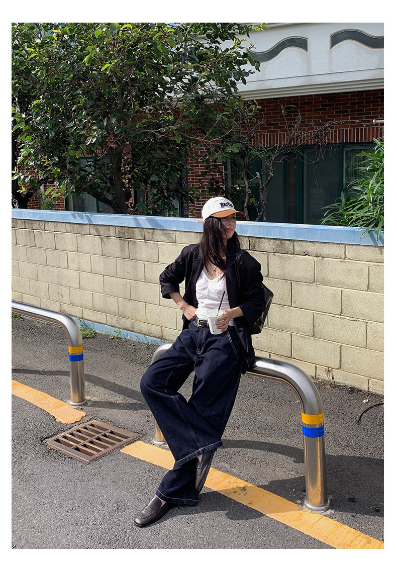 *o-ha-you*【FHZH1GB5030768】美式復古水洗棉直筒牛仔褲小個子顯腿長闊腿長褲