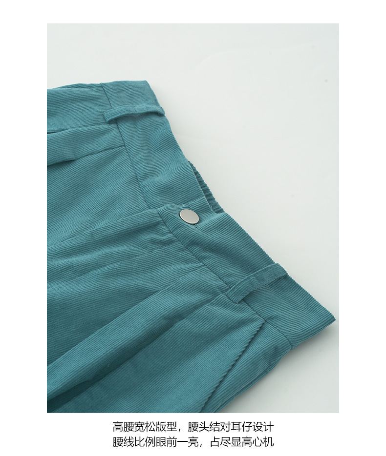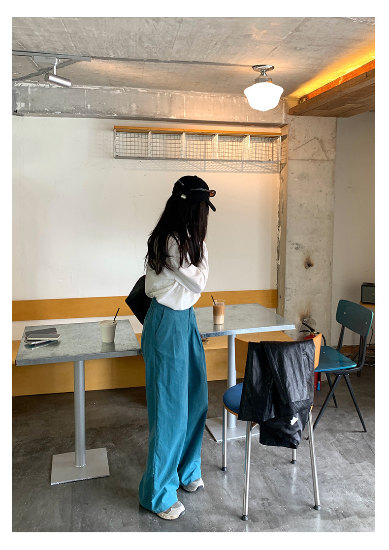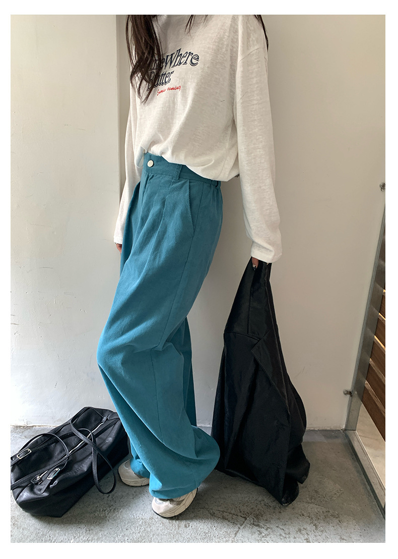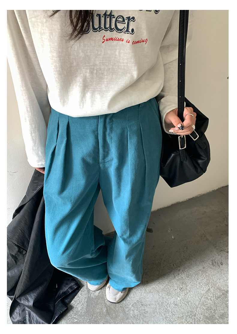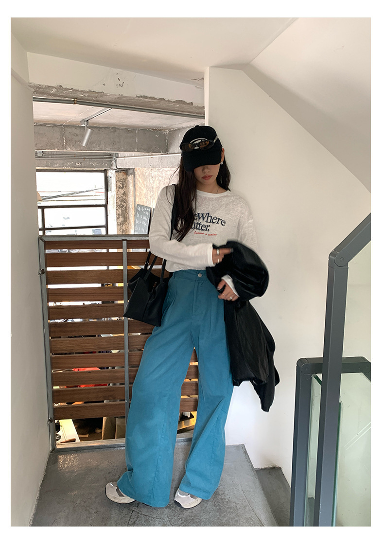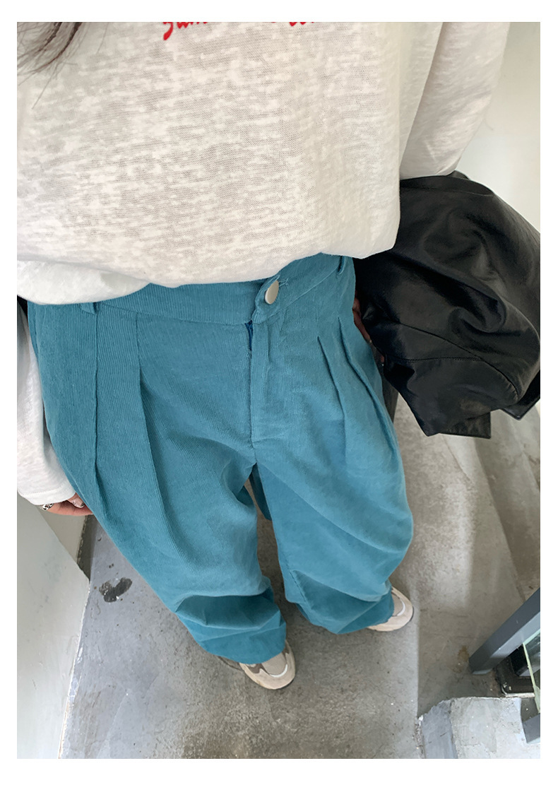 *o-ha-you*【FHZH1GB5030806】韓系湖藍色褲子復古高腰顯瘦燈芯絨直筒寬鬆休閒褲