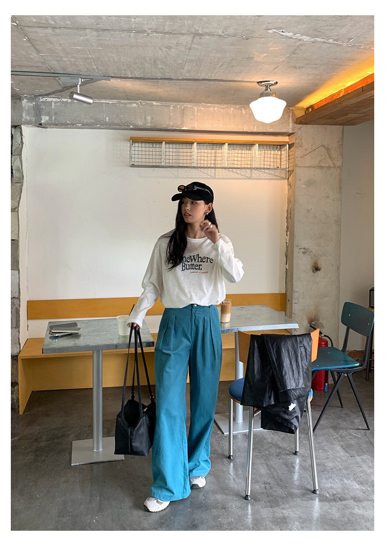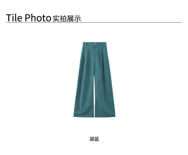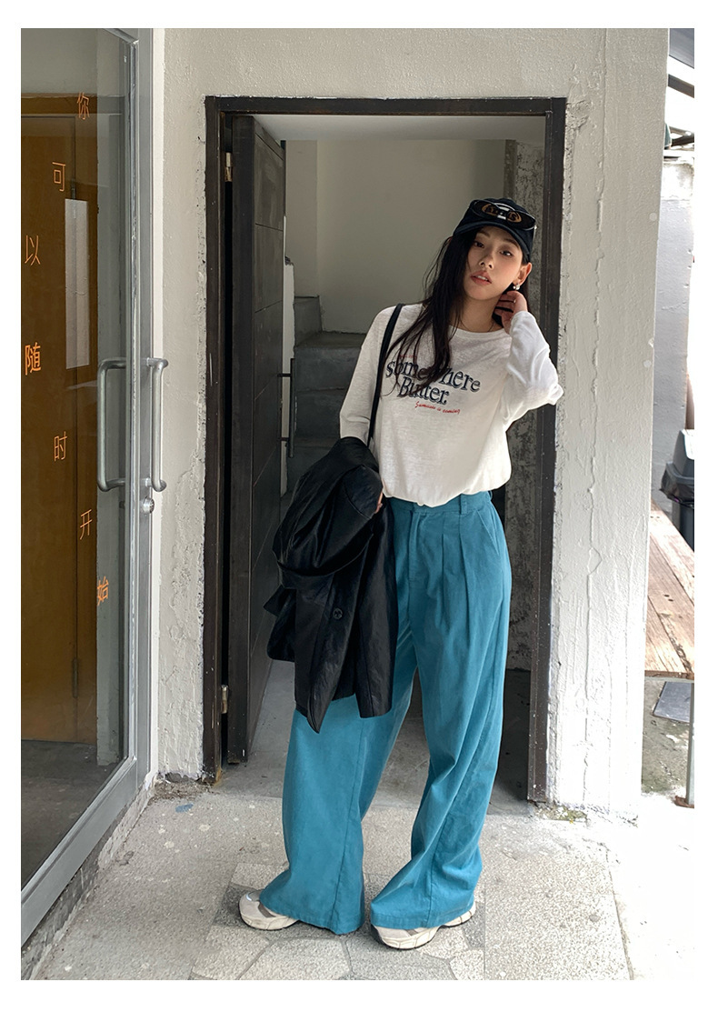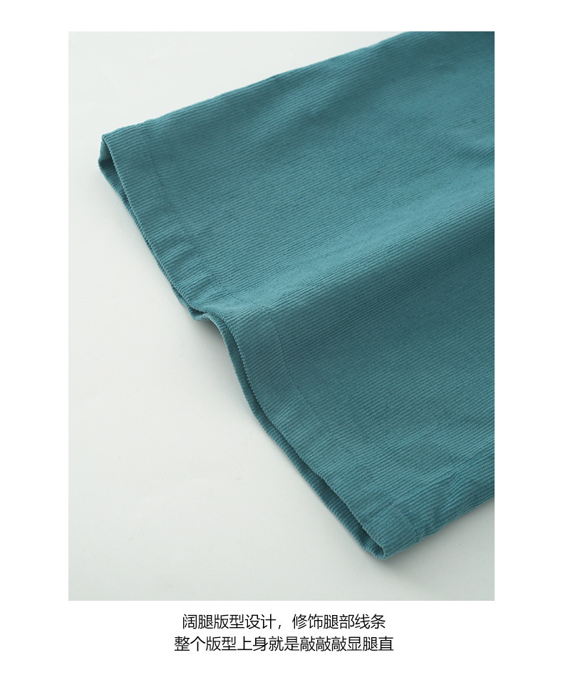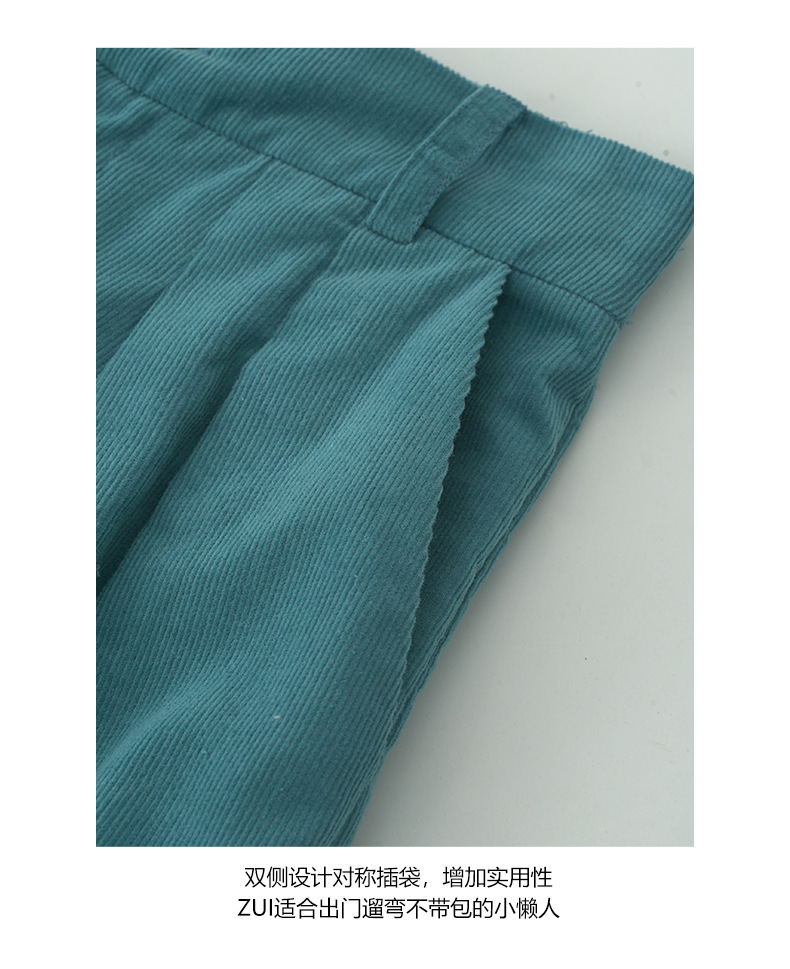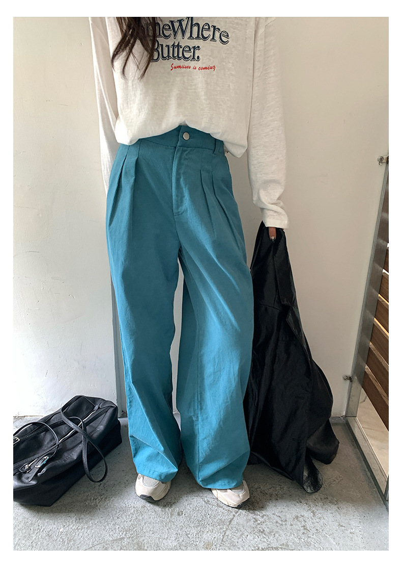 *o-ha-you*【FHZH1GB5030806】韓系湖藍色褲子復古高腰顯瘦燈芯絨直筒寬鬆休閒褲