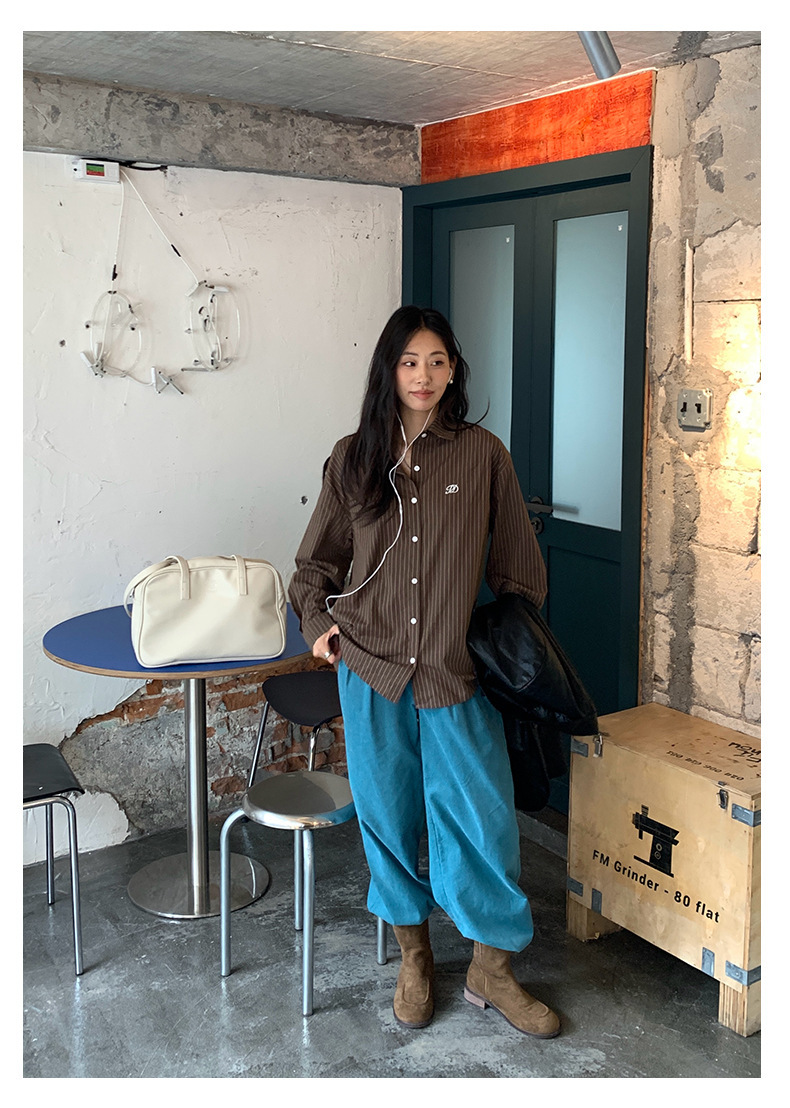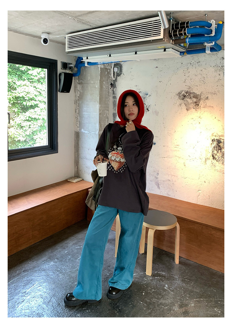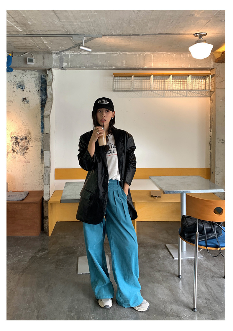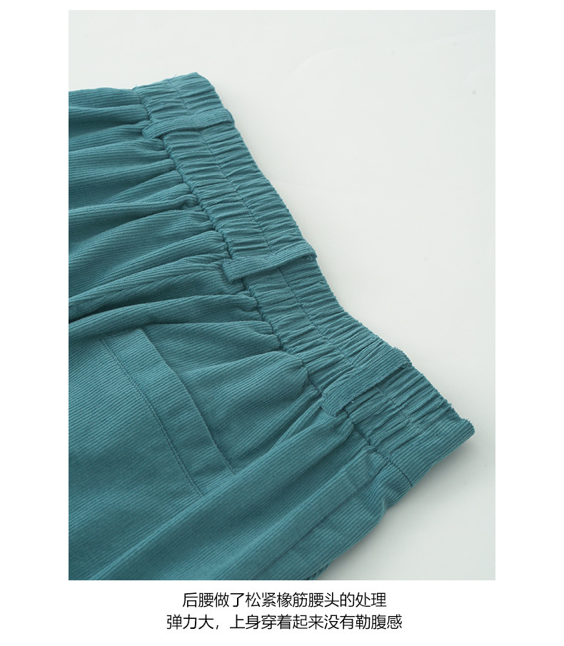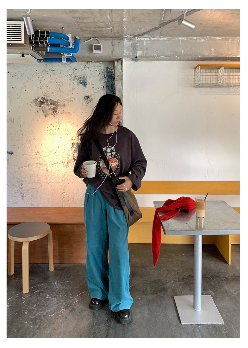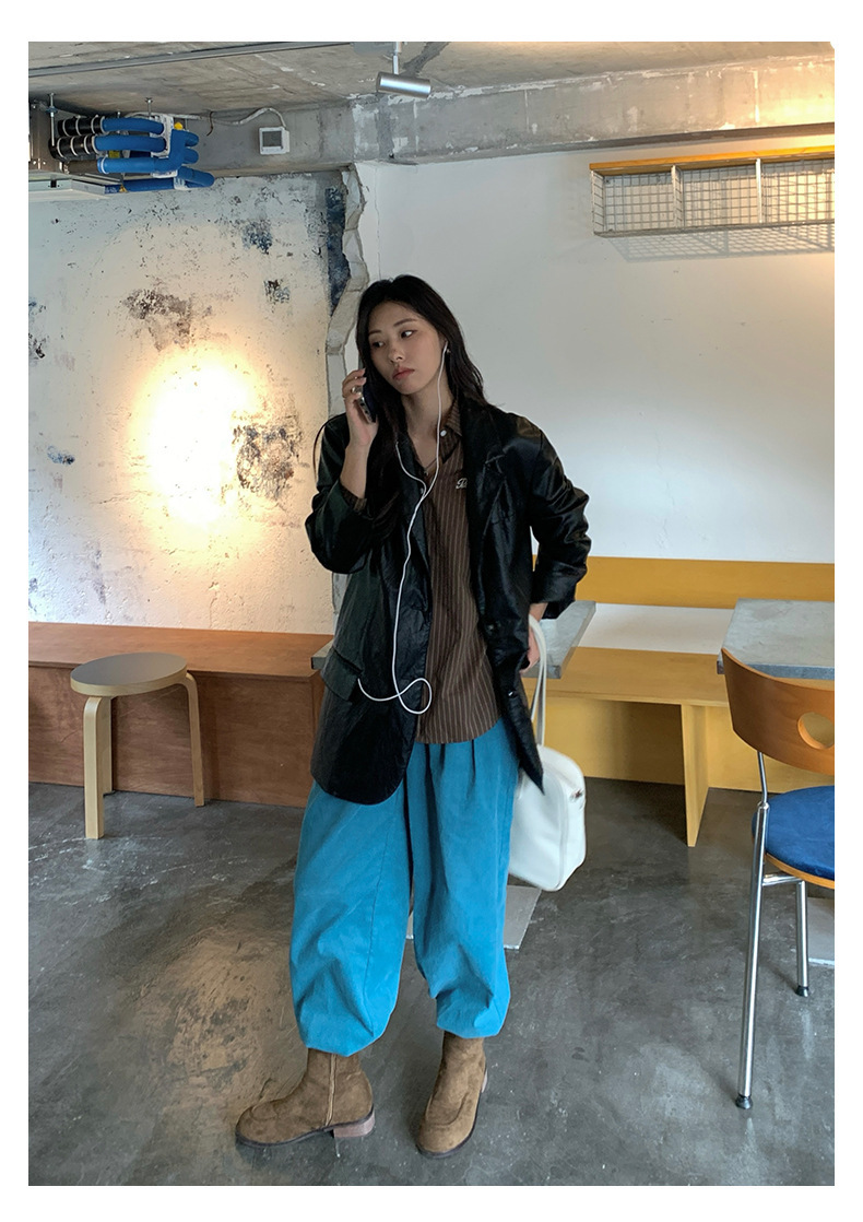 *o-ha-you*【FHZH1GB5030806】韓系湖藍色褲子復古高腰顯瘦燈芯絨直筒寬鬆休閒褲