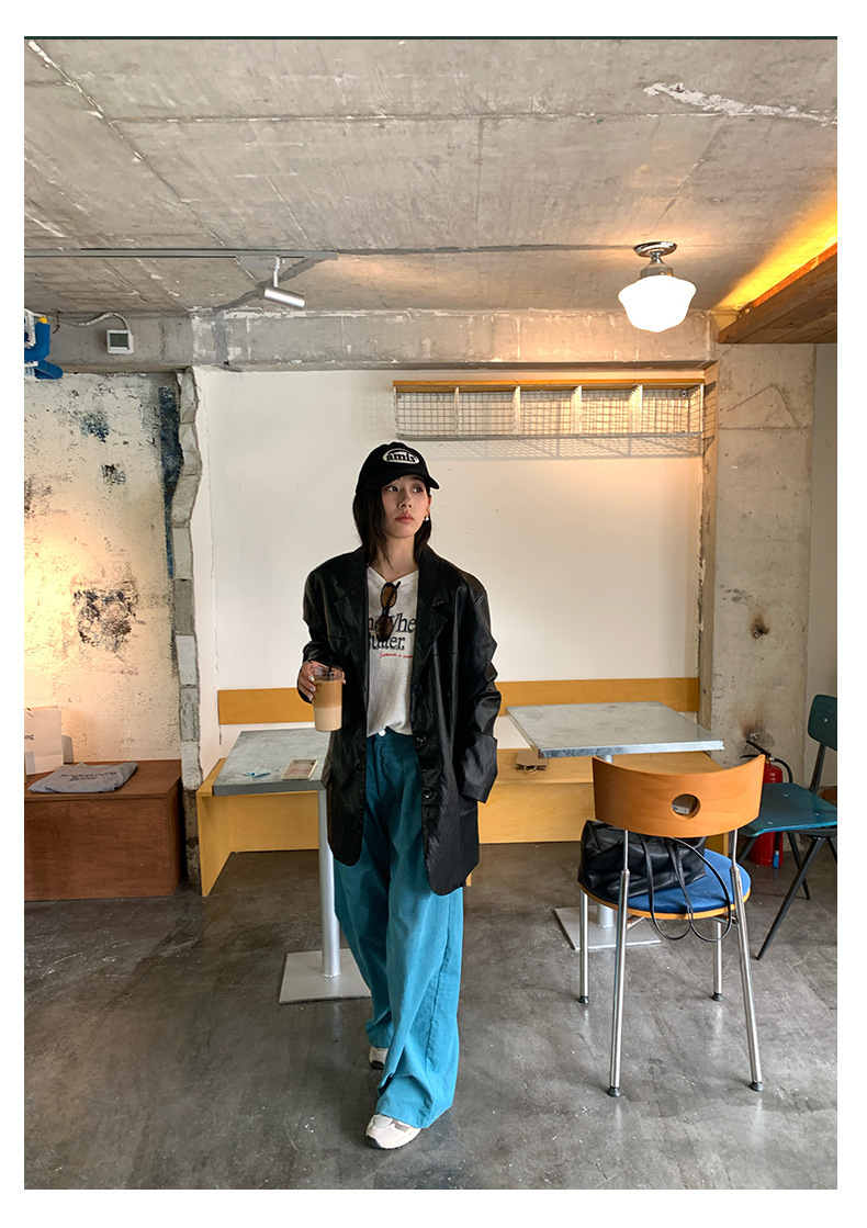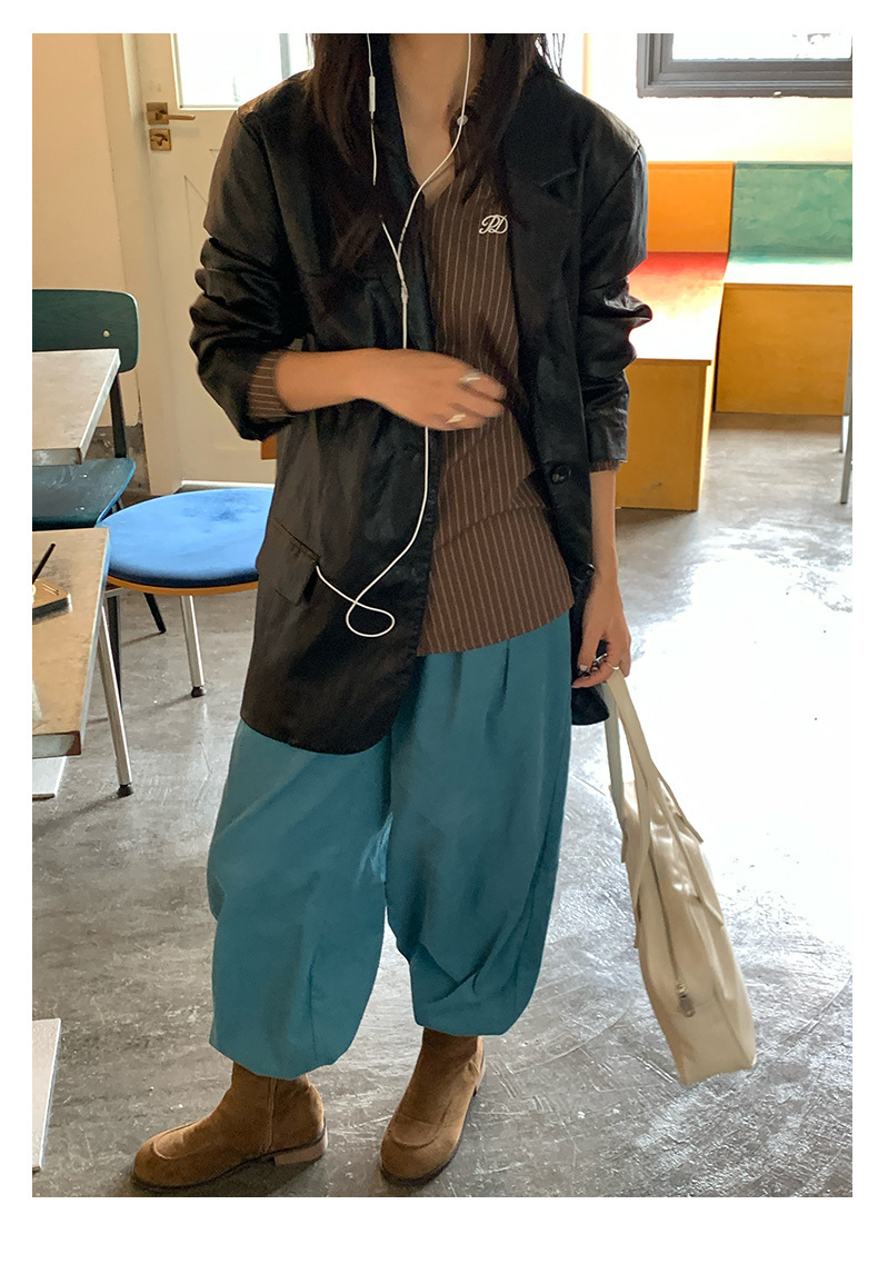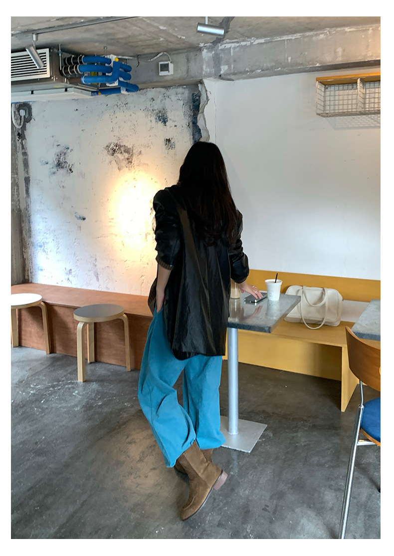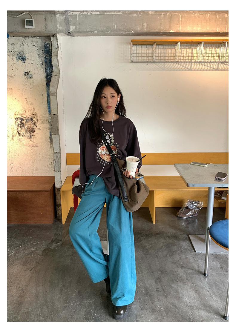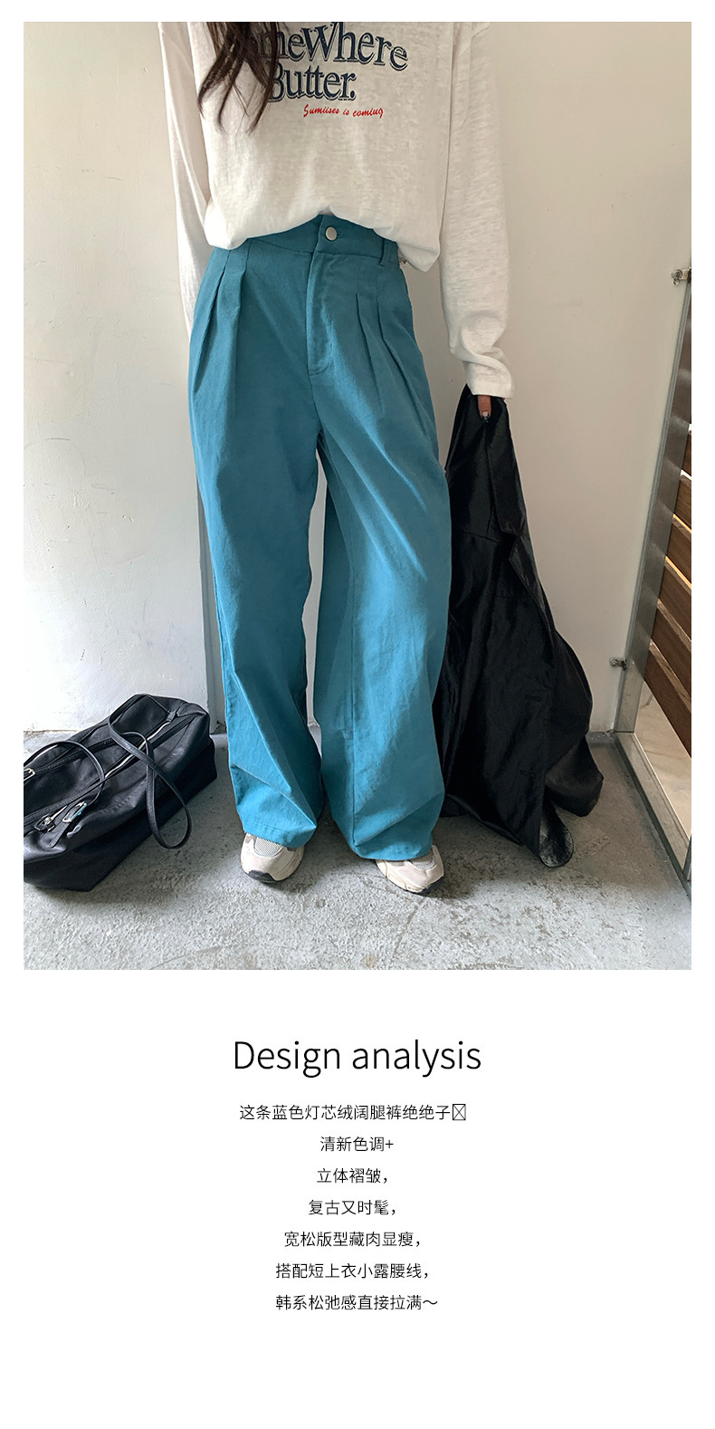 *o-ha-you*【FHZH1GB5030806】韓系湖藍色褲子復古高腰顯瘦燈芯絨直筒寬鬆休閒褲