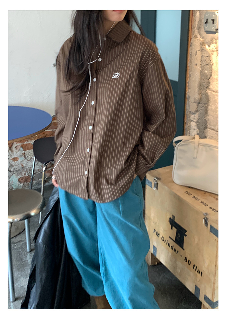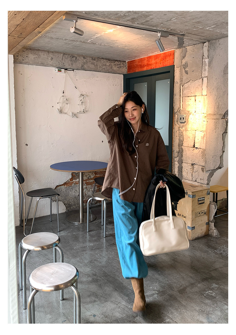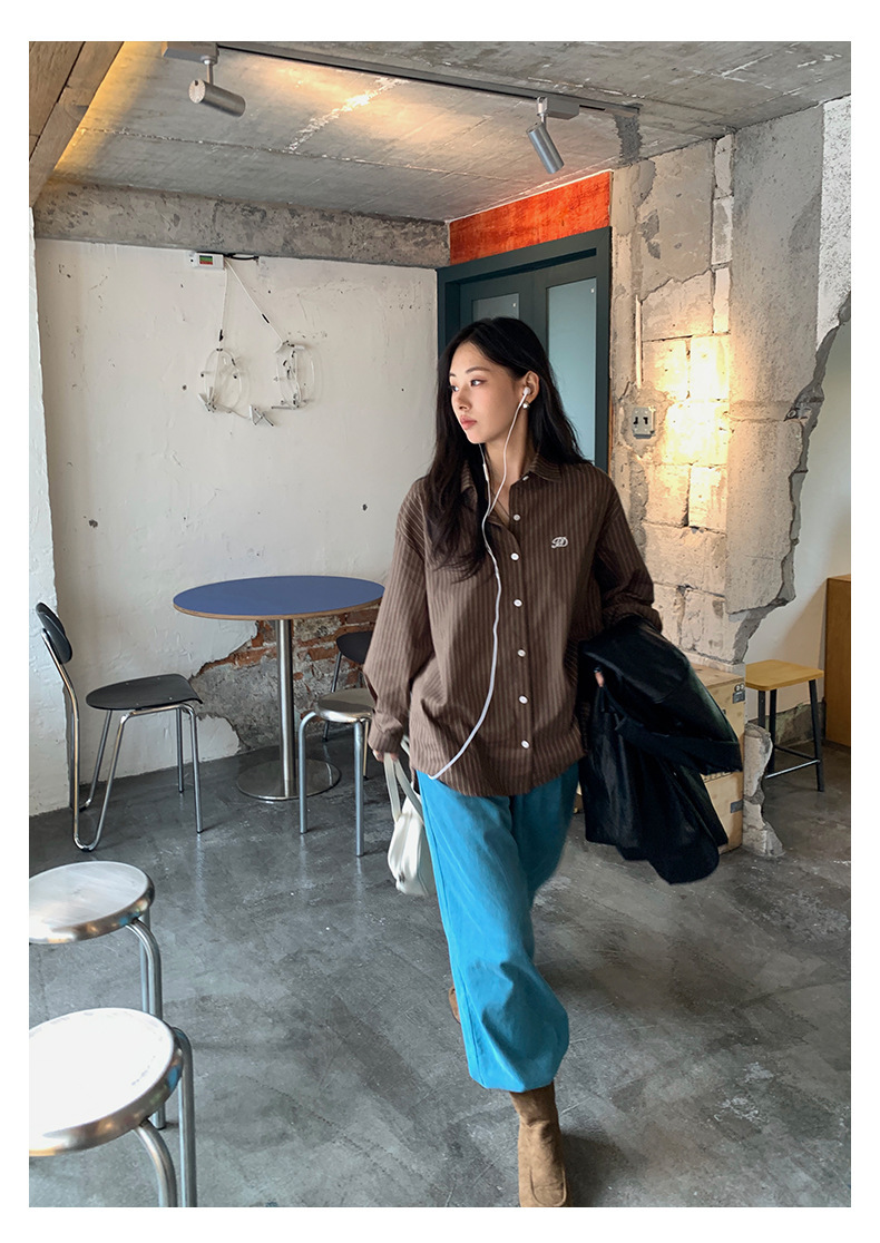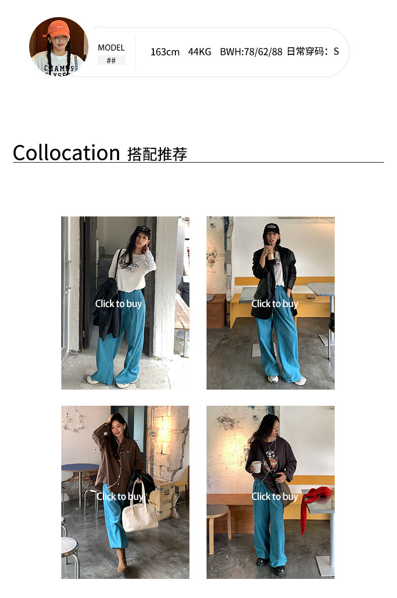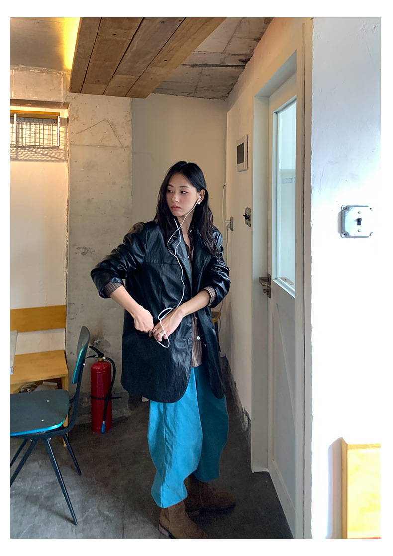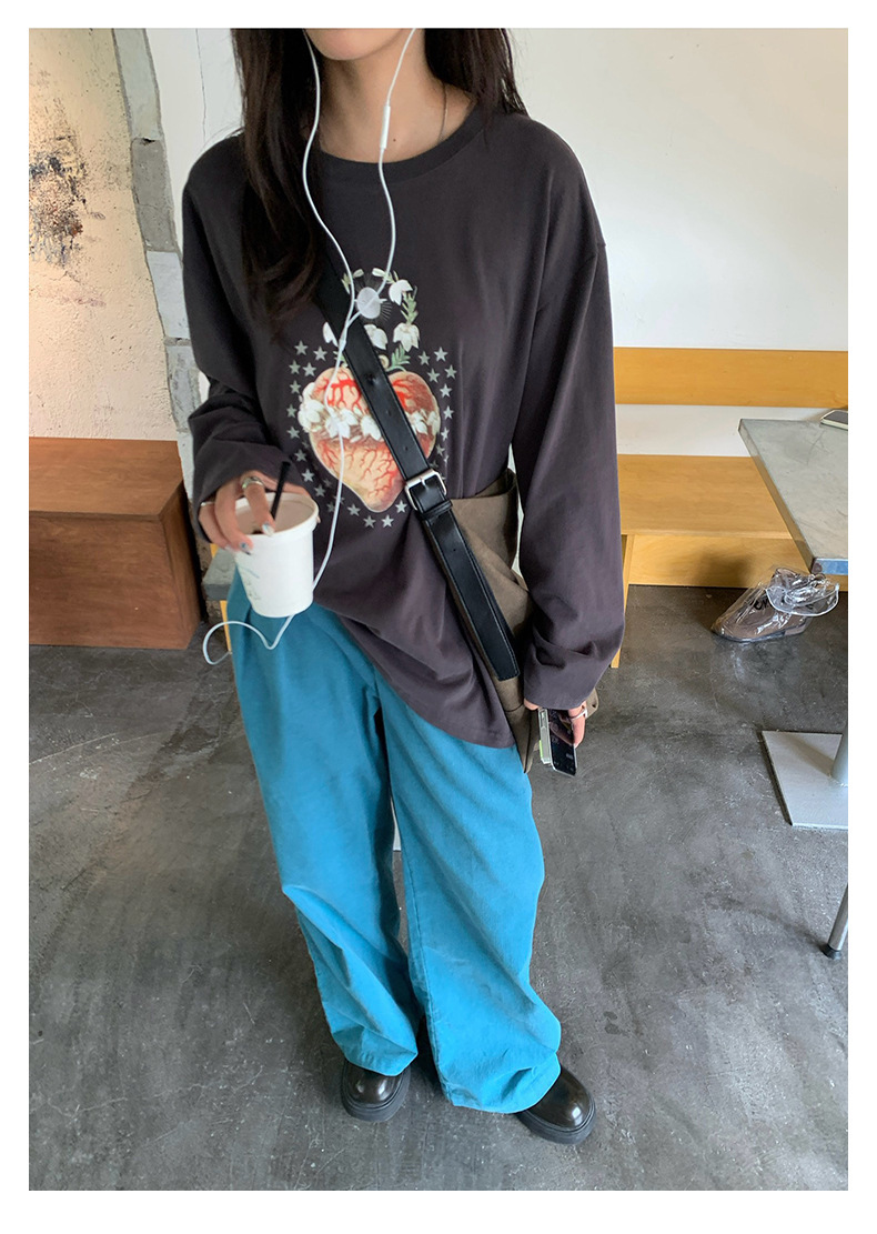*o-ha-you*【FHZH1GB5030806】韓系湖藍色褲子復古高腰顯瘦燈芯絨直筒寬鬆休閒褲