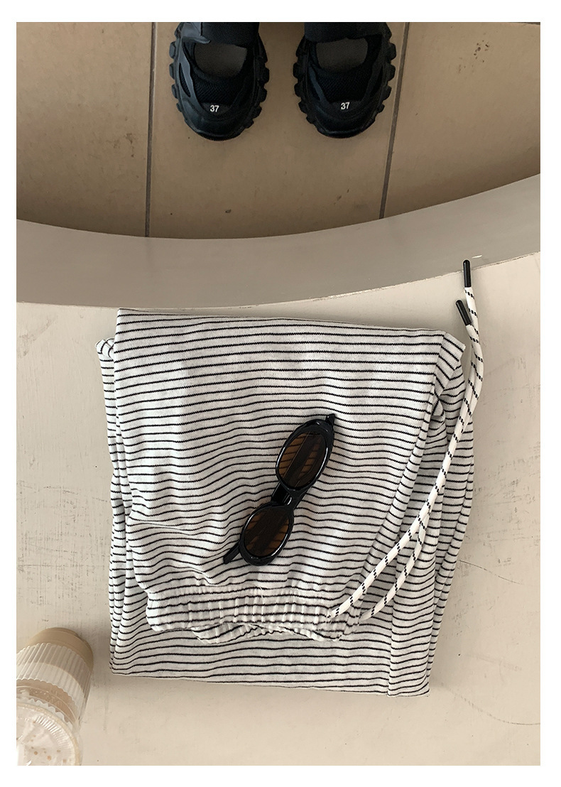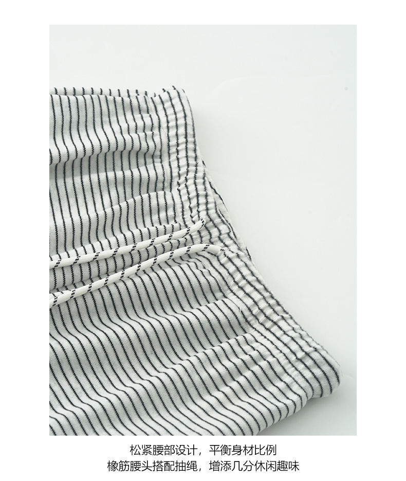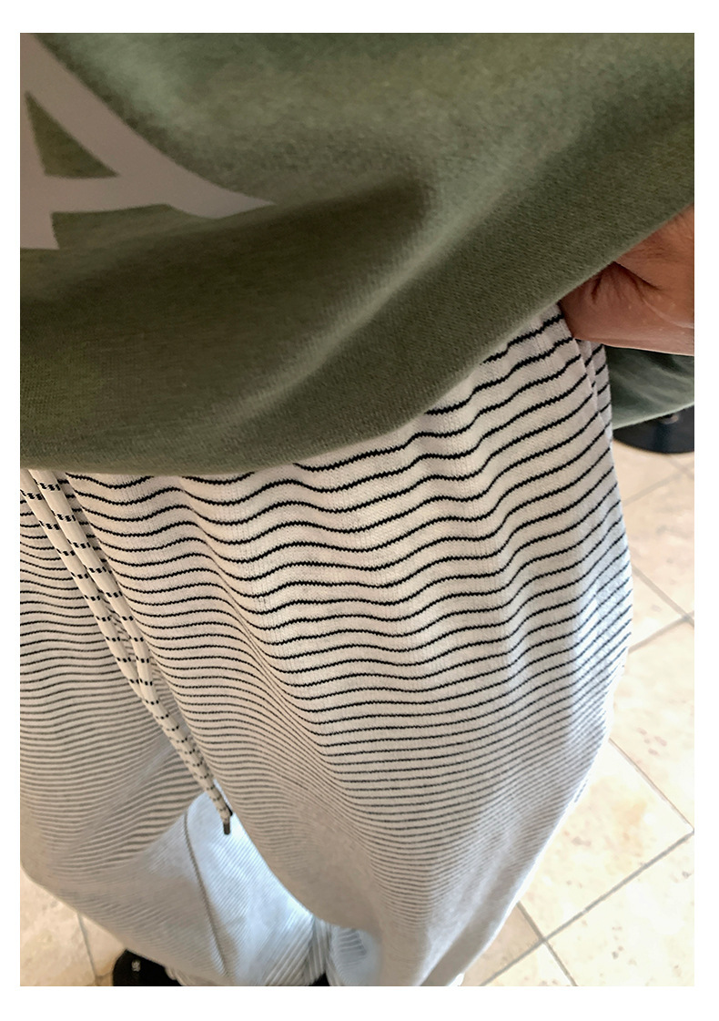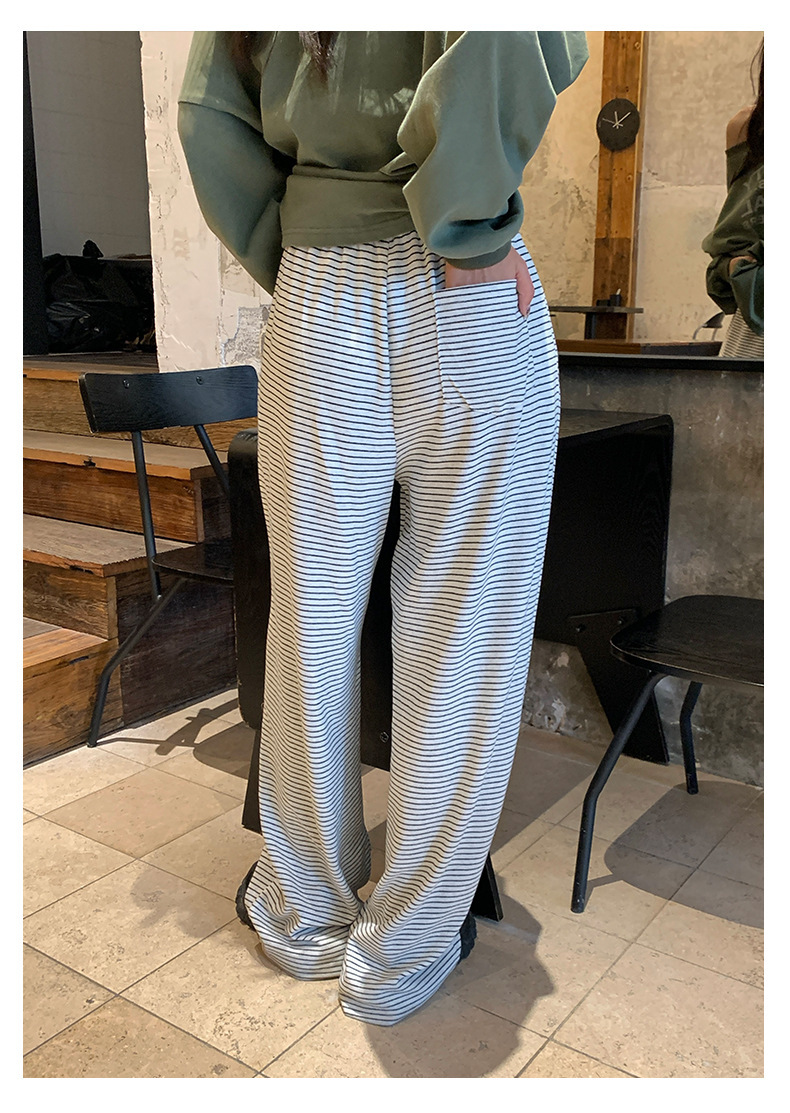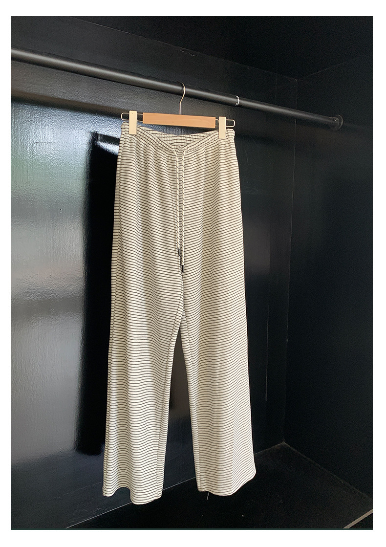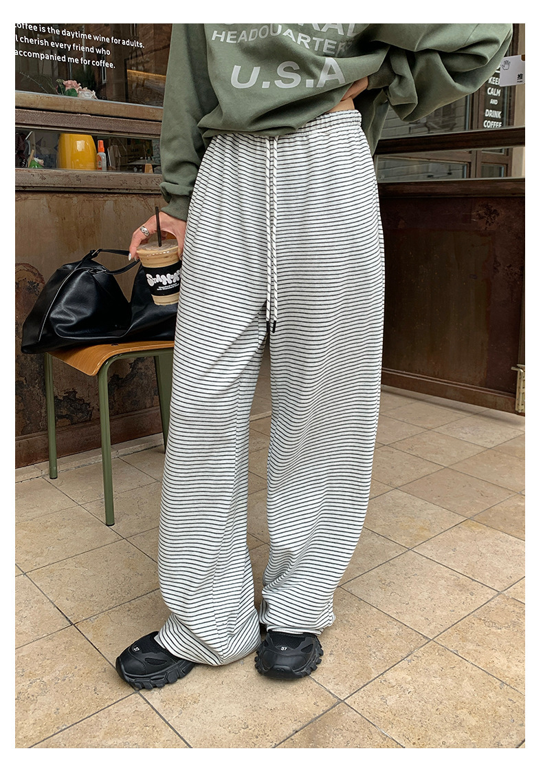 *o-ha-you*【FHZH1GB5030812】慵懶風條紋抽繩闊腿褲早秋鬆緊腰休閒褲寬鬆直筒褲