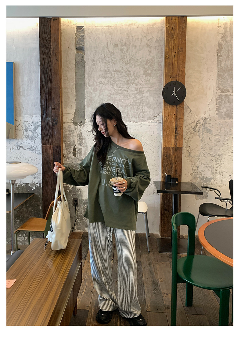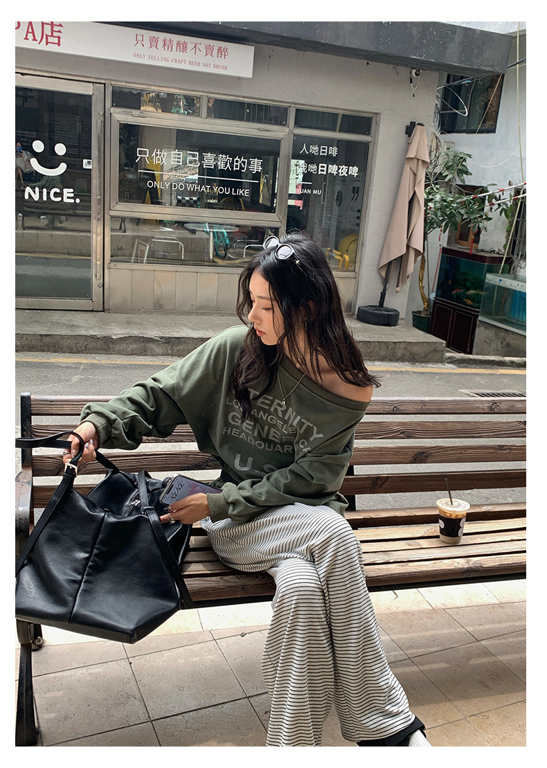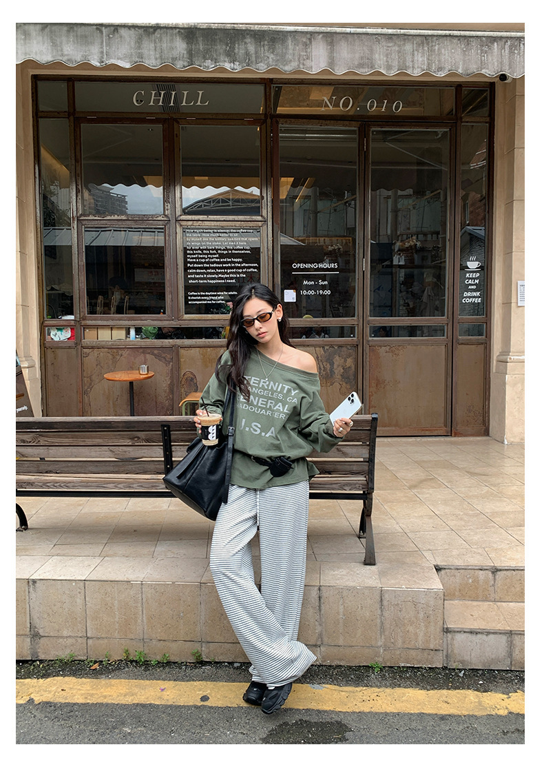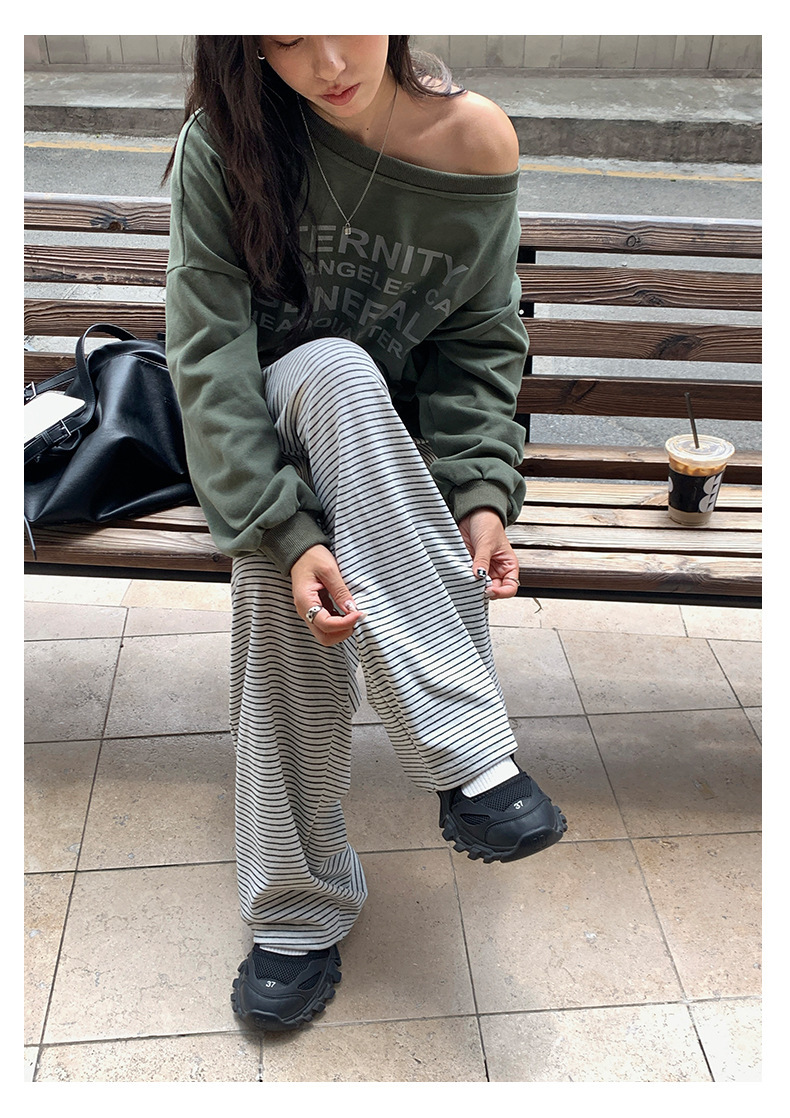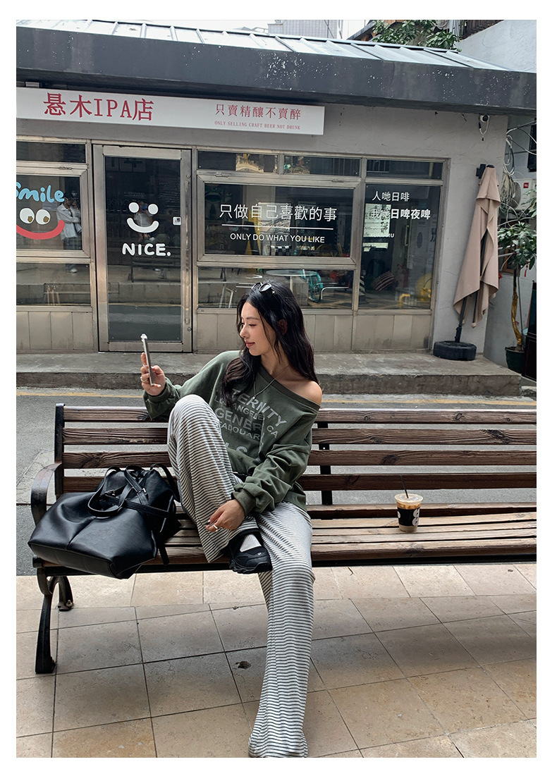 *o-ha-you*【FHZH1GB5030812】慵懶風條紋抽繩闊腿褲早秋鬆緊腰休閒褲寬鬆直筒褲
