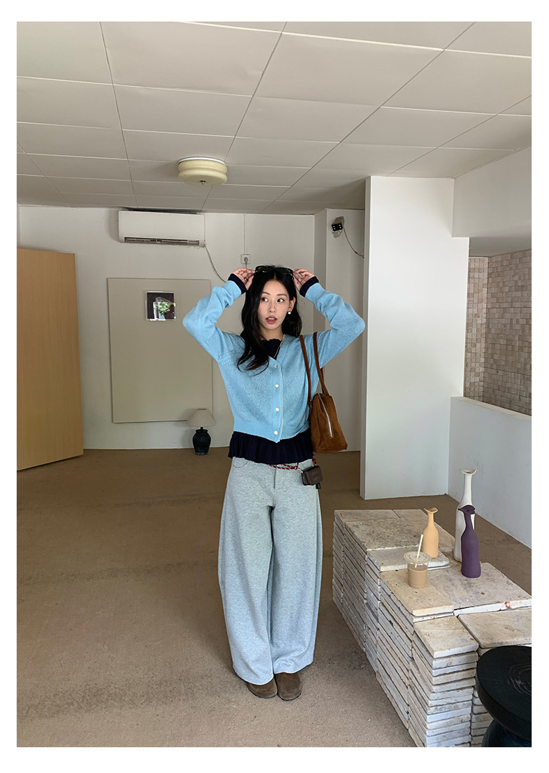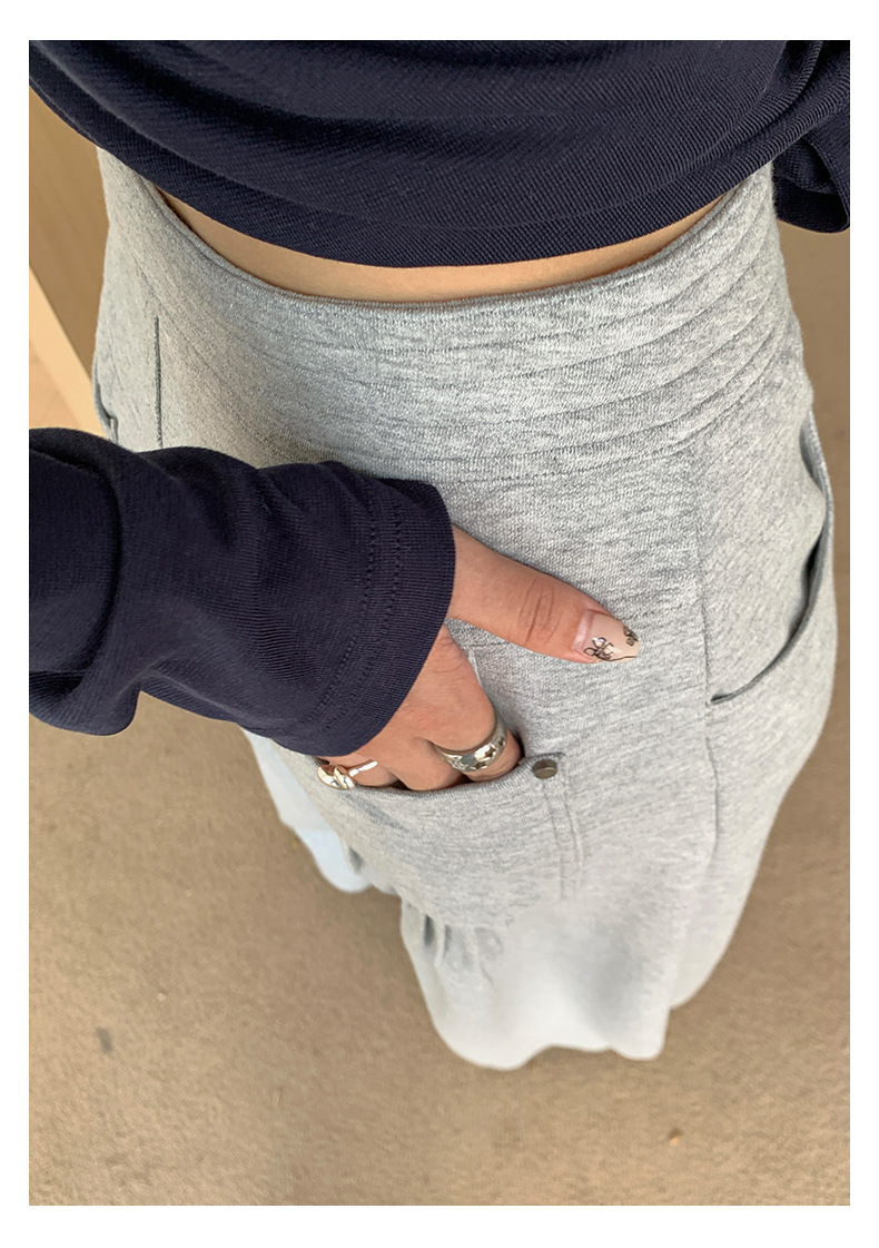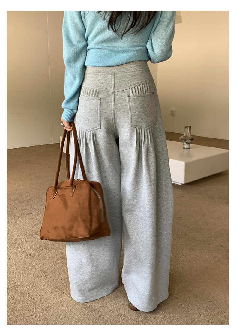 *o-ha-you*【FHZH1GB5030872】新晉藏肉神褲設計感雙扣高腰顯瘦休閒彎刀闊腿褲