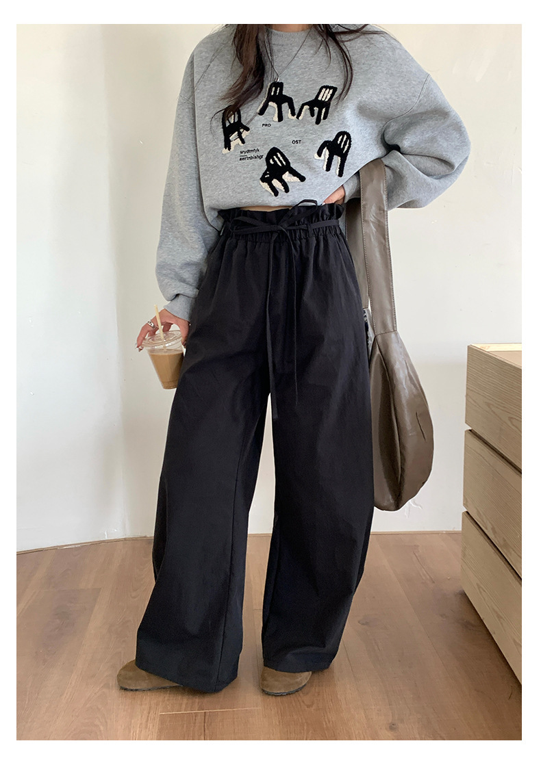 *o-ha-you*【FHZH1GB5030913】秋季新款韓系ins復古甜美減齡寬鬆抽繩垂感闊腿褲-2色