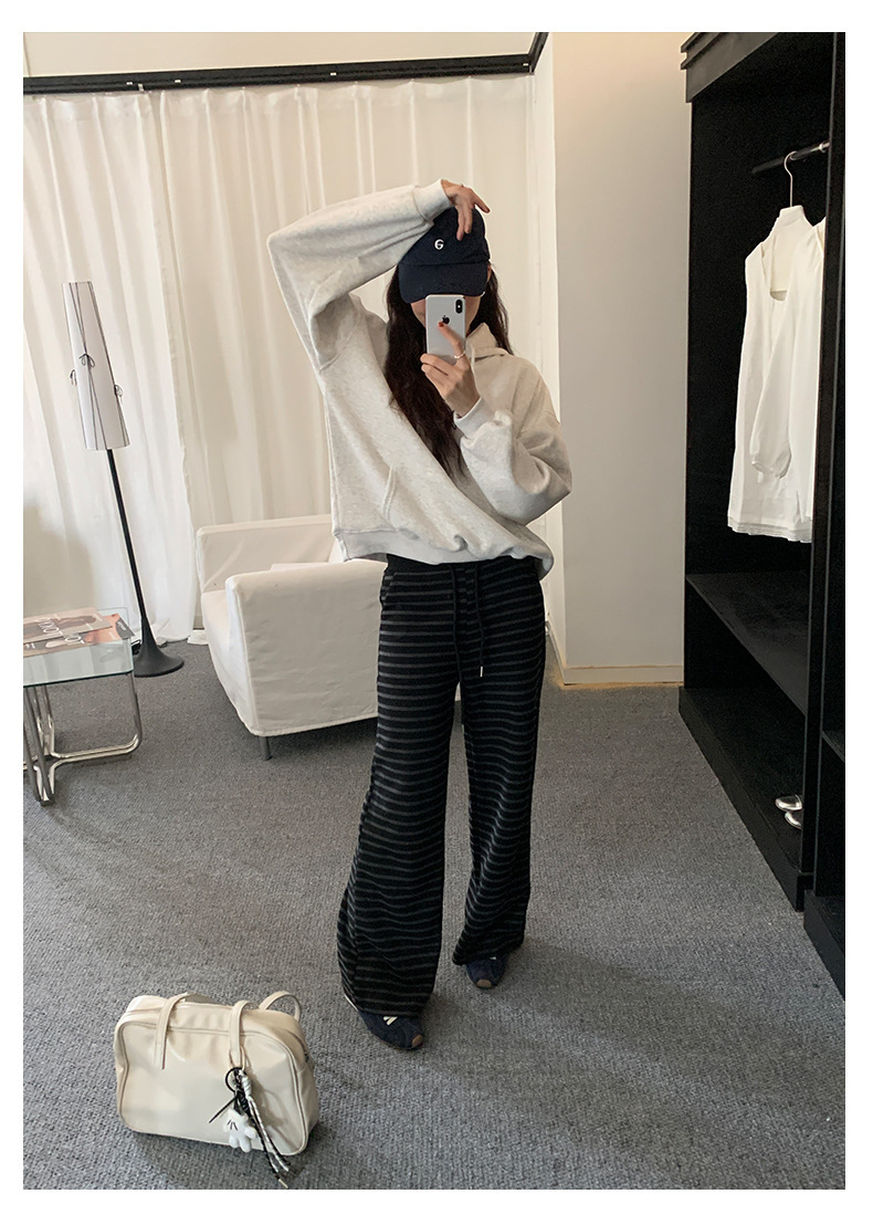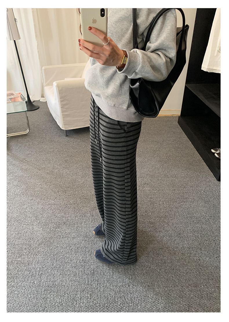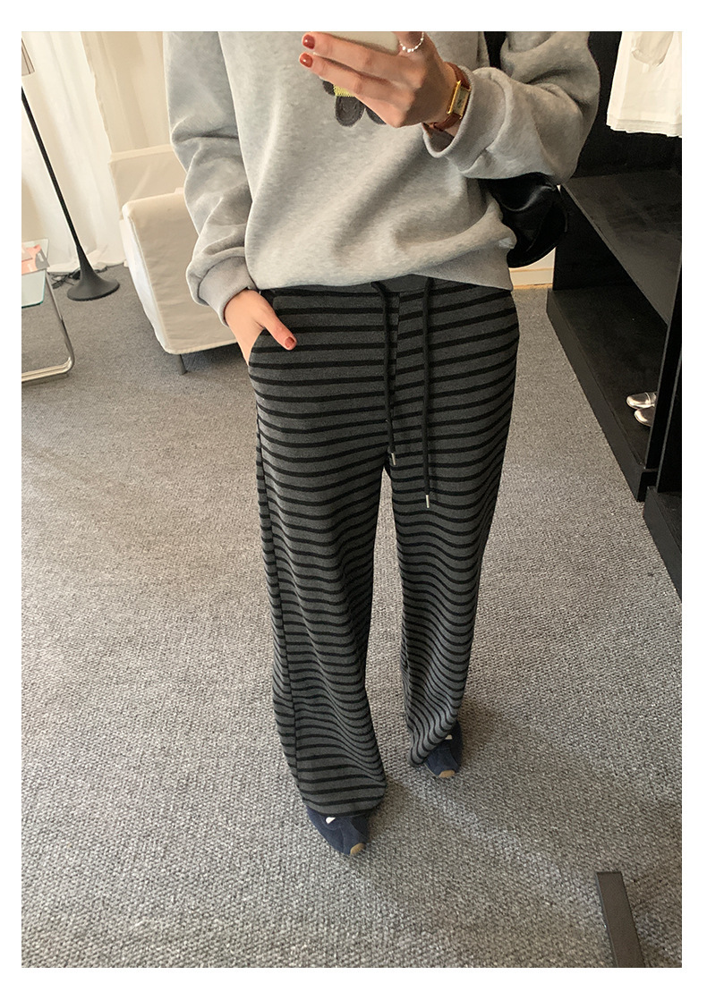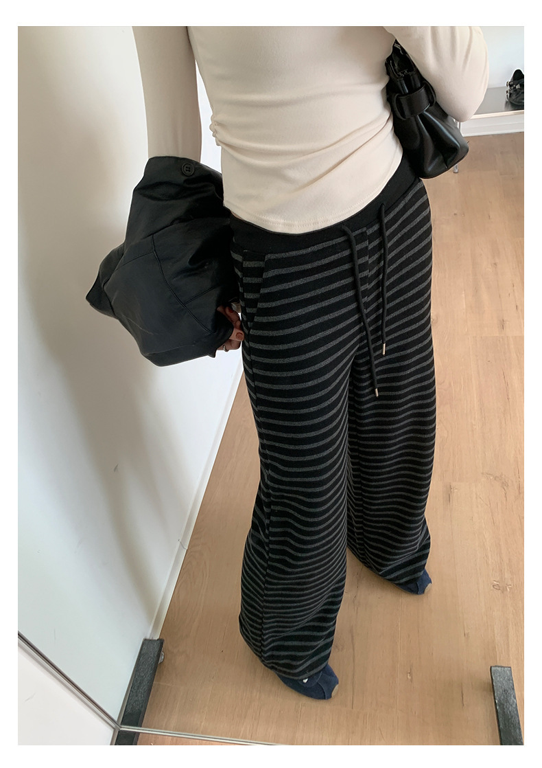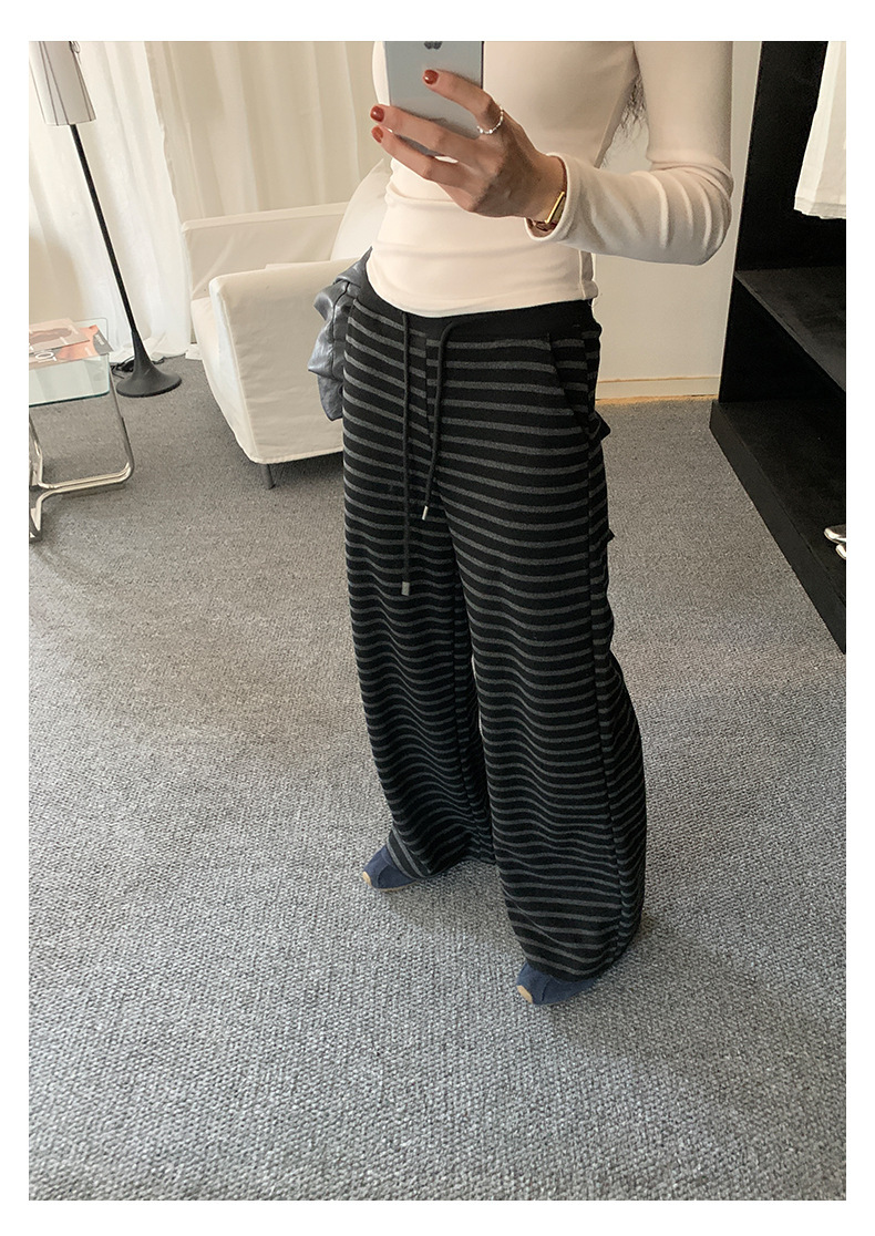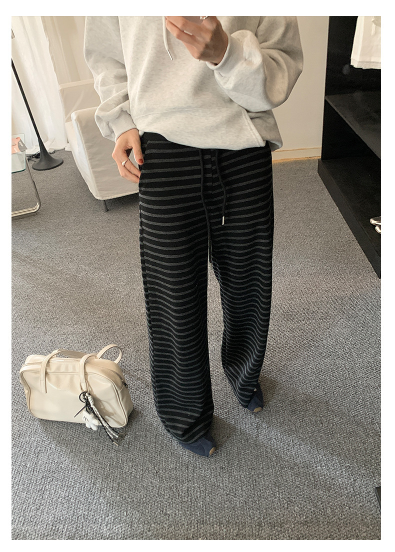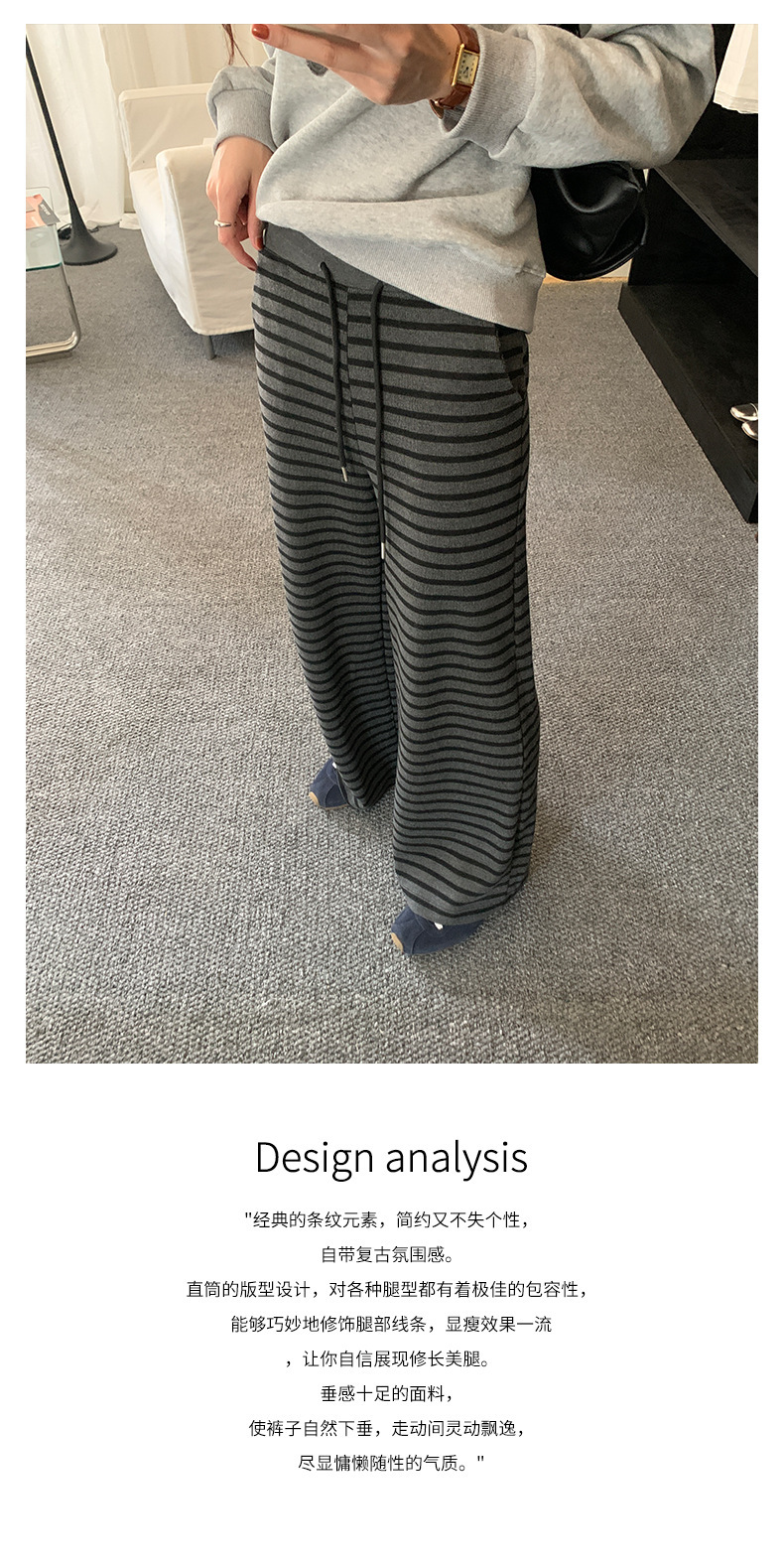 *o-ha-you*【FHZH1GB5041029】慵懶風抽繩垂感條紋休閒褲女秋冬百搭顯瘦直筒遛彎長褲-2色