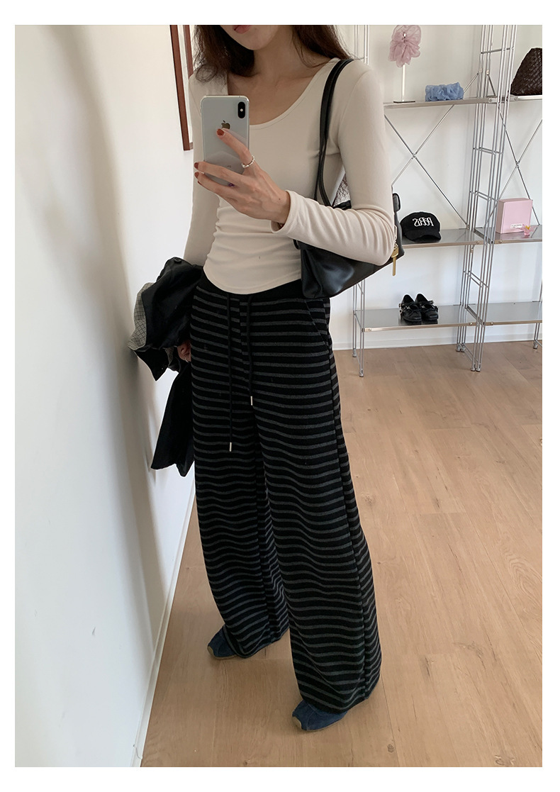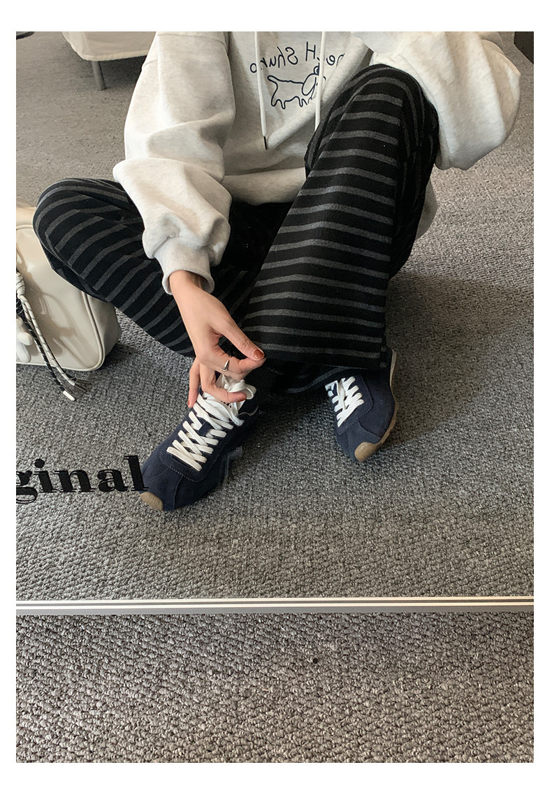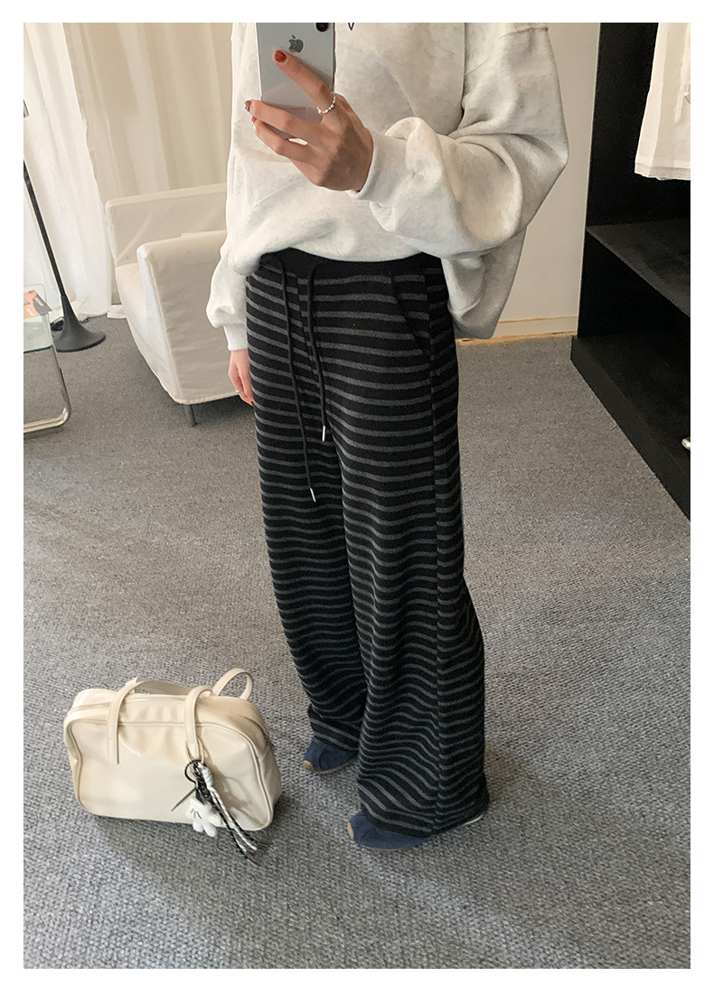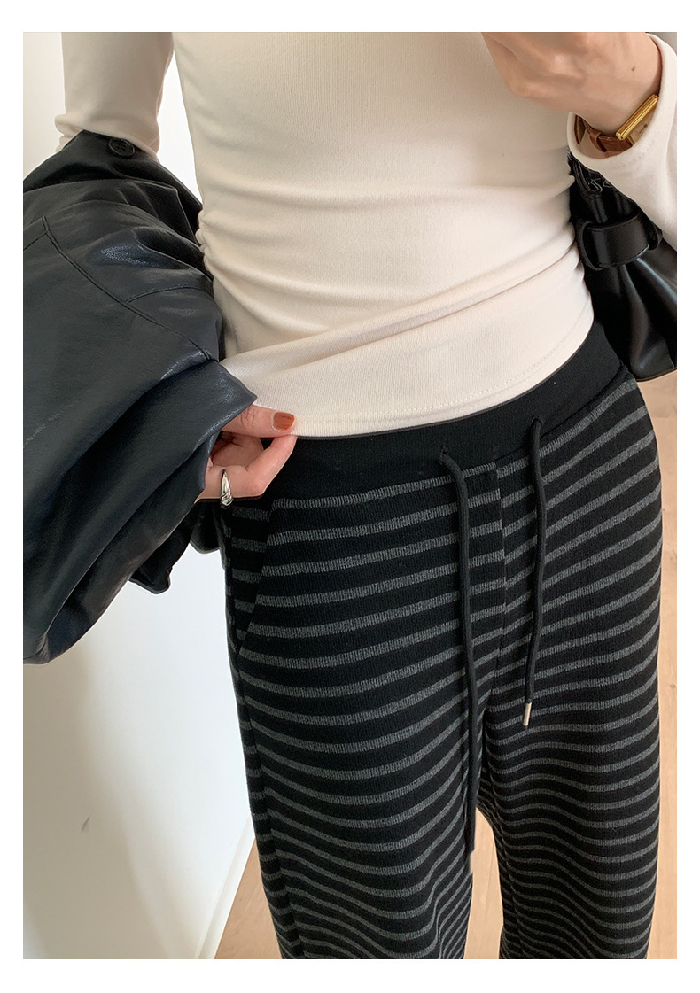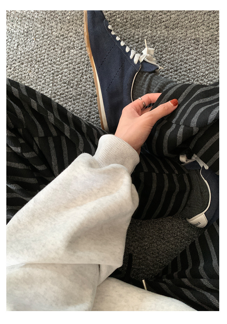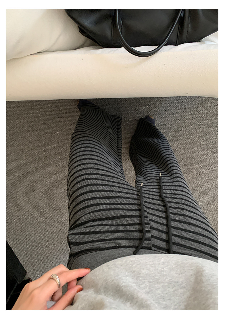 *o-ha-you*【FHZH1GB5041029】慵懶風抽繩垂感條紋休閒褲女秋冬百搭顯瘦直筒遛彎長褲-2色