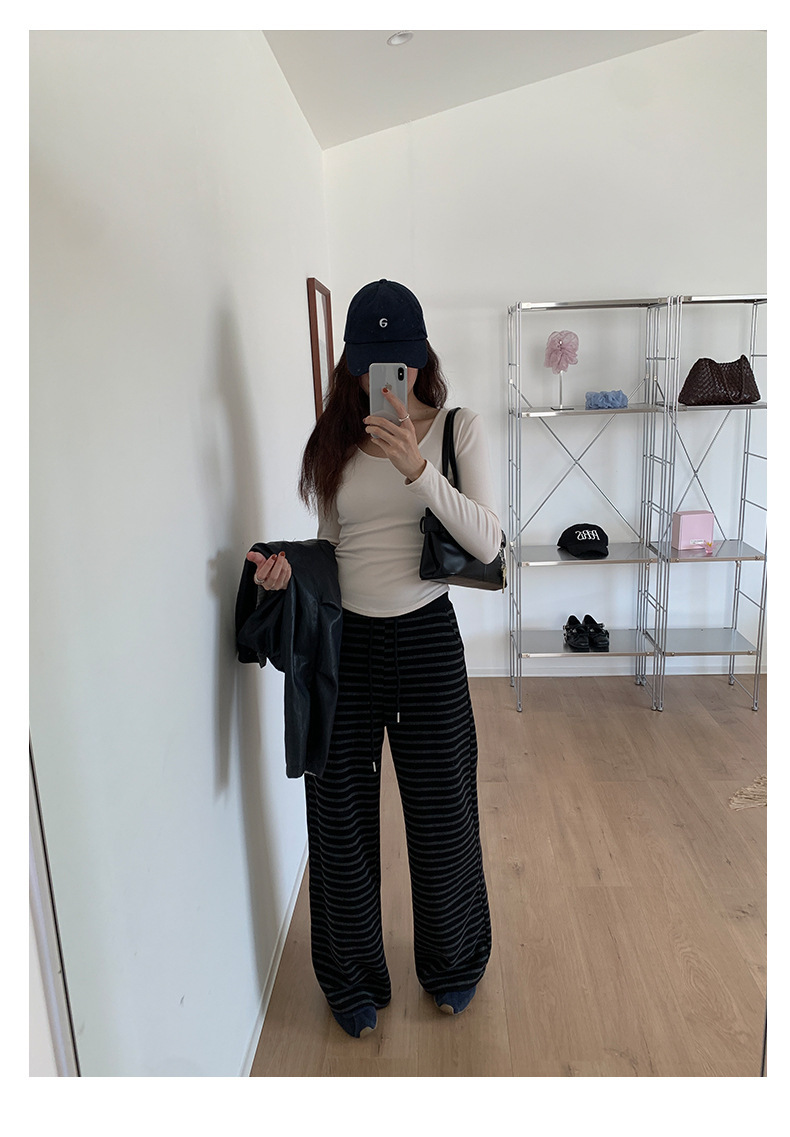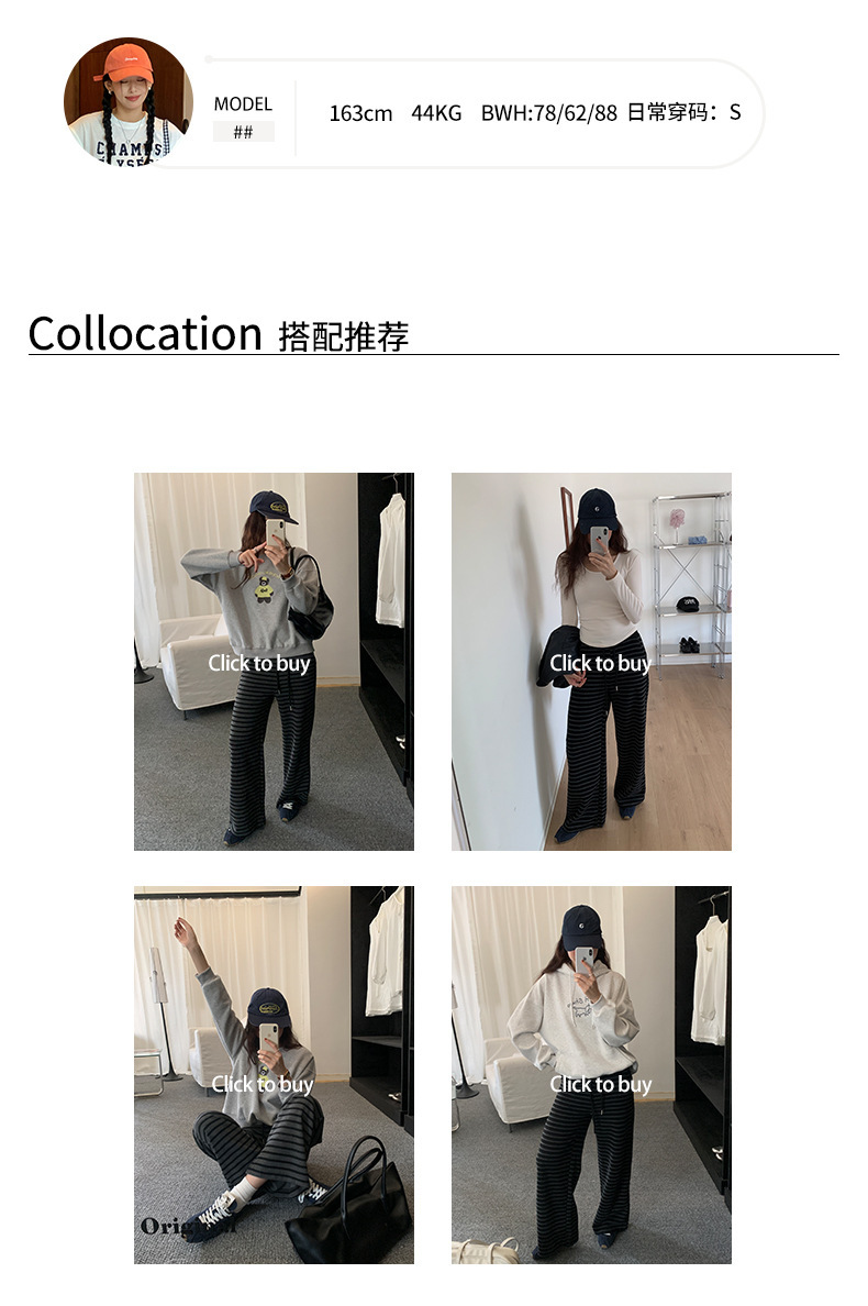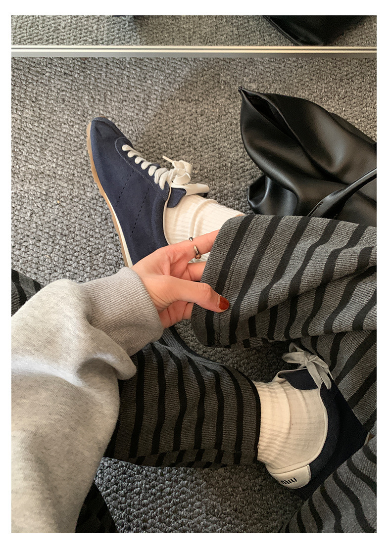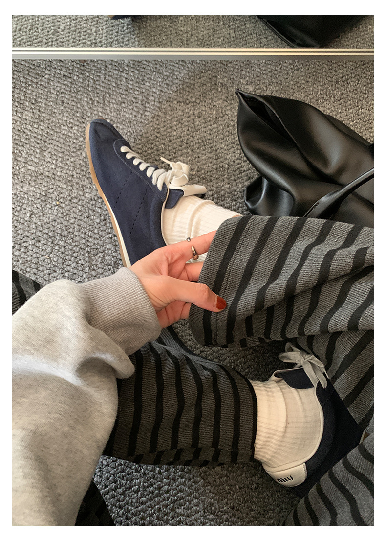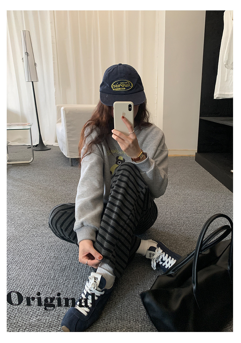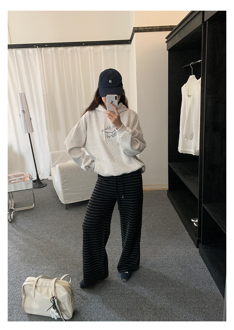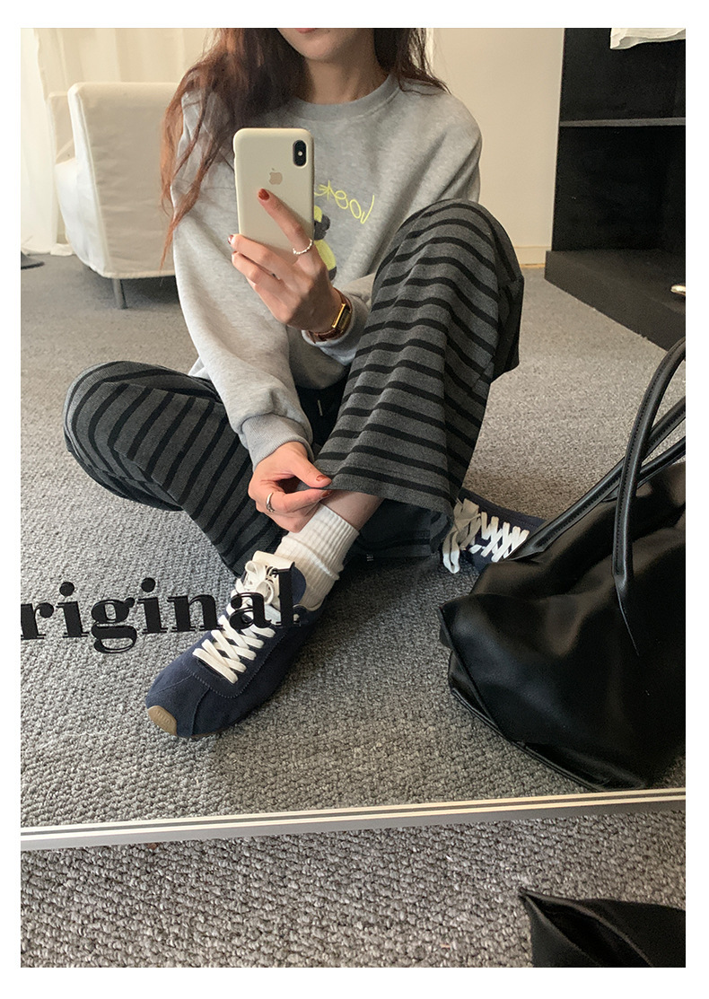 *o-ha-you*【FHZH1GB5041029】慵懶風抽繩垂感條紋休閒褲女秋冬百搭顯瘦直筒遛彎長褲-2色