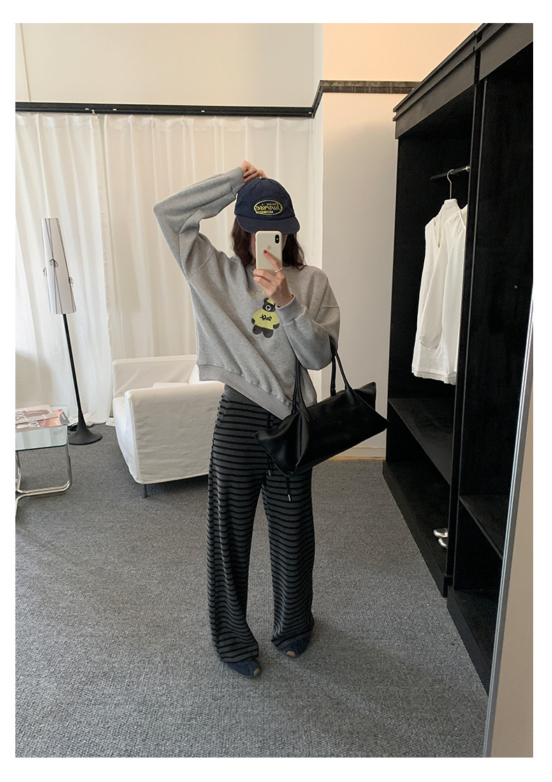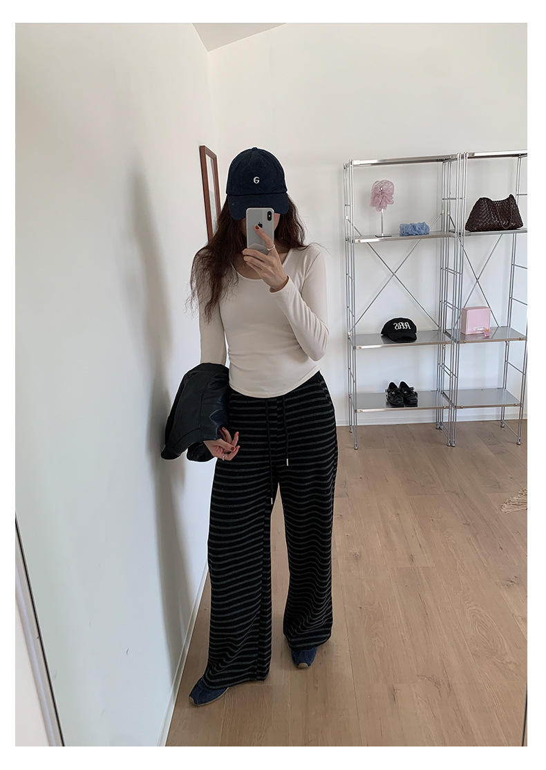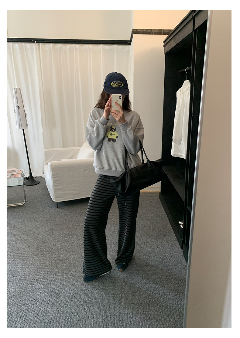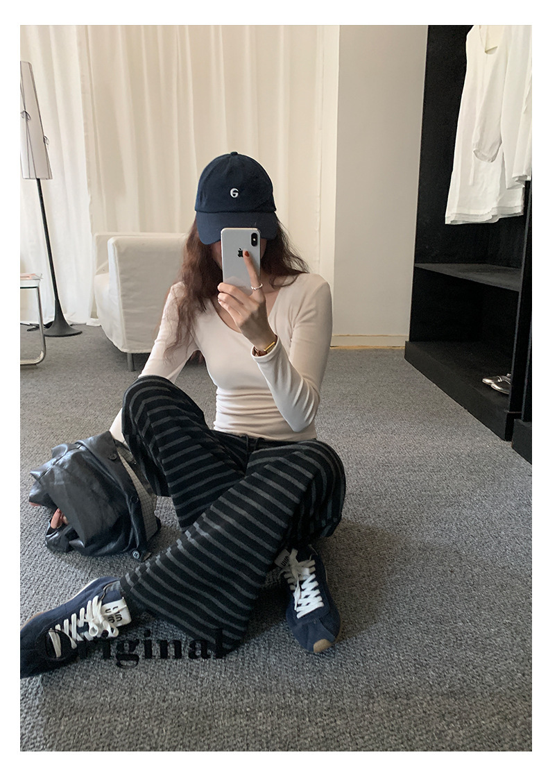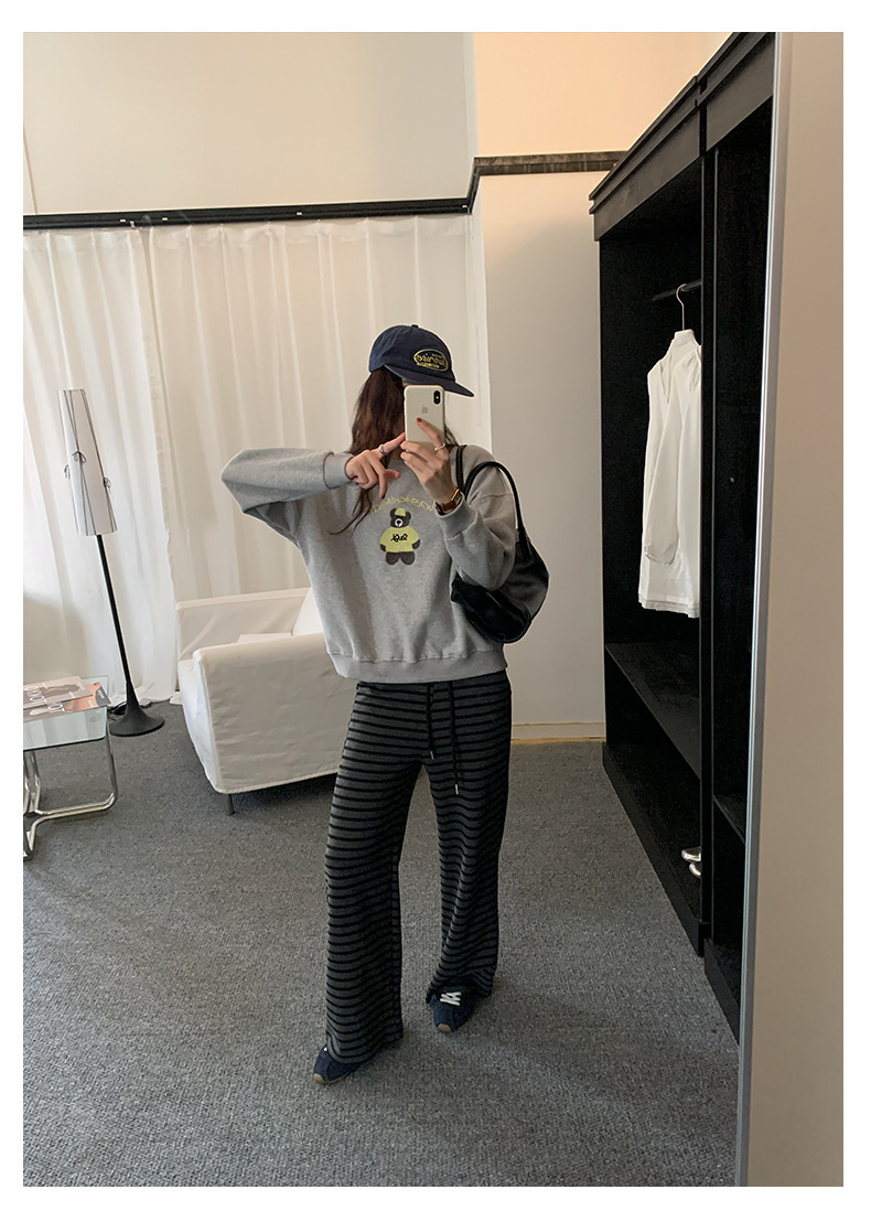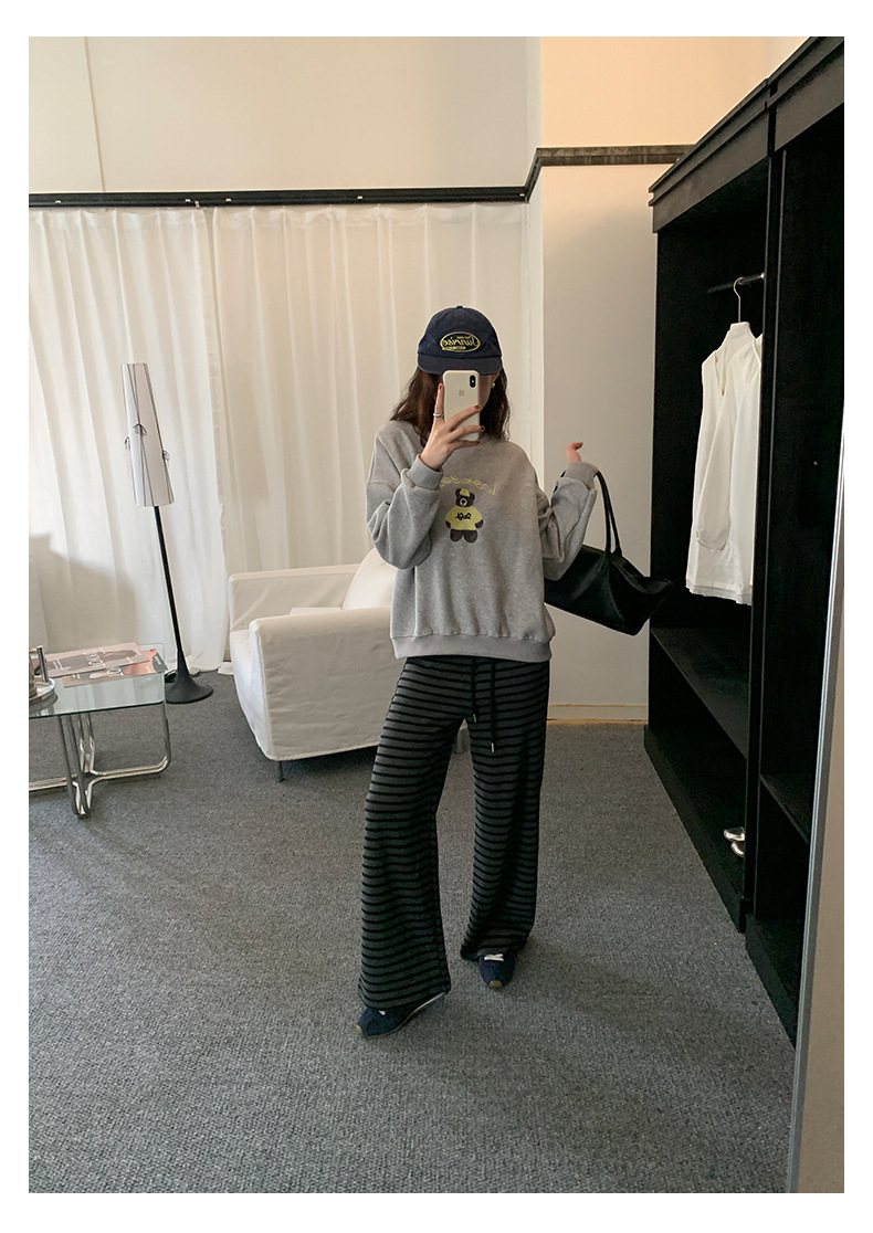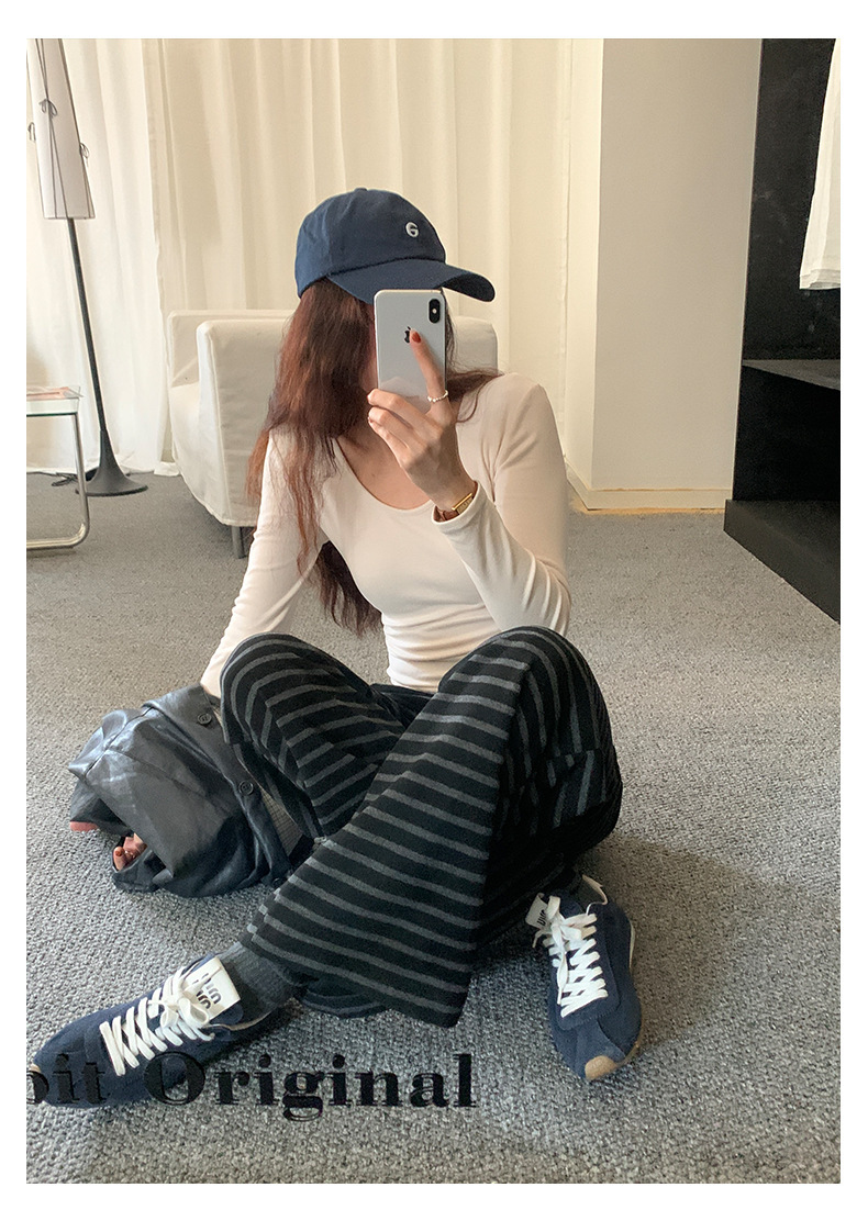 *o-ha-you*【FHZH1GB5041029】慵懶風抽繩垂感條紋休閒褲女秋冬百搭顯瘦直筒遛彎長褲-2色