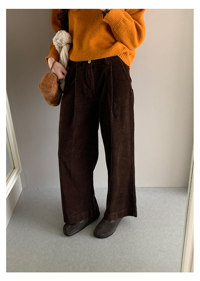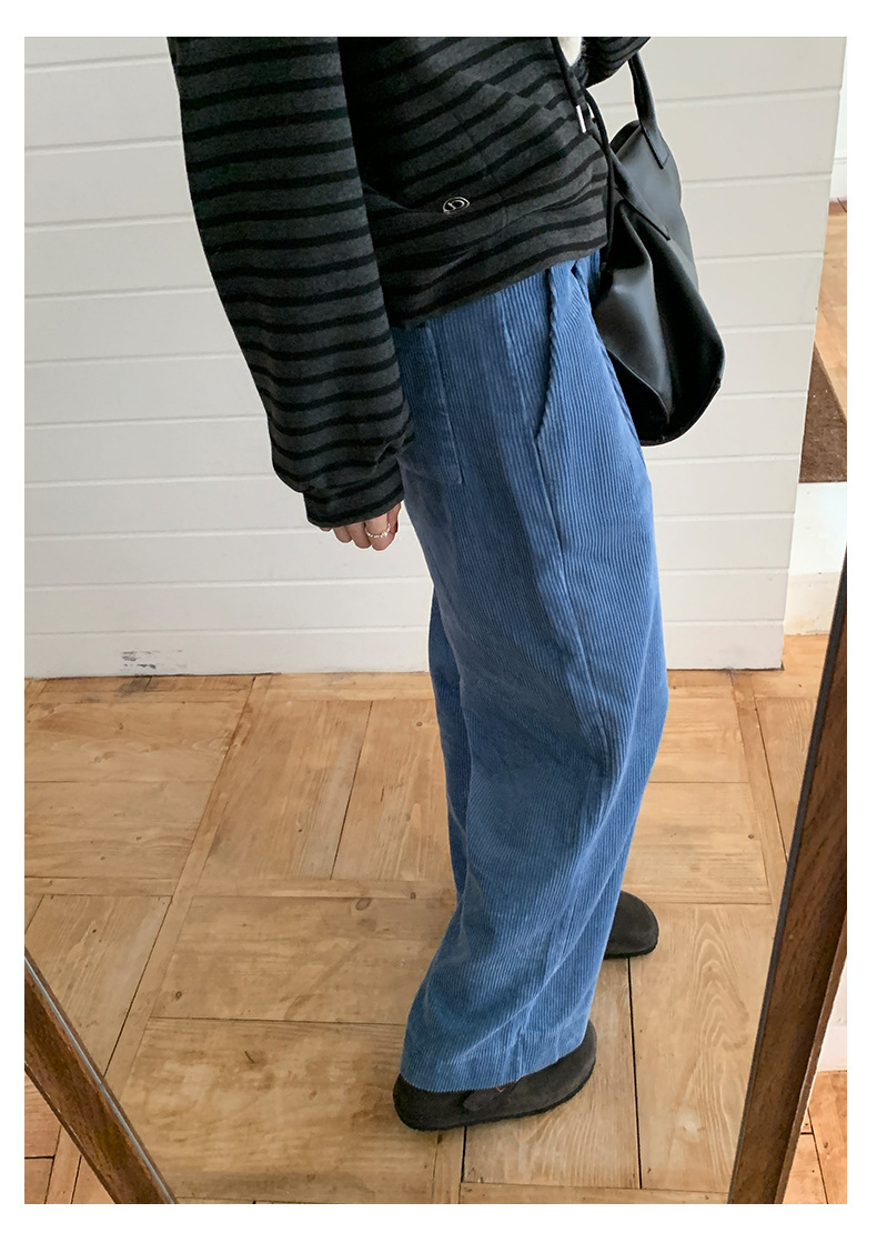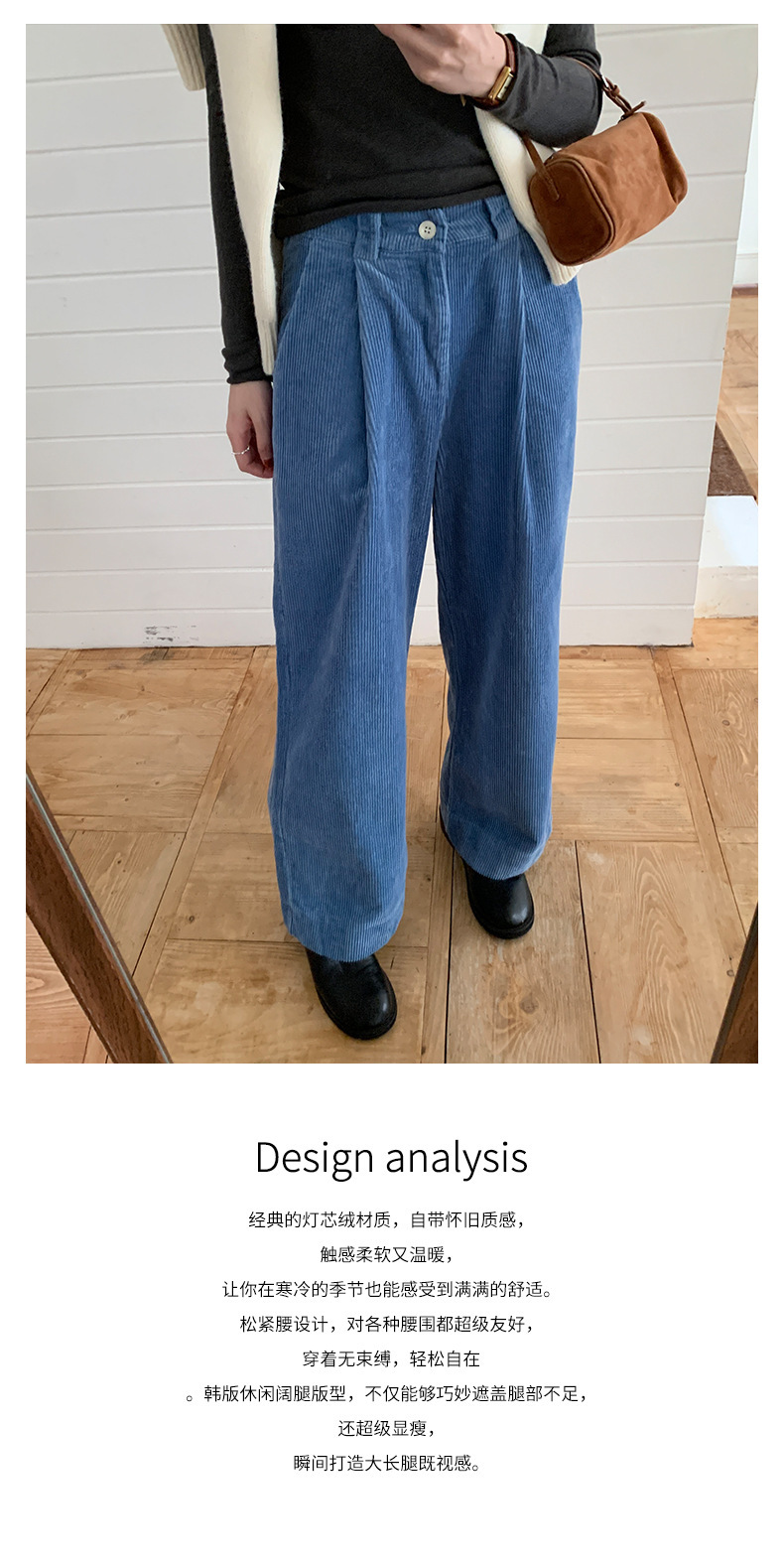 *o-ha-you*【FHZH1GB5041061】復古鬆緊腰燈芯絨休閒褲女25秋冬韓版休閒闊腿顯瘦長褲-2色