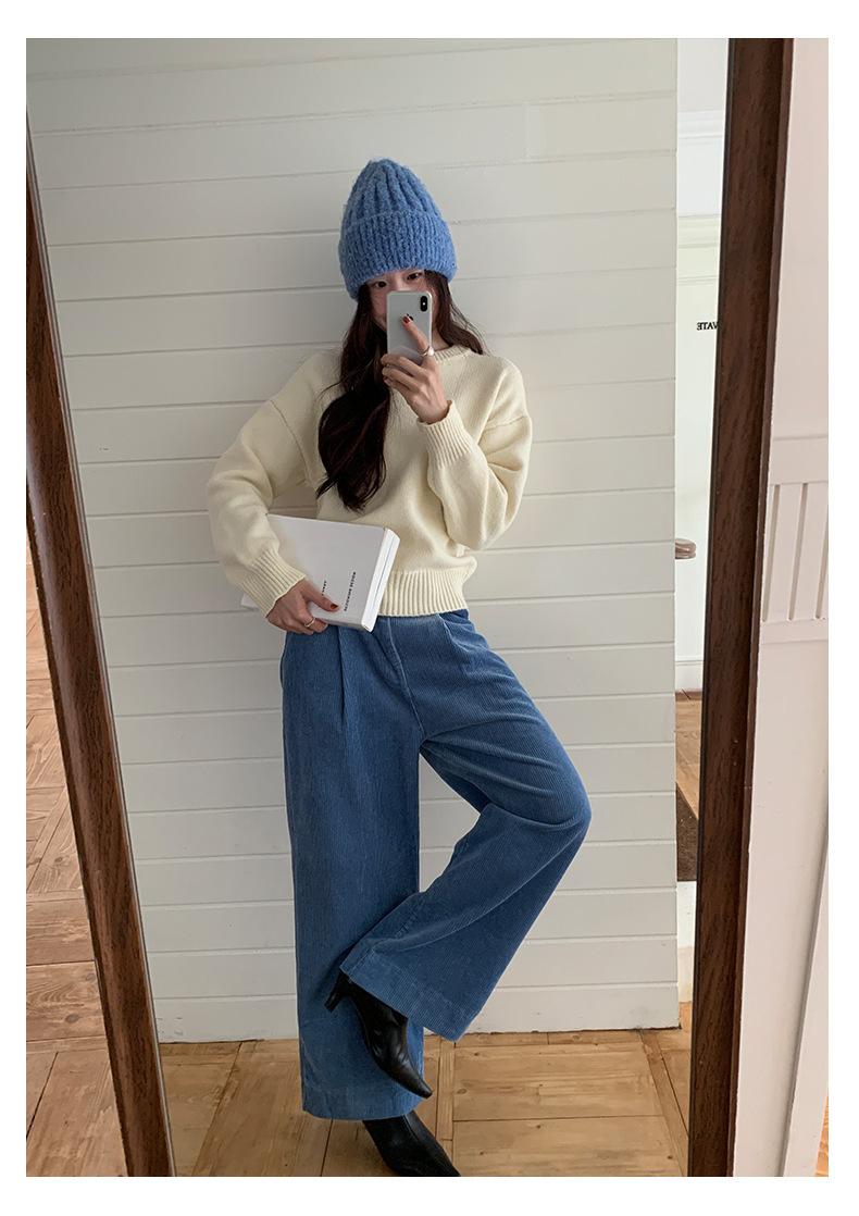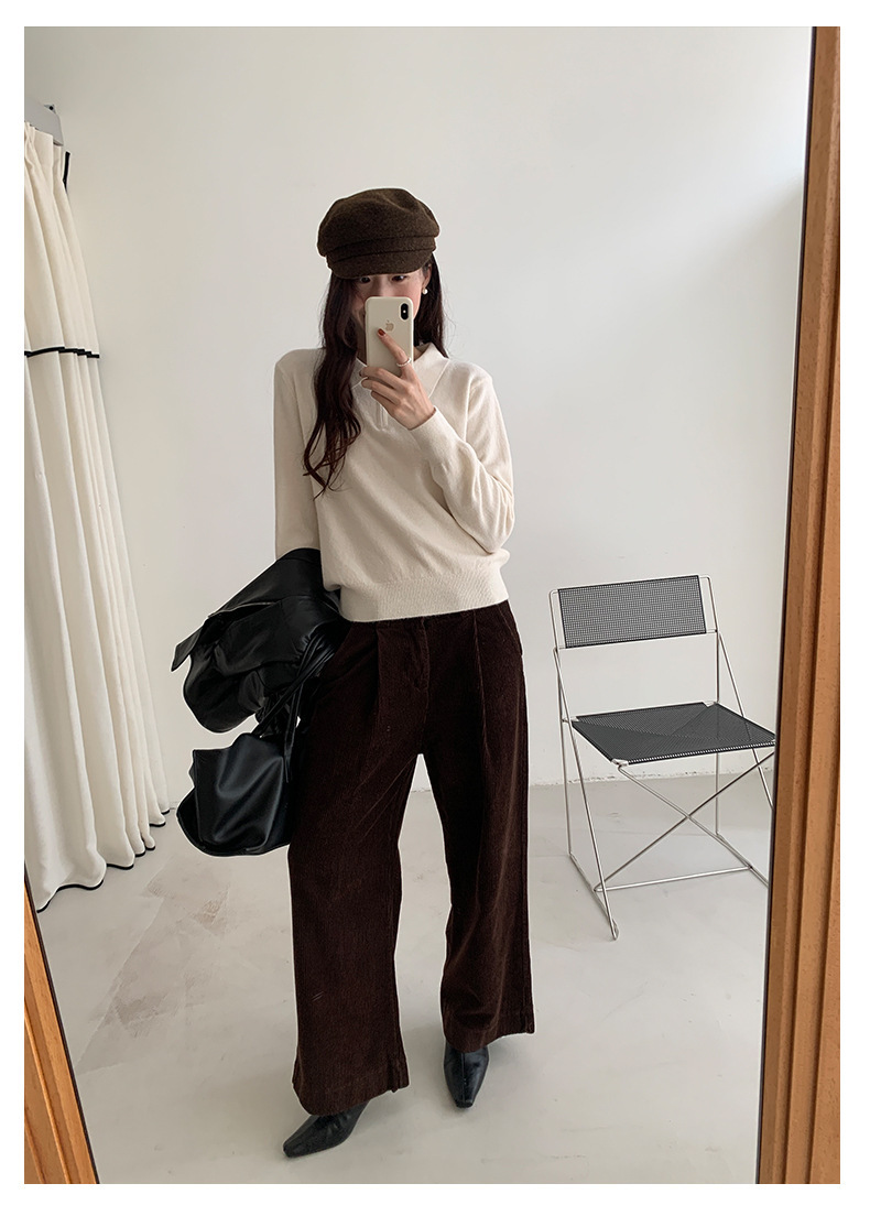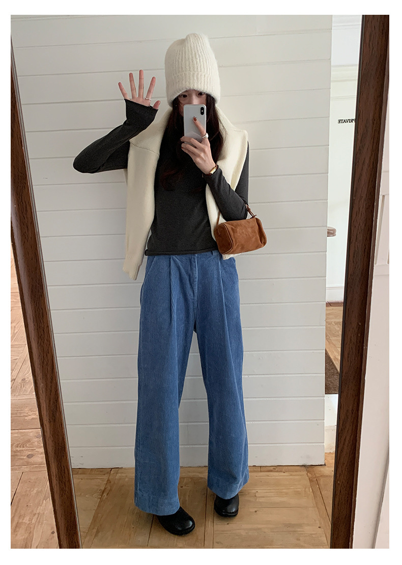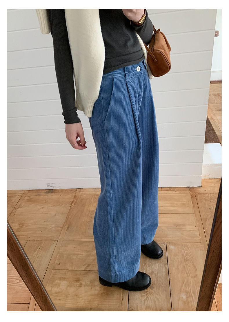 *o-ha-you*【FHZH1GB5041061】復古鬆緊腰燈芯絨休閒褲女25秋冬韓版休閒闊腿顯瘦長褲-2色