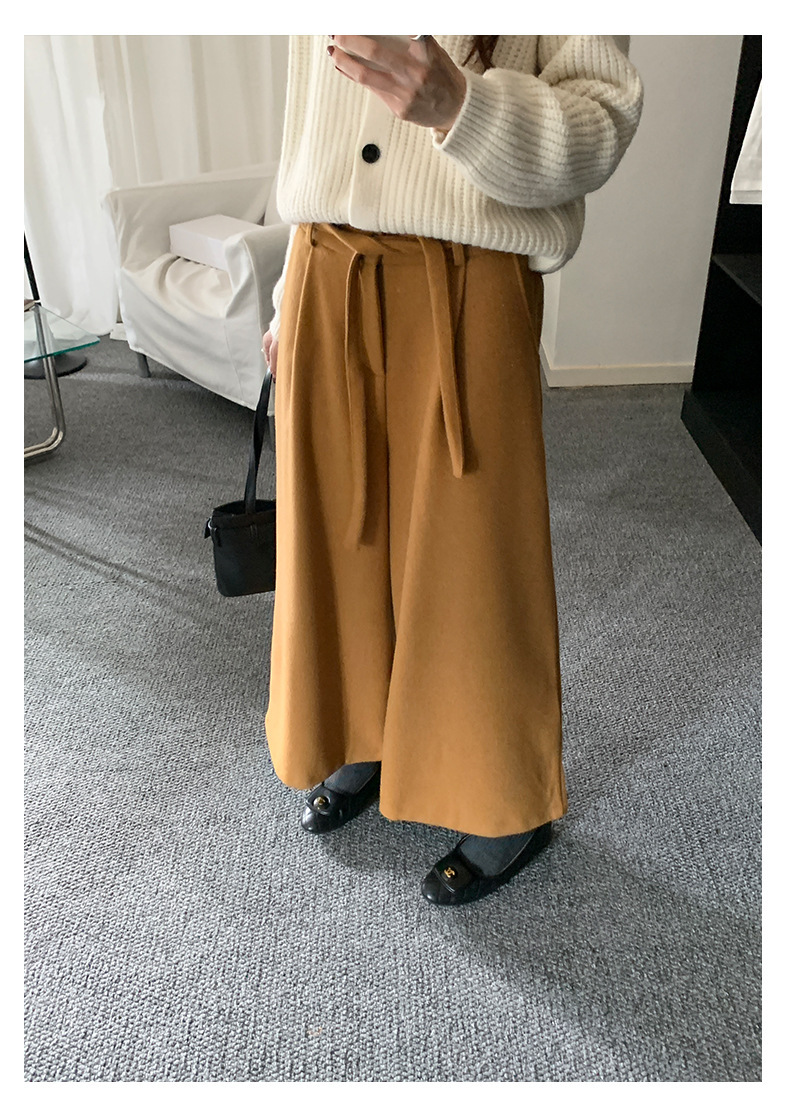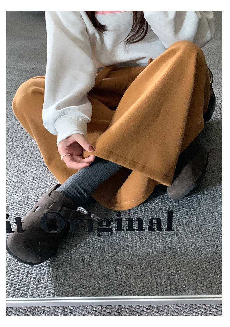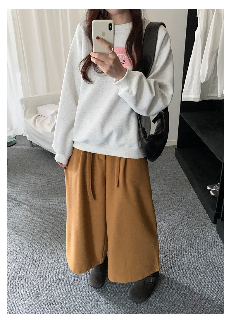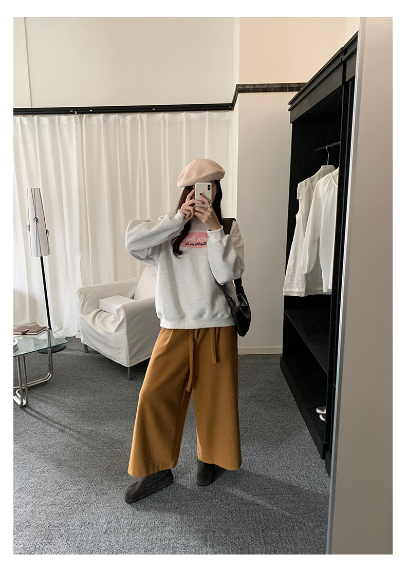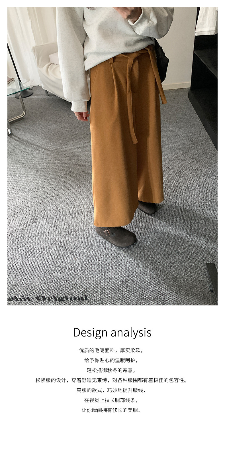 *o-ha-you*【FHZH1GB5041078】毛呢鬆緊腰加厚寬褲休閒褲女秋冬韓版百搭高腰顯瘦長褲-2色