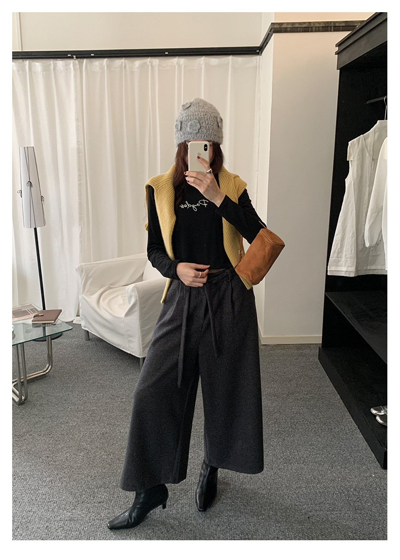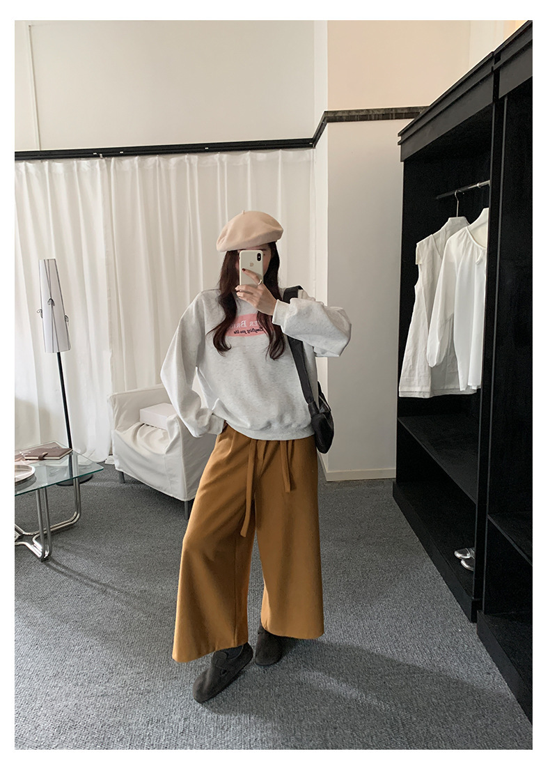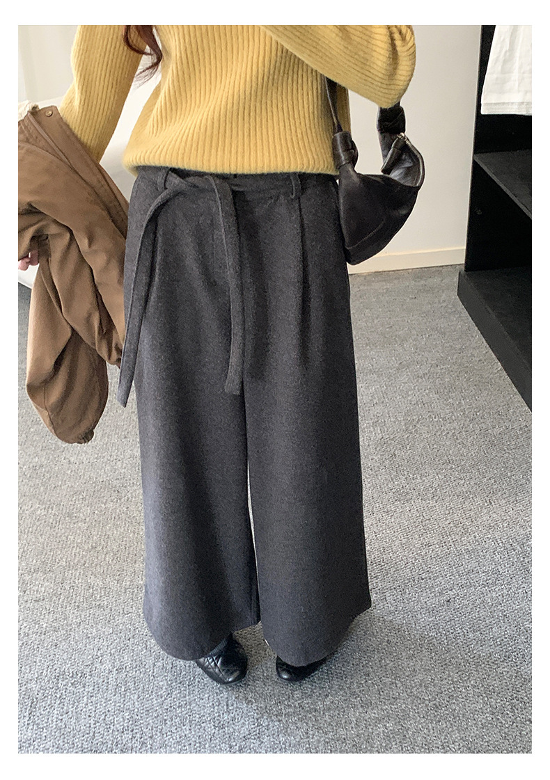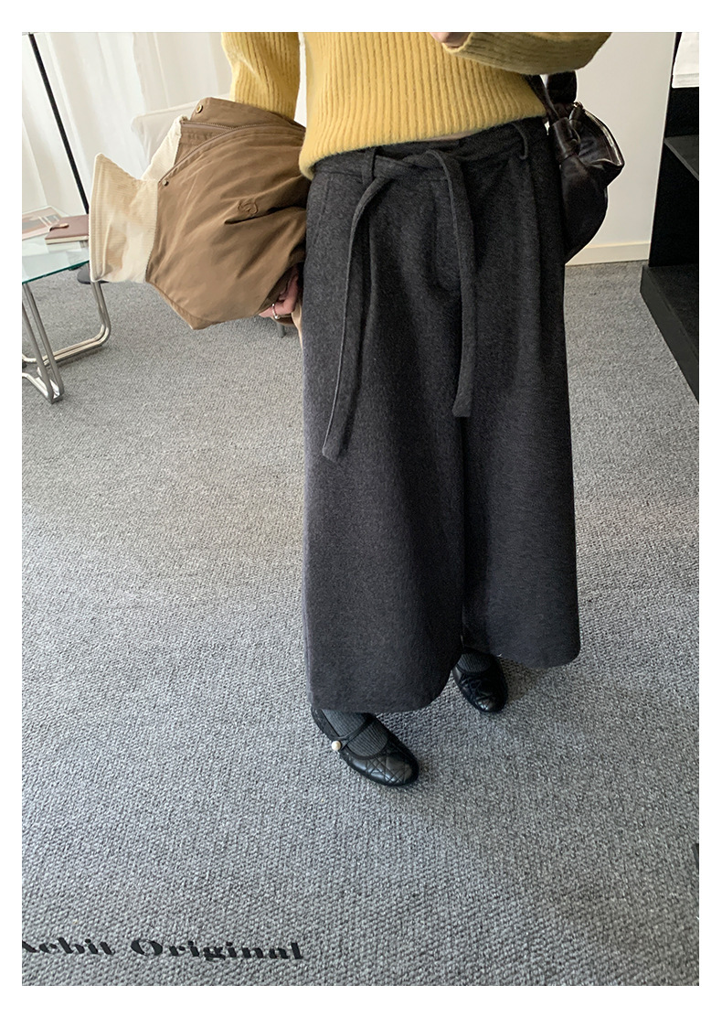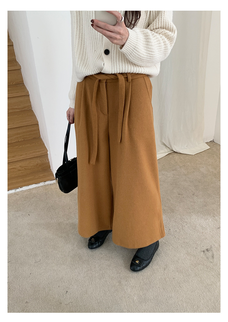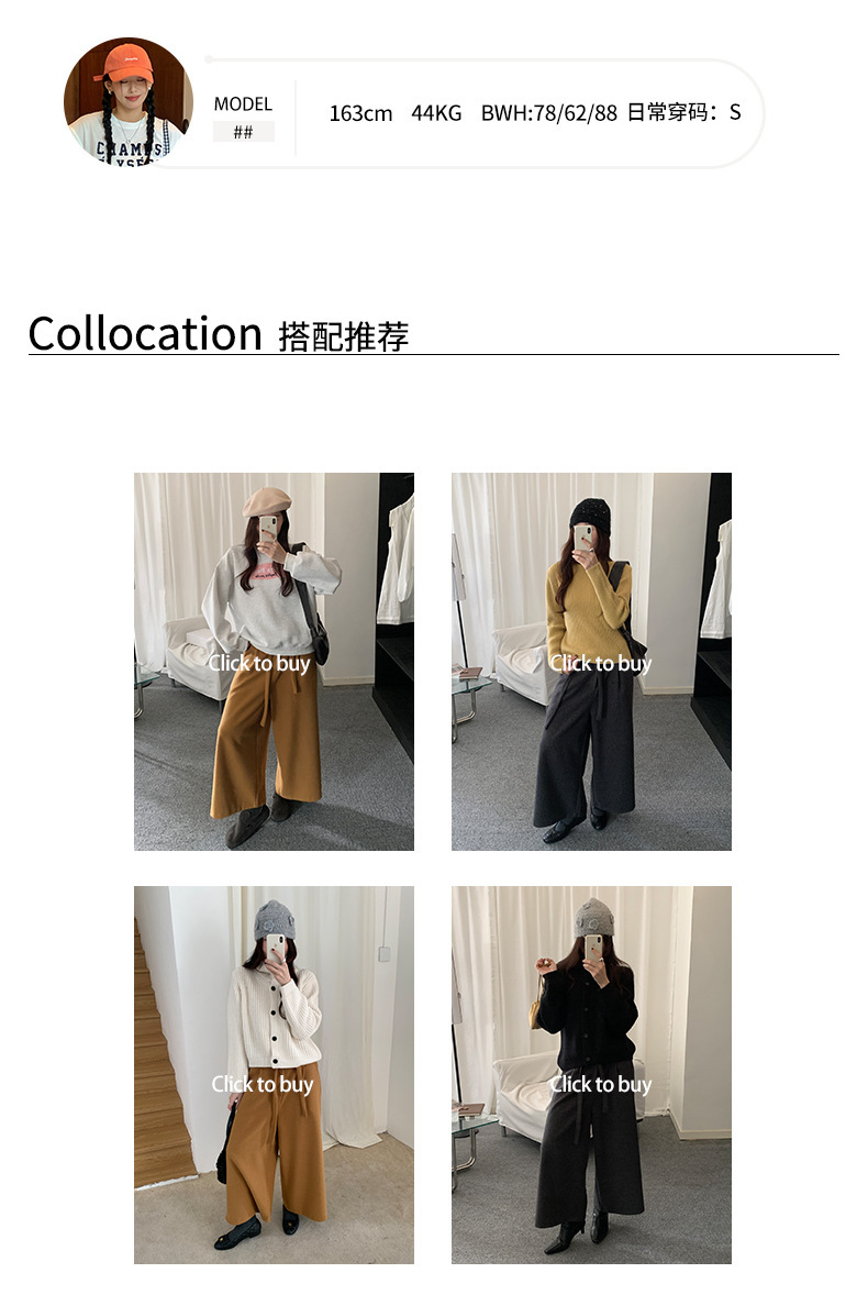 *o-ha-you*【FHZH1GB5041078】毛呢鬆緊腰加厚寬褲休閒褲女秋冬韓版百搭高腰顯瘦長褲-2色