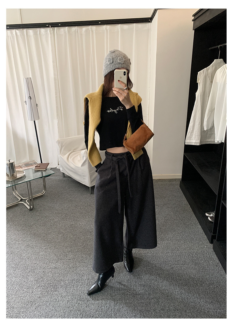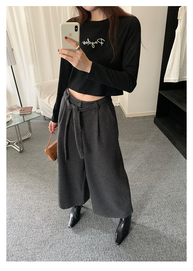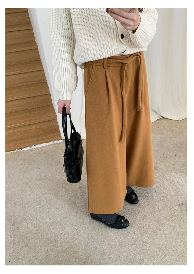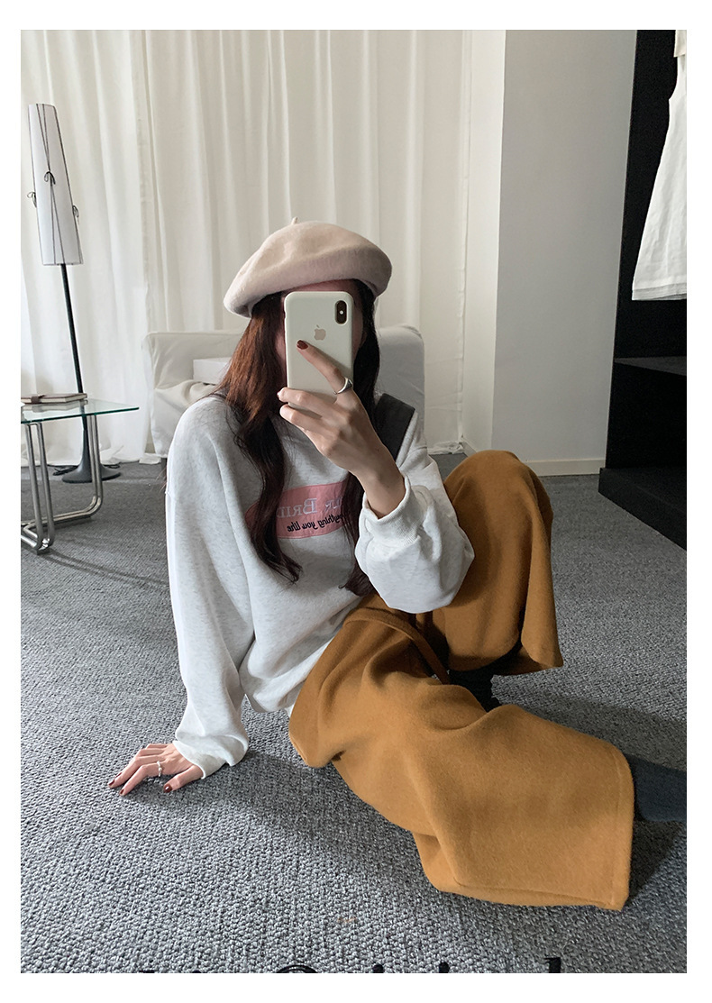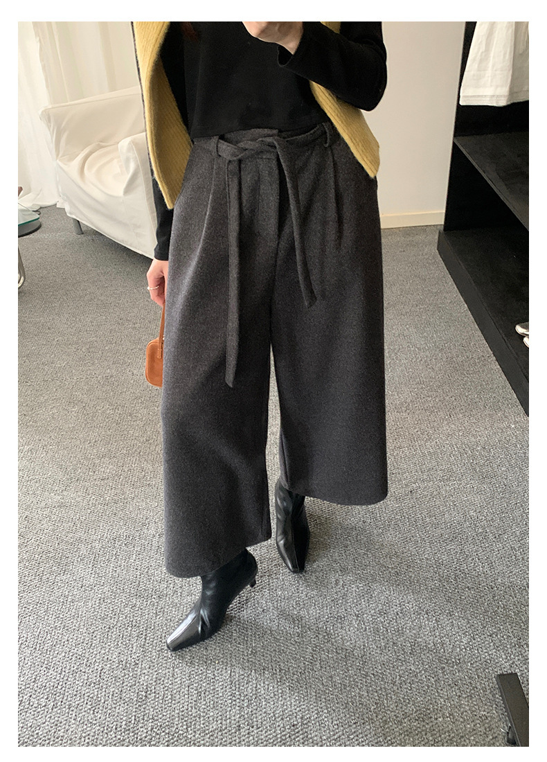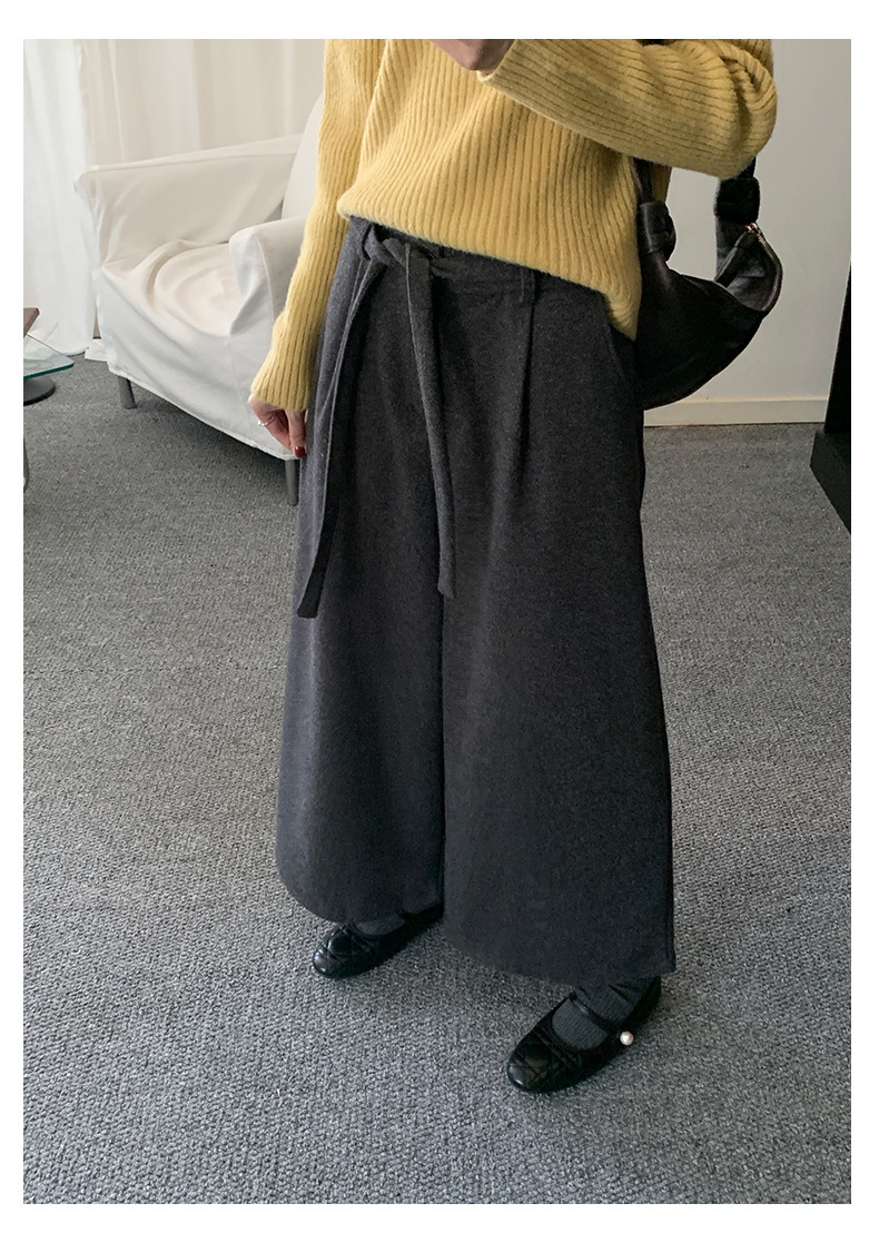 *o-ha-you*【FHZH1GB5041078】毛呢鬆緊腰加厚寬褲休閒褲女秋冬韓版百搭高腰顯瘦長褲-2色