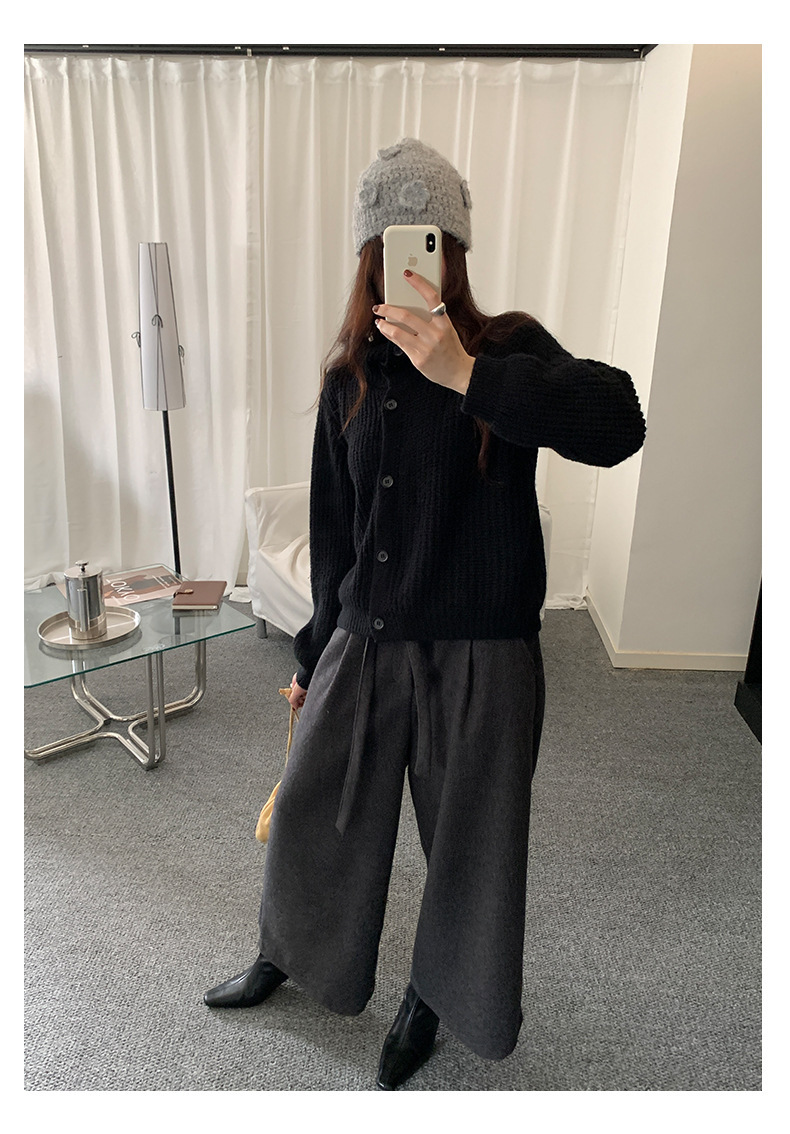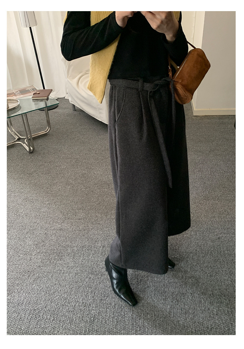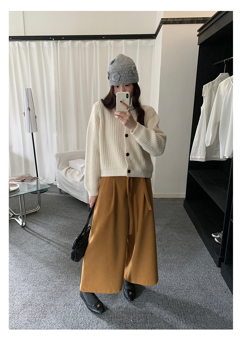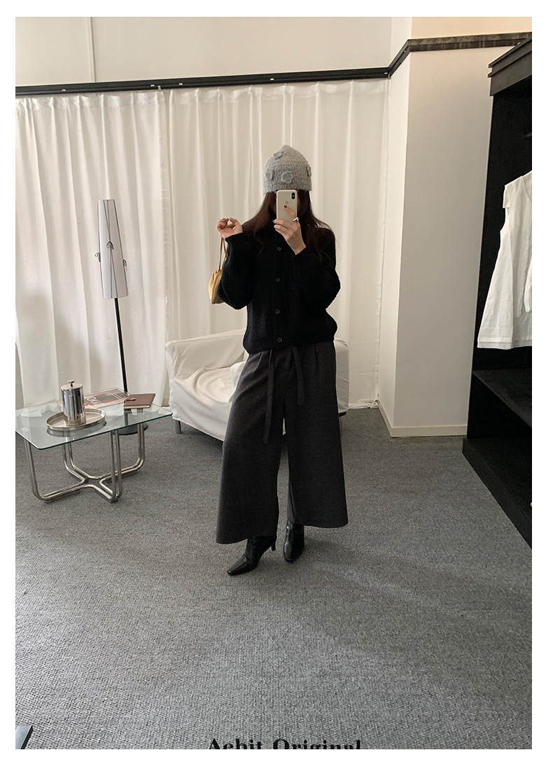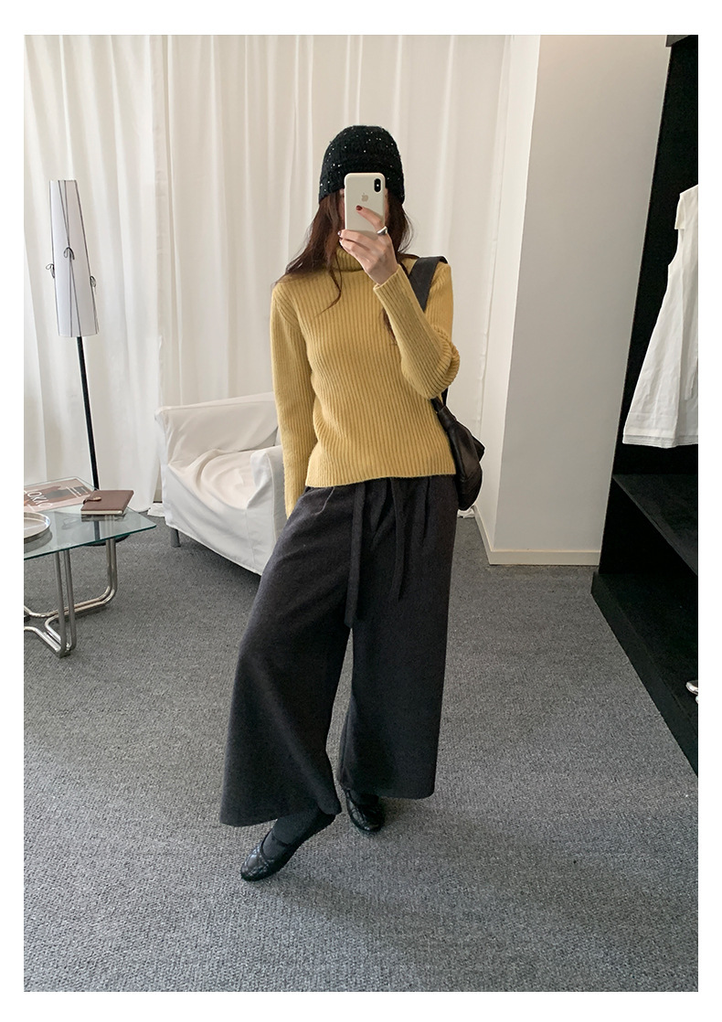*o-ha-you*【FHZH1GB5041078】毛呢鬆緊腰加厚寬褲休閒褲女秋冬韓版百搭高腰顯瘦長褲-2色