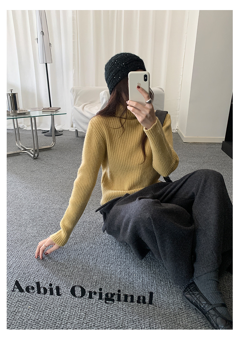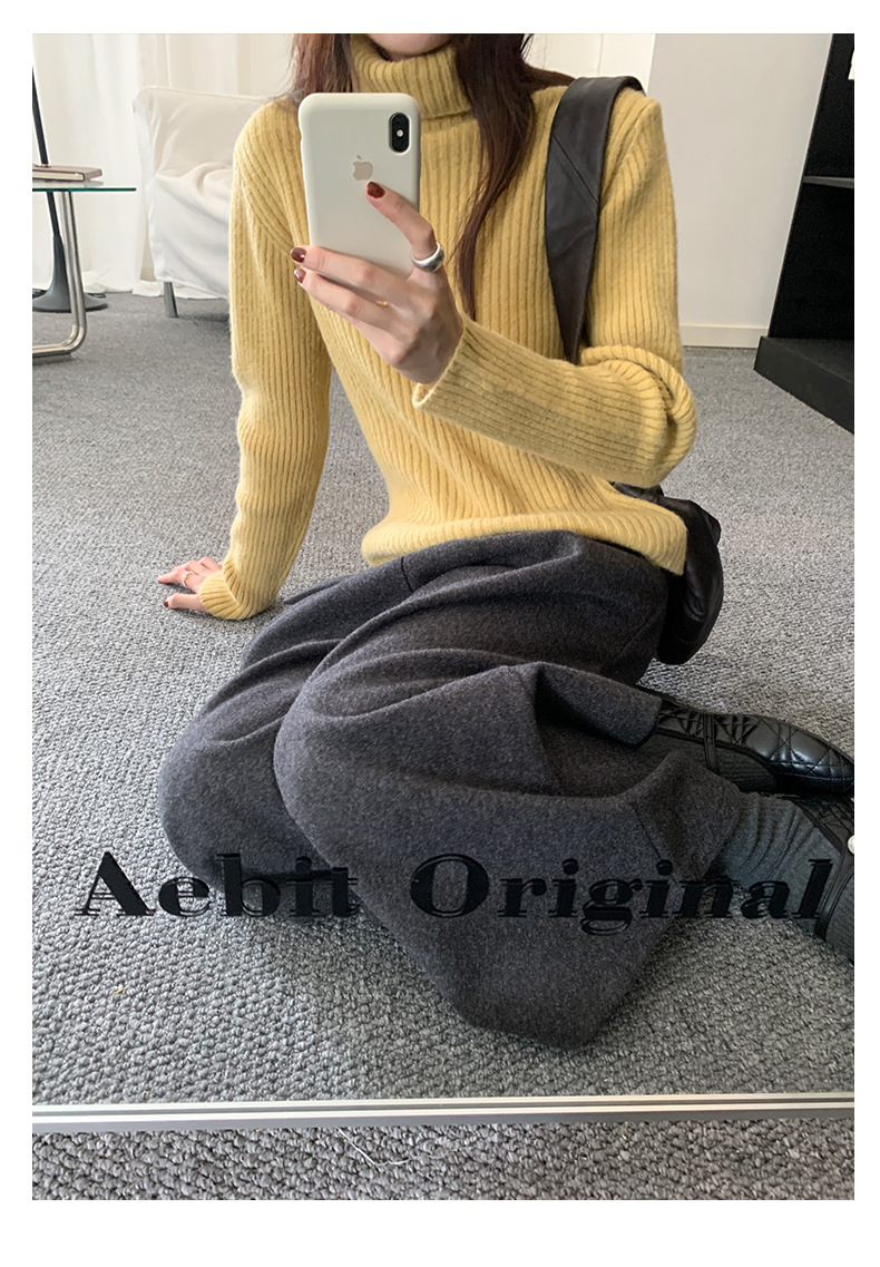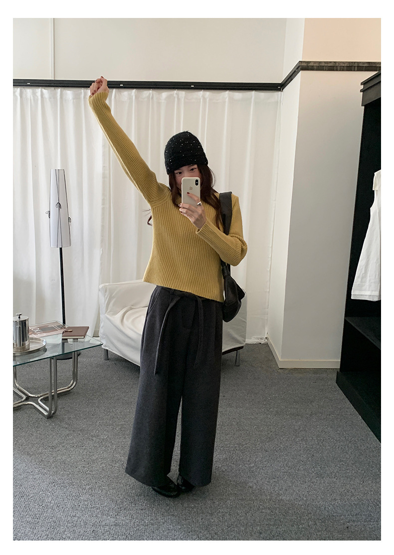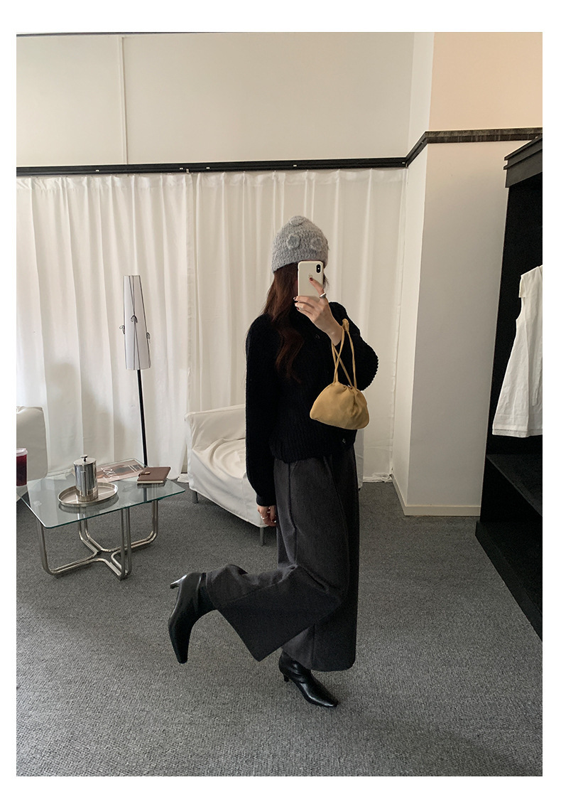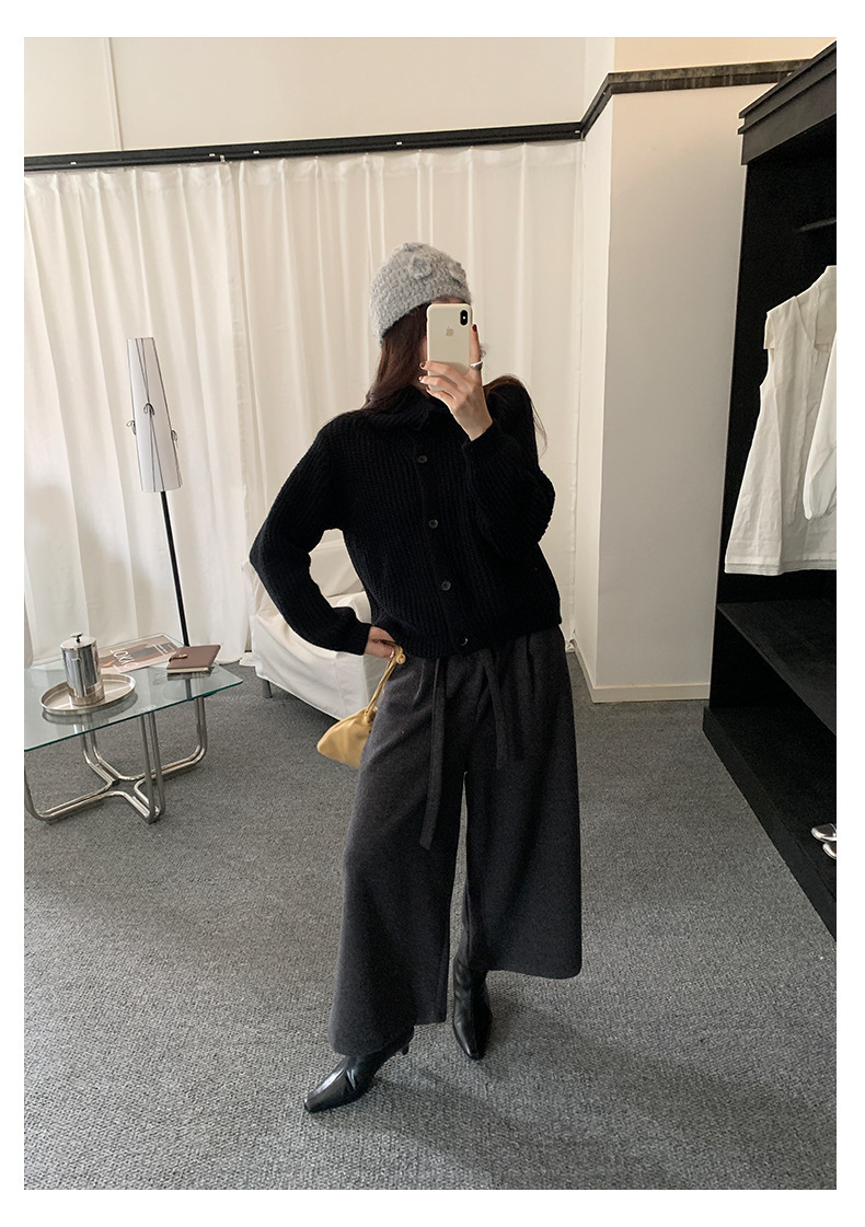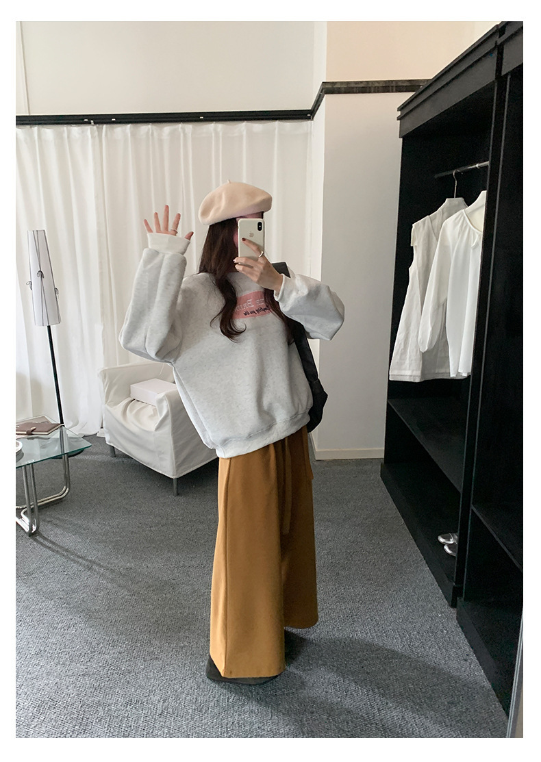 *o-ha-you*【FHZH1GB5041078】毛呢鬆緊腰加厚寬褲休閒褲女秋冬韓版百搭高腰顯瘦長褲-2色