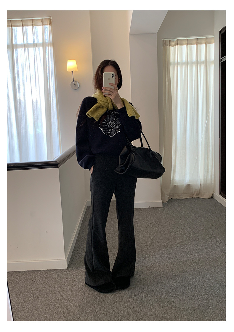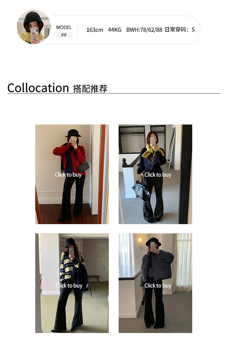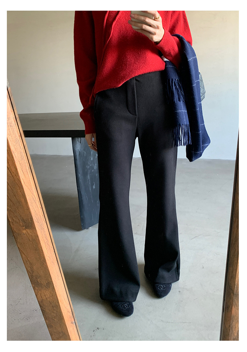 *o-ha-you*【FHZH1GB5041138】辣妹風高腰加絨喇叭休閒褲女冬季保暖慵懶氣質顯瘦長褲-2色
