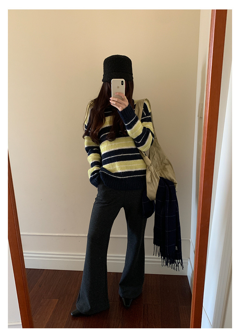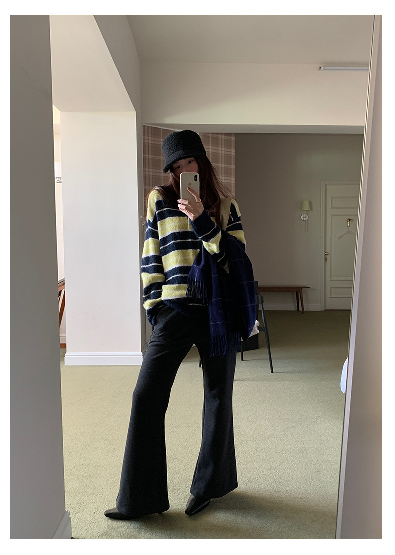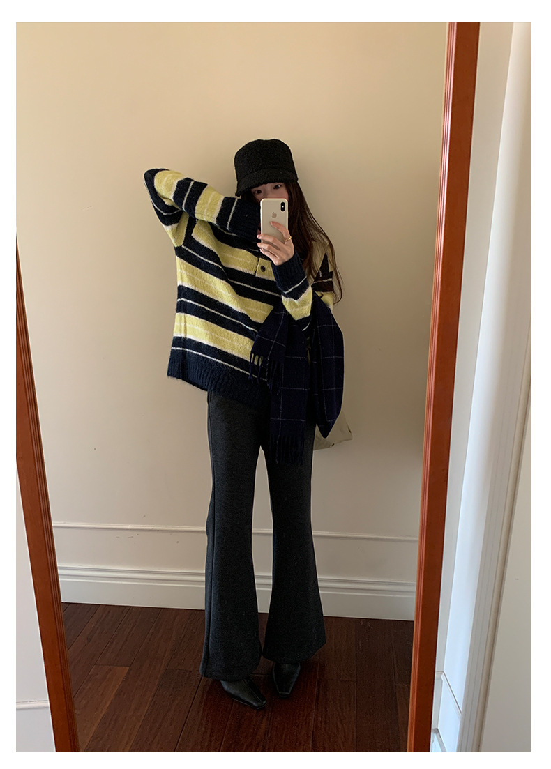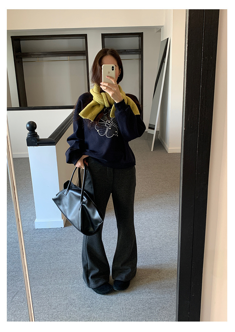 *o-ha-you*【FHZH1GB5041138】辣妹風高腰加絨喇叭休閒褲女冬季保暖慵懶氣質顯瘦長褲-2色