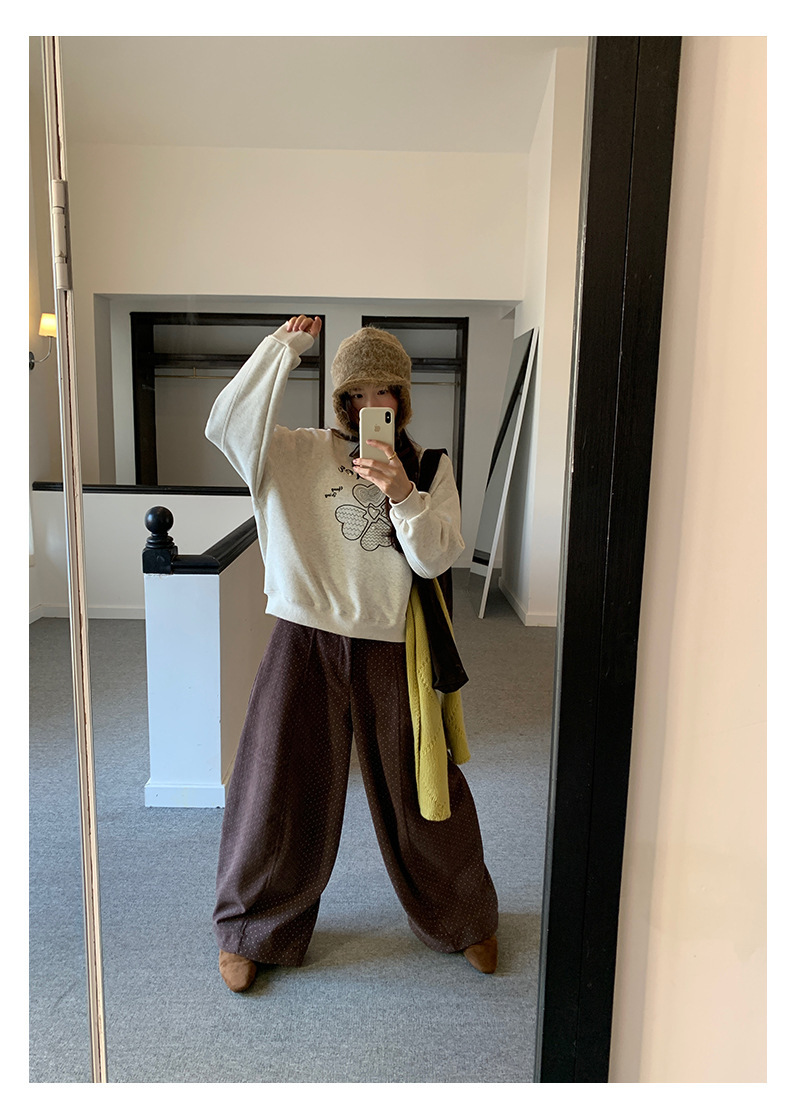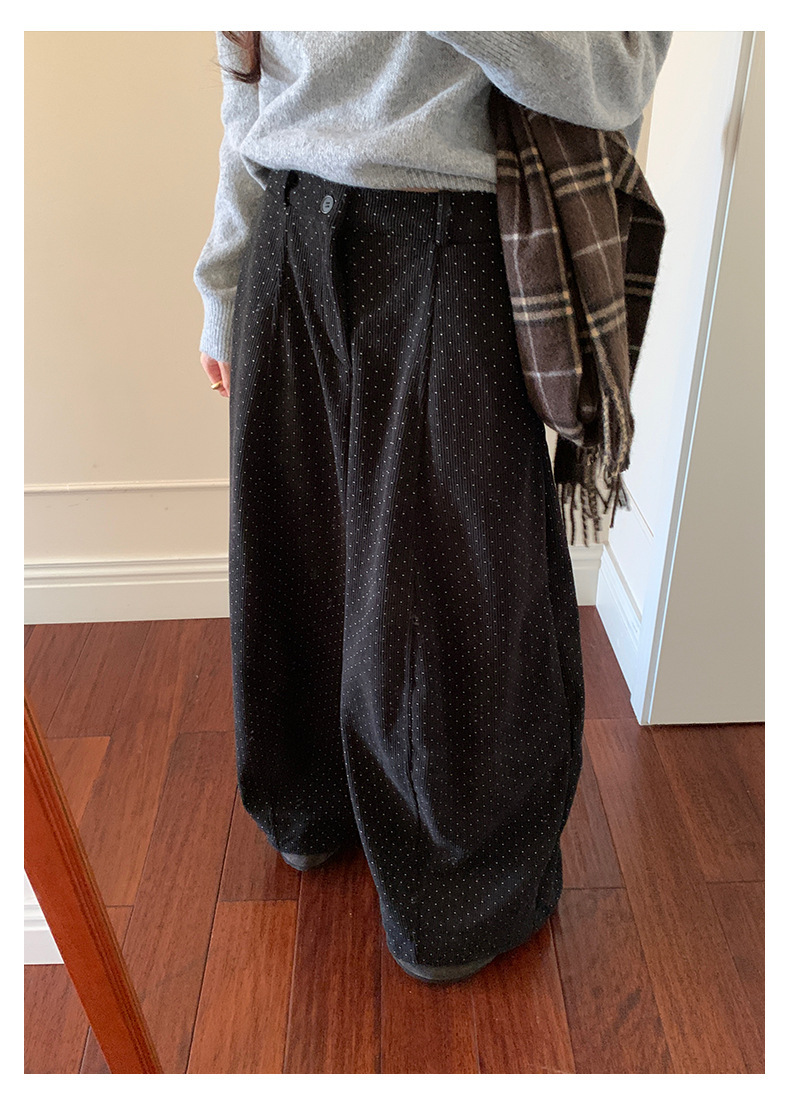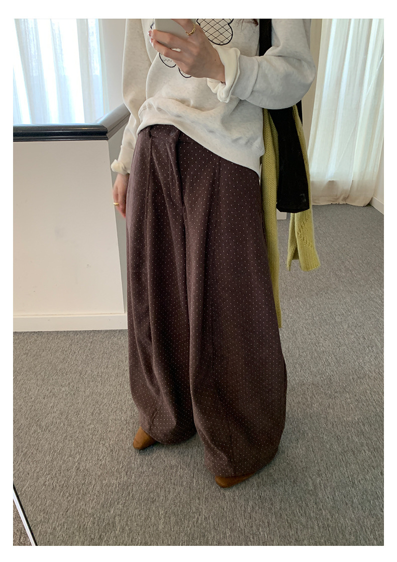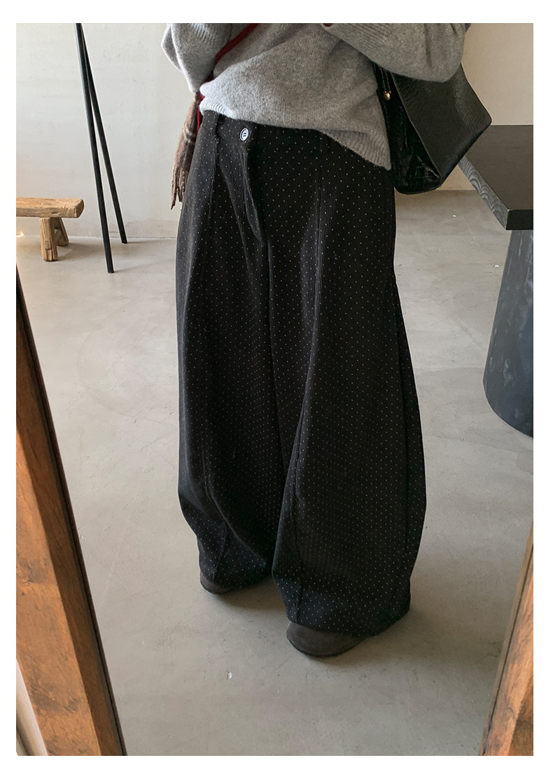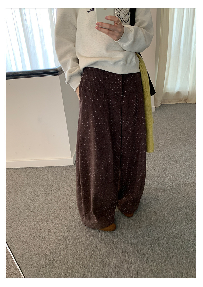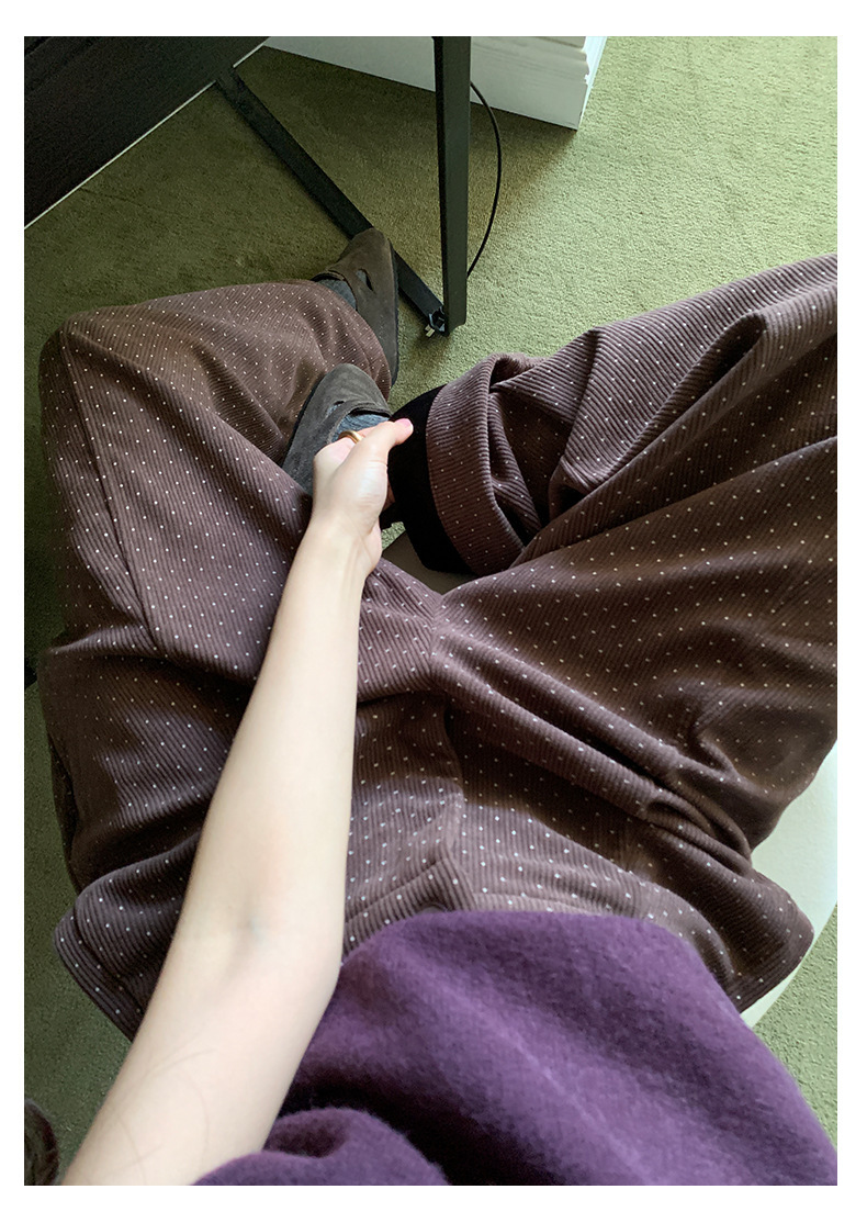 *o-ha-you*【FHZH1GB5041139】復古燈芯絨波點加絨休閒褲女冬季百搭保暖直筒闊腿長褲-2色