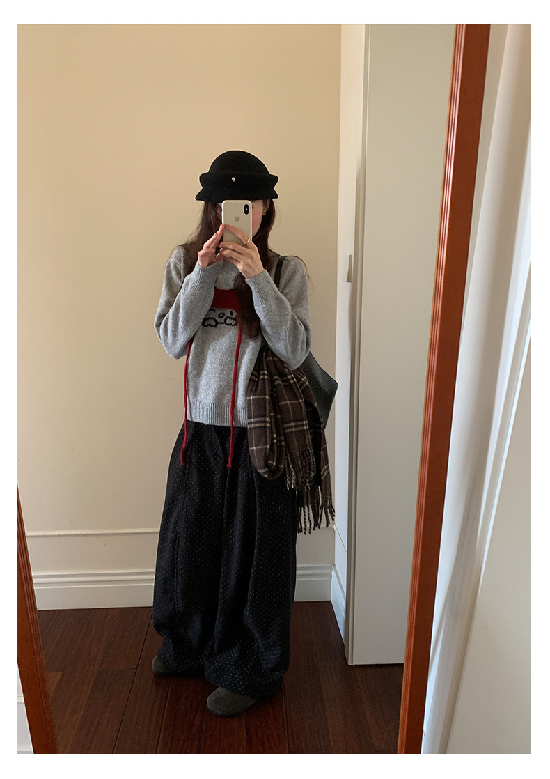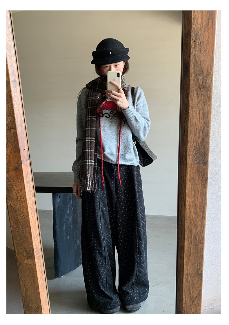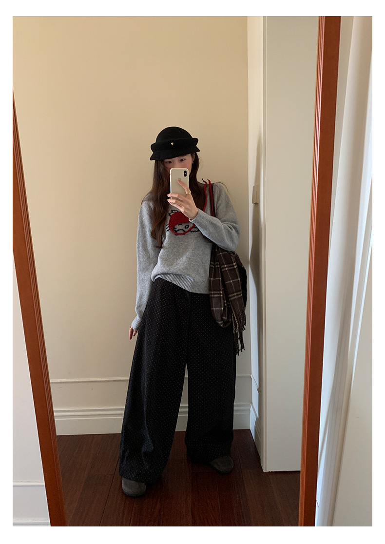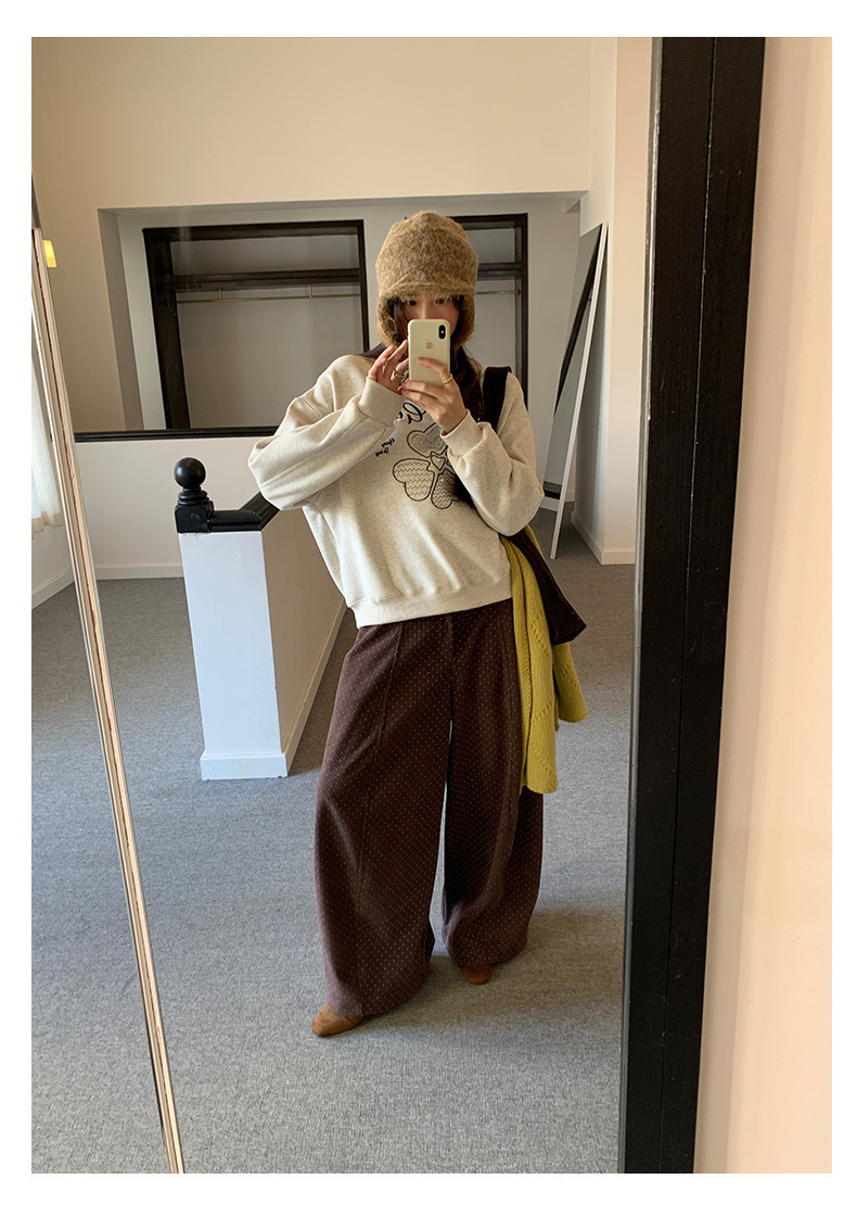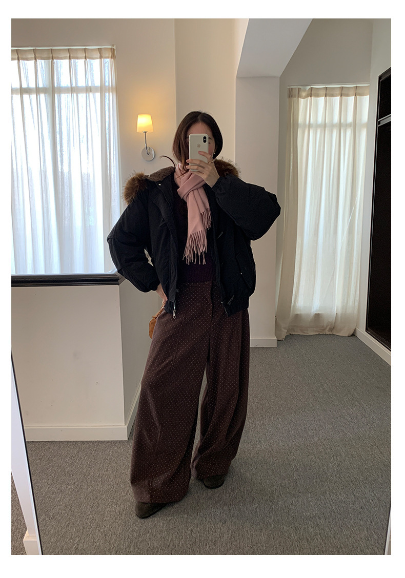 *o-ha-you*【FHZH1GB5041139】復古燈芯絨波點加絨休閒褲女冬季百搭保暖直筒闊腿長褲-2色