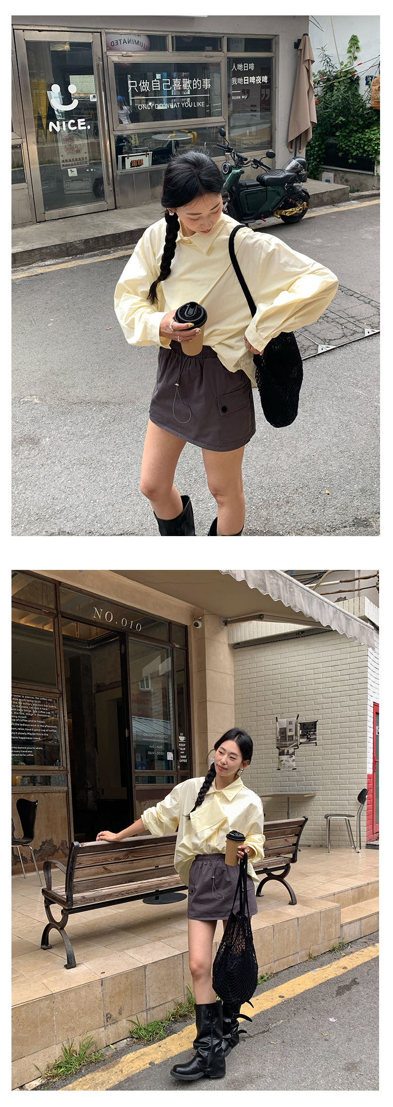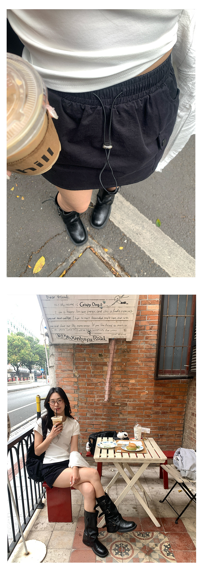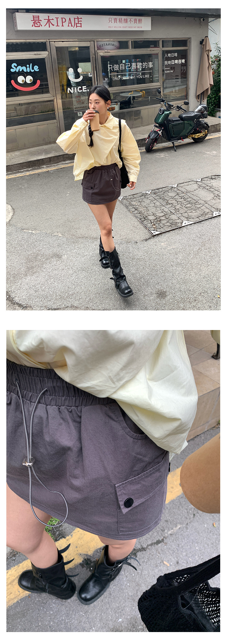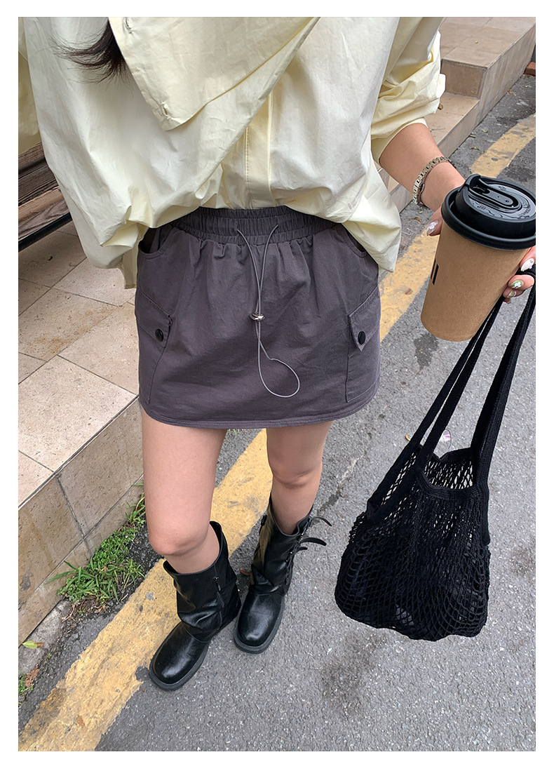 *o-ha-you*【FHZH1GC5010220】抽繩鬆緊腰雙口袋鈕扣裝飾工裝短裙2025春夏時尚美裙-2色