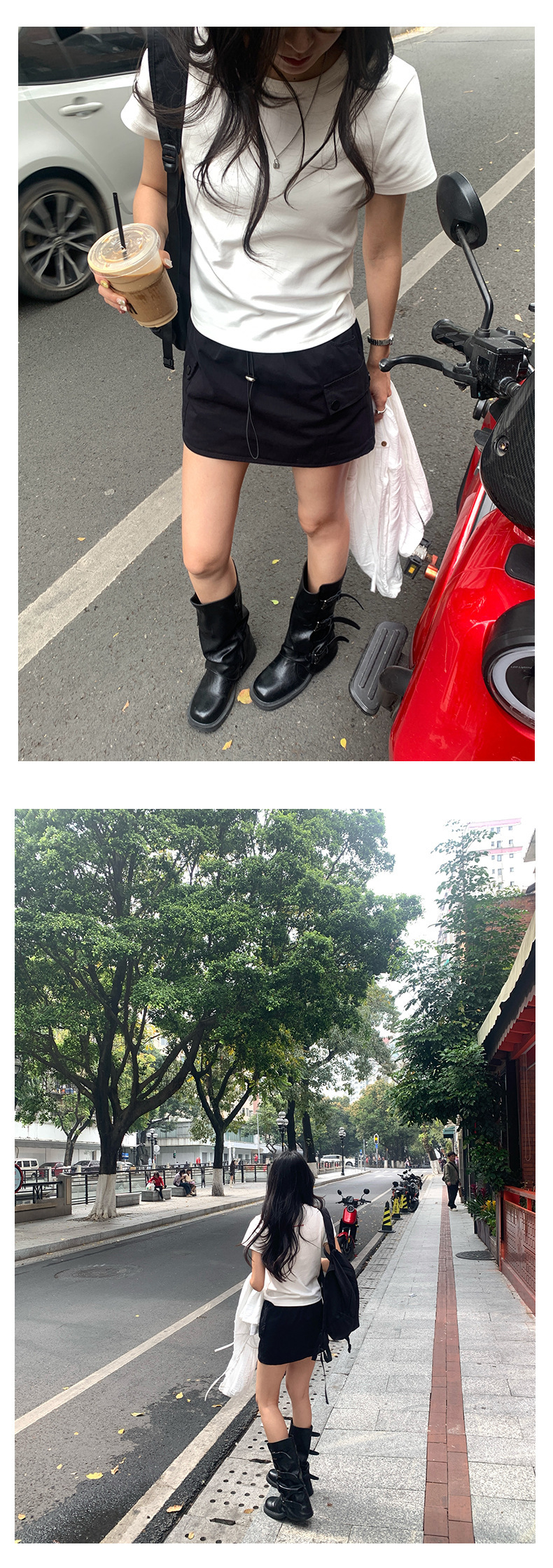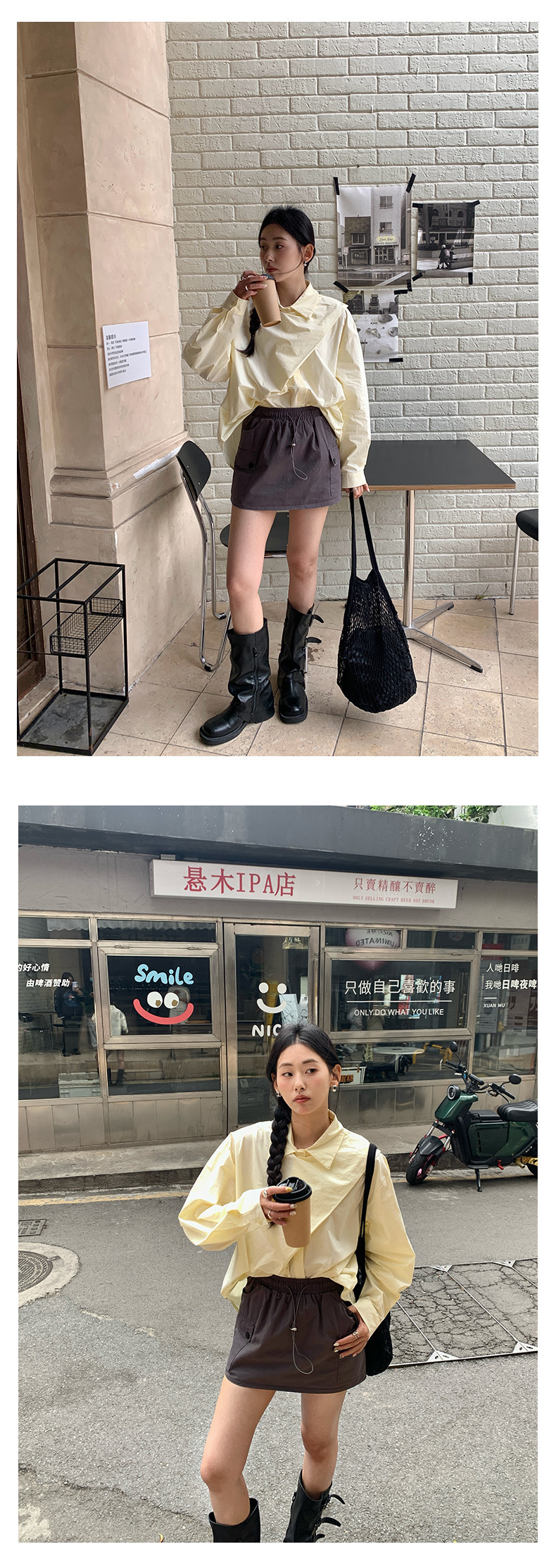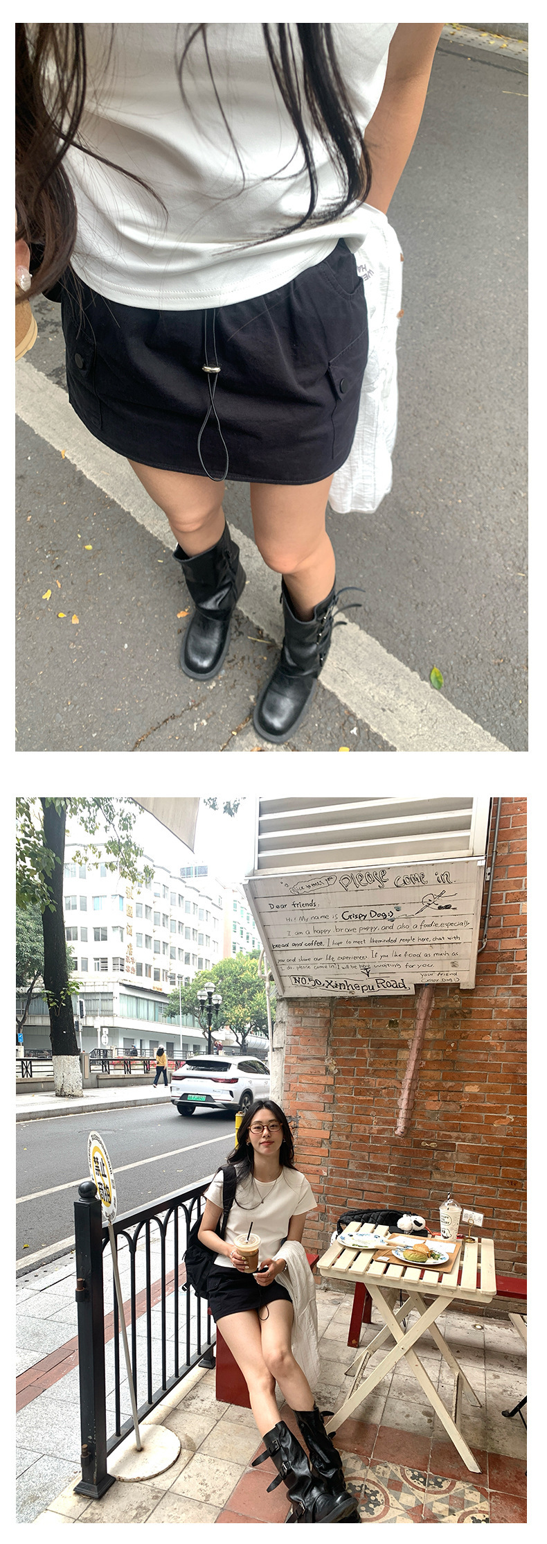 *o-ha-you*【FHZH1GC5010220】抽繩鬆緊腰雙口袋鈕扣裝飾工裝短裙2025春夏時尚美裙-2色