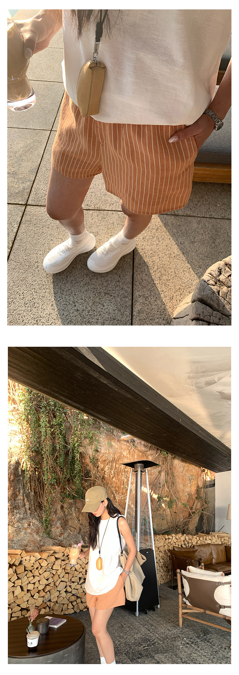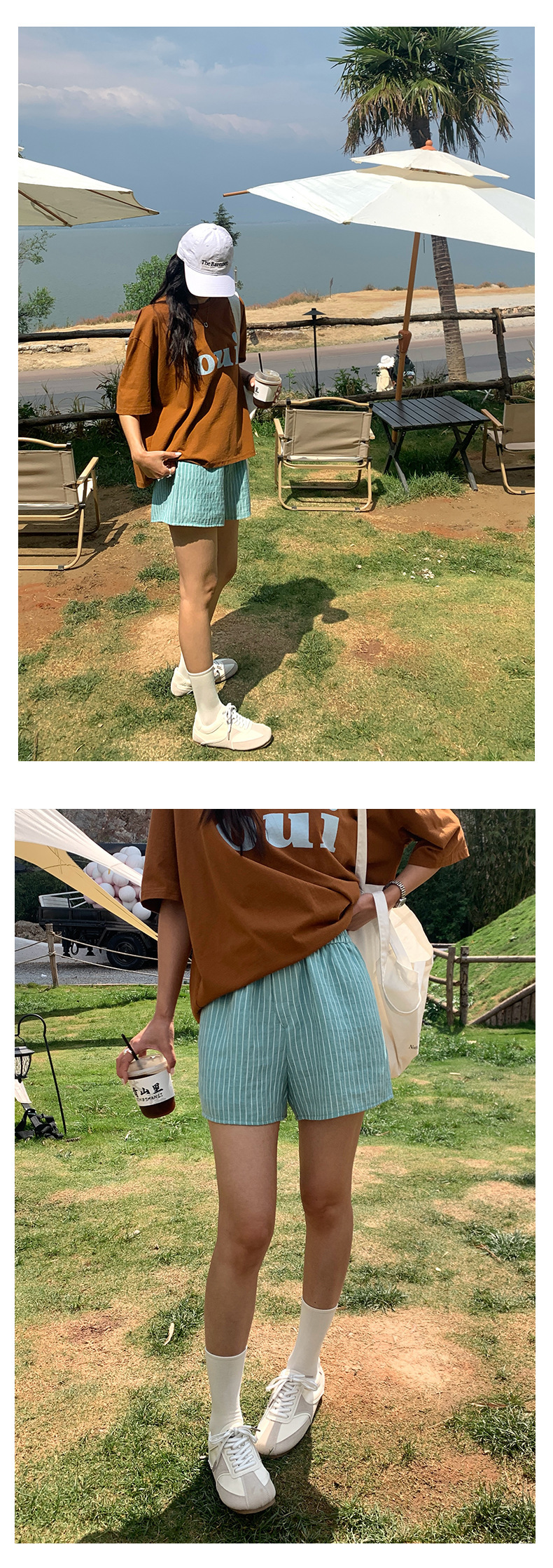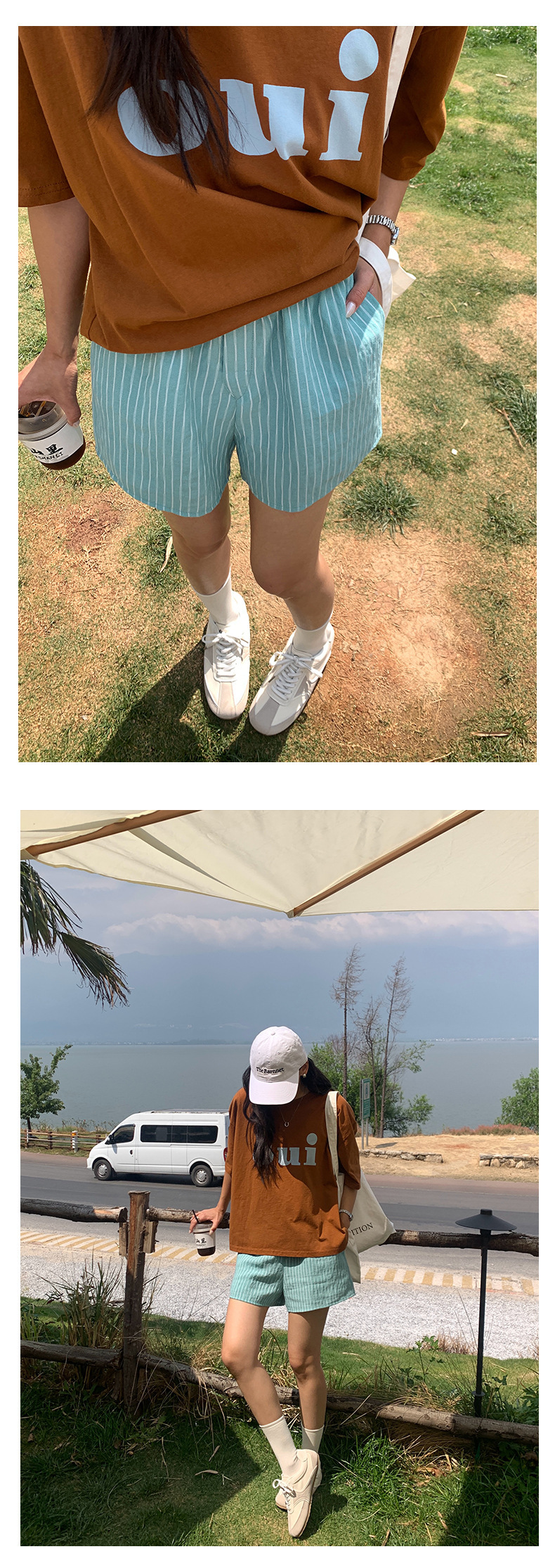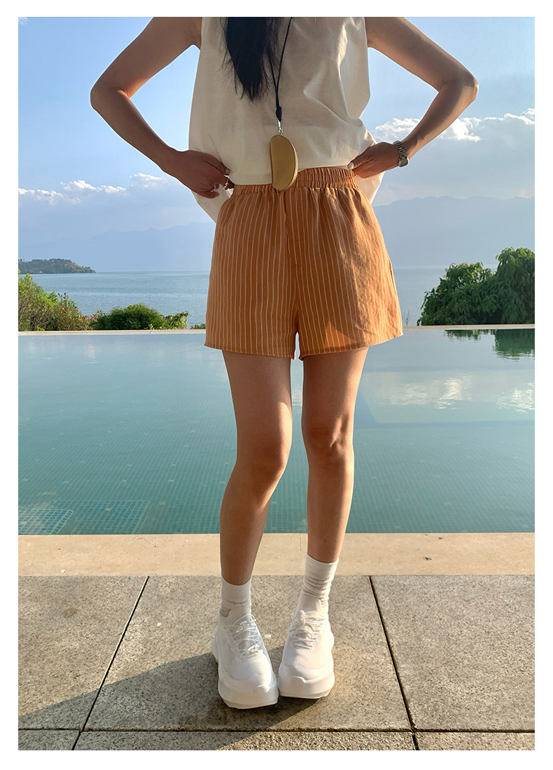 *o-ha-you*【FHZH1GC5020349】清新豎條紋鬆緊腰寬鬆直筒休閒短褲2025夏款時尚百搭-2色-如有需要請先諮詢