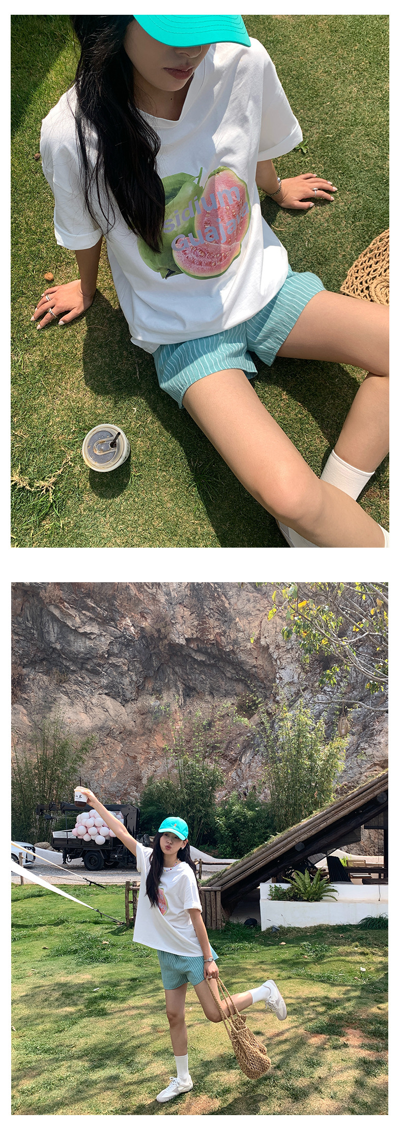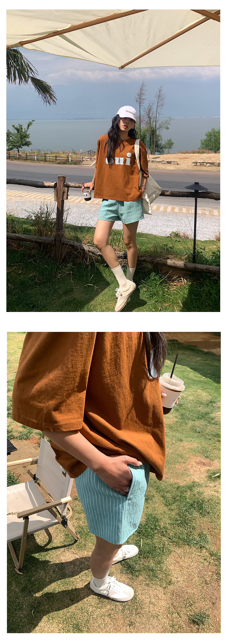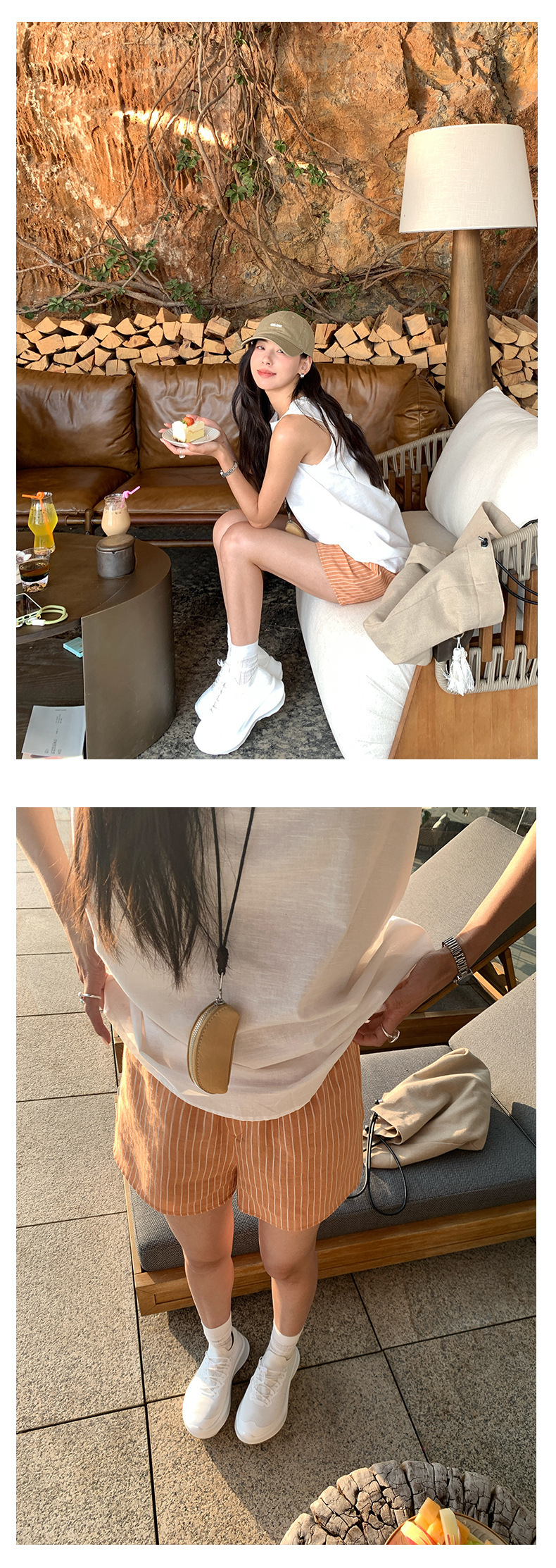 *o-ha-you*【FHZH1GC5020349】清新豎條紋鬆緊腰寬鬆直筒休閒短褲2025夏款時尚百搭-2色-如有需要請先諮詢