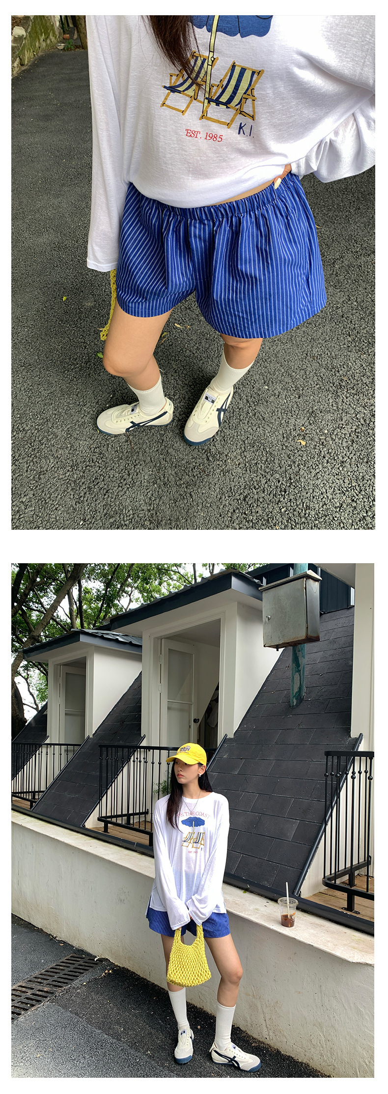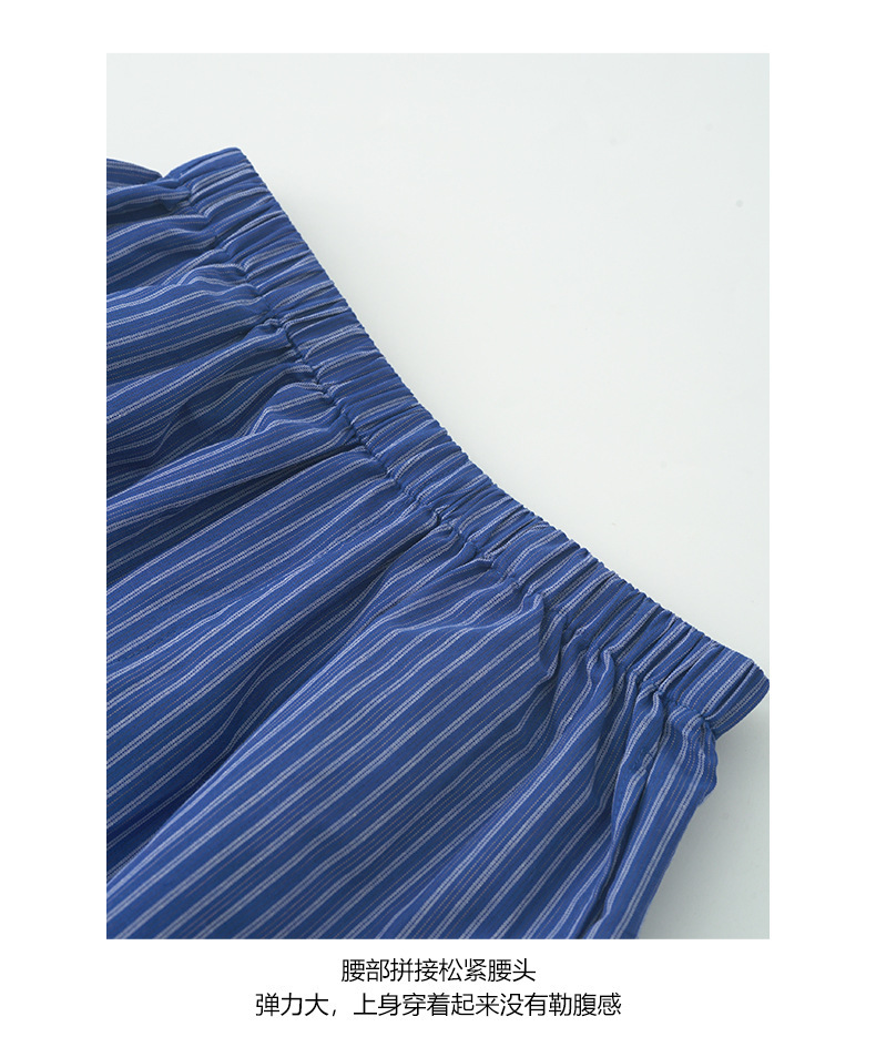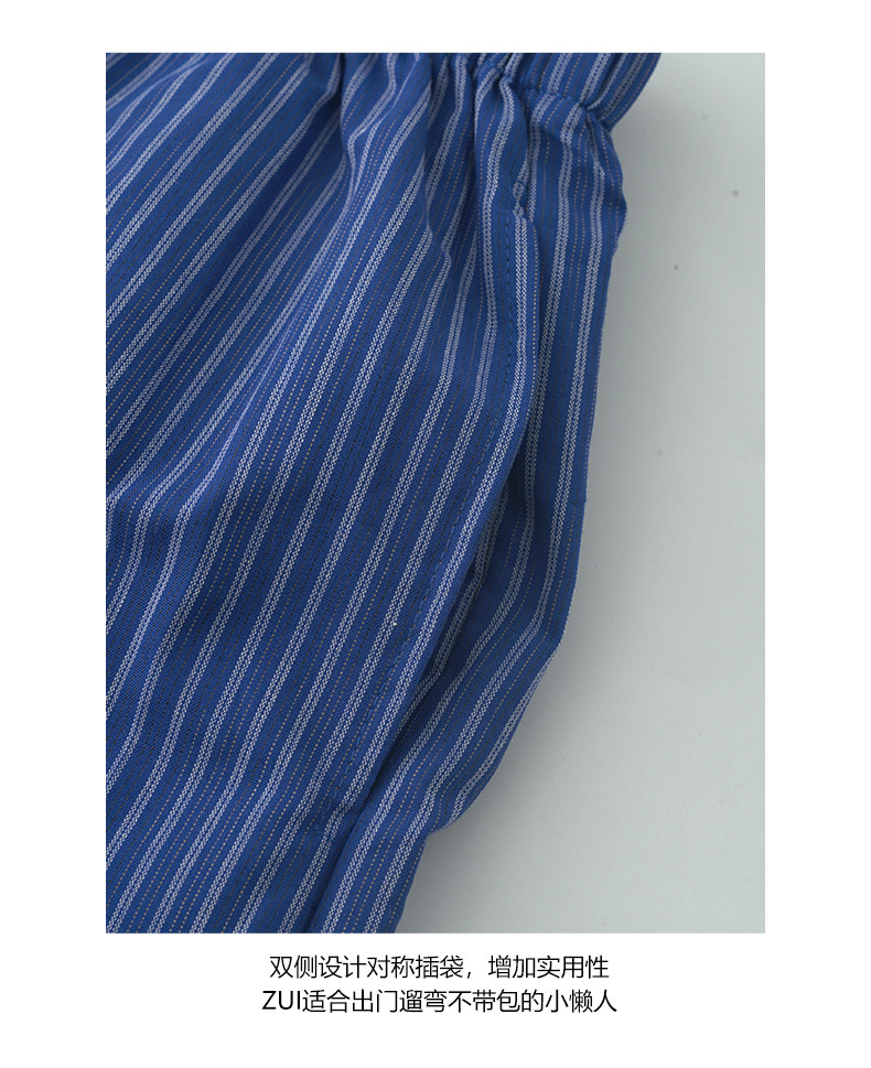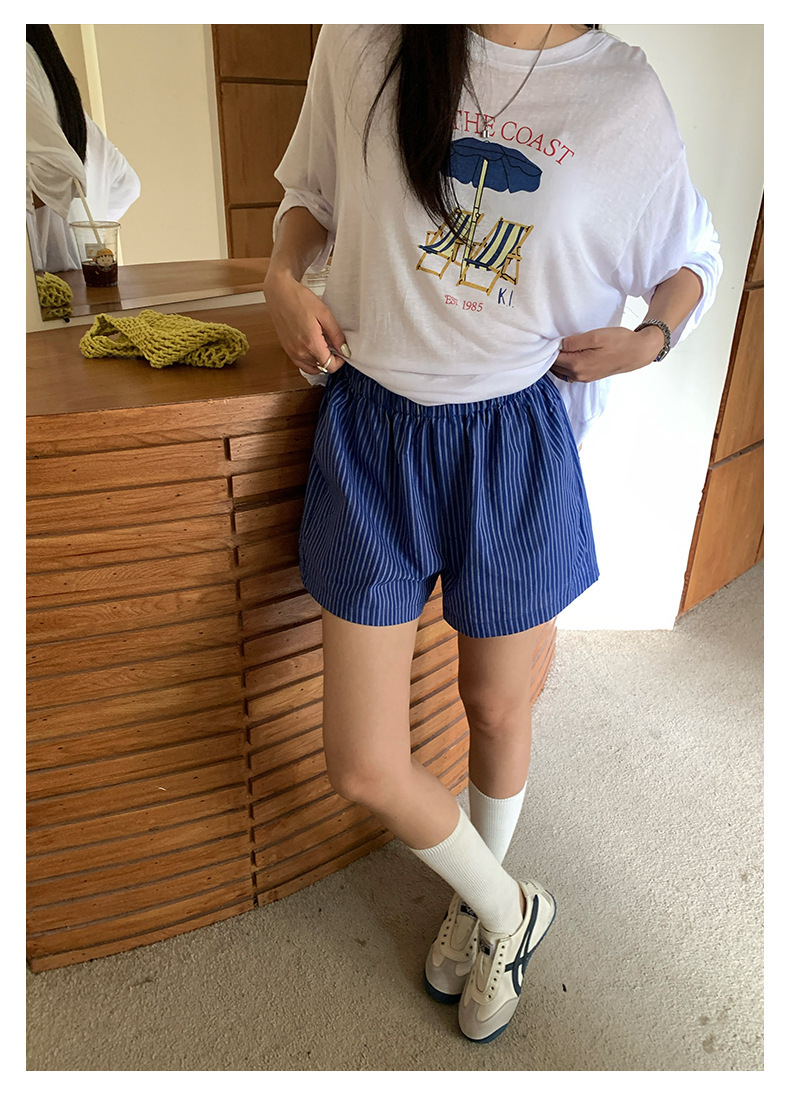 *o-ha-you*【FHZH1GC5020657】韓版條紋短褲夏季款不透鬆緊高腰闊腿褲戀夏風穿搭-如有需要請先諮詢