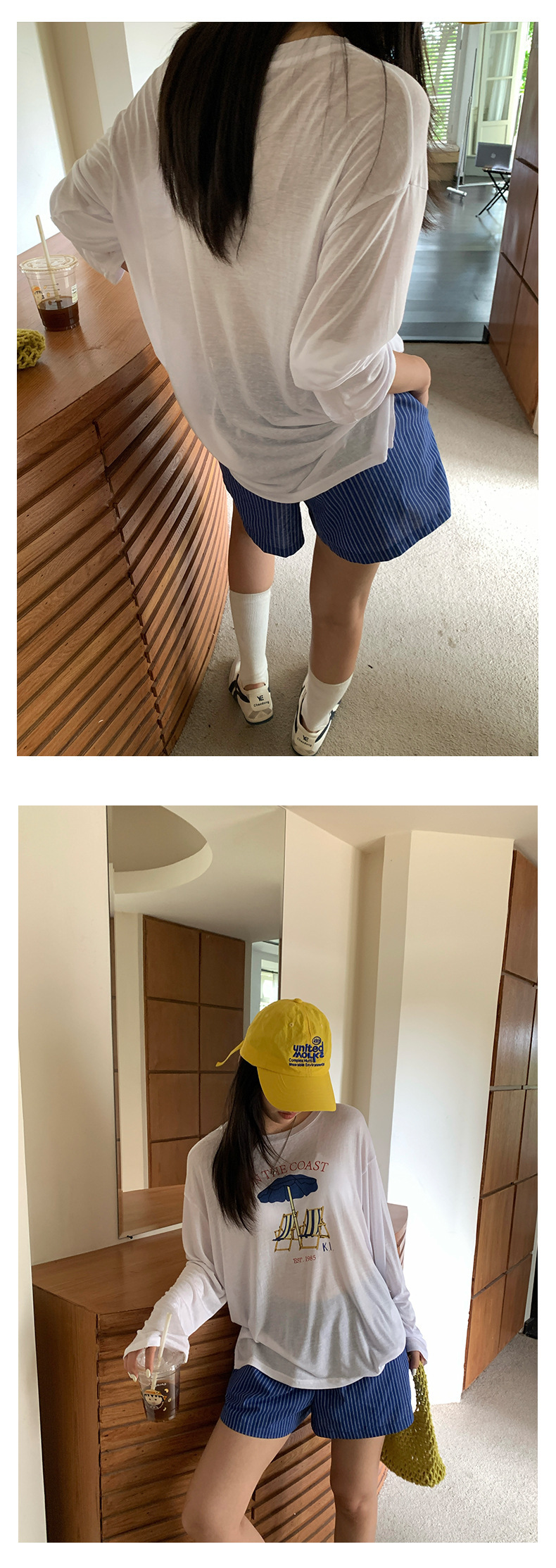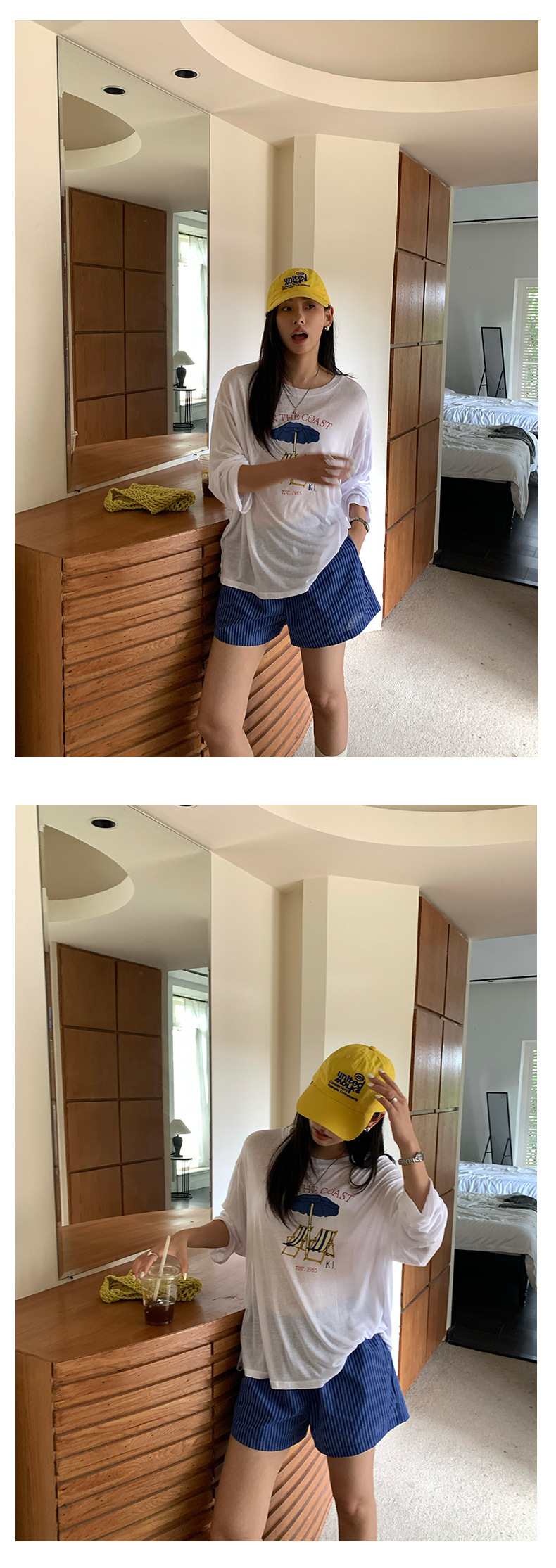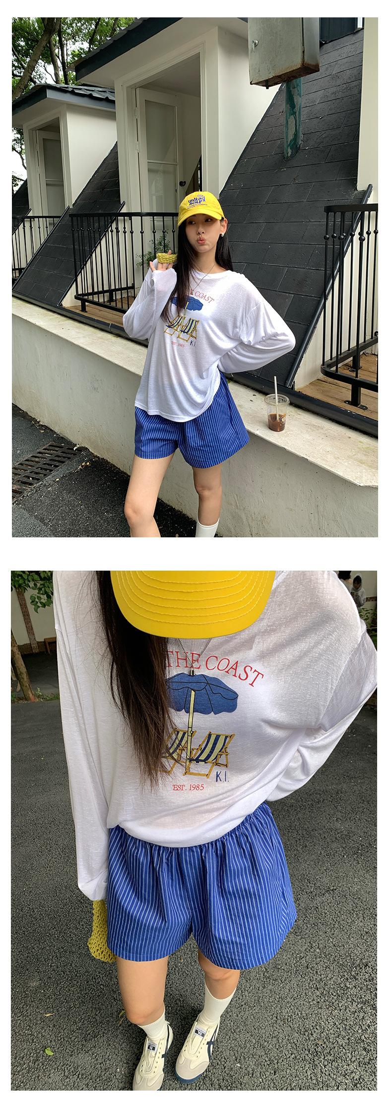 *o-ha-you*【FHZH1GC5020657】韓版條紋短褲夏季款不透鬆緊高腰闊腿褲戀夏風穿搭-如有需要請先諮詢