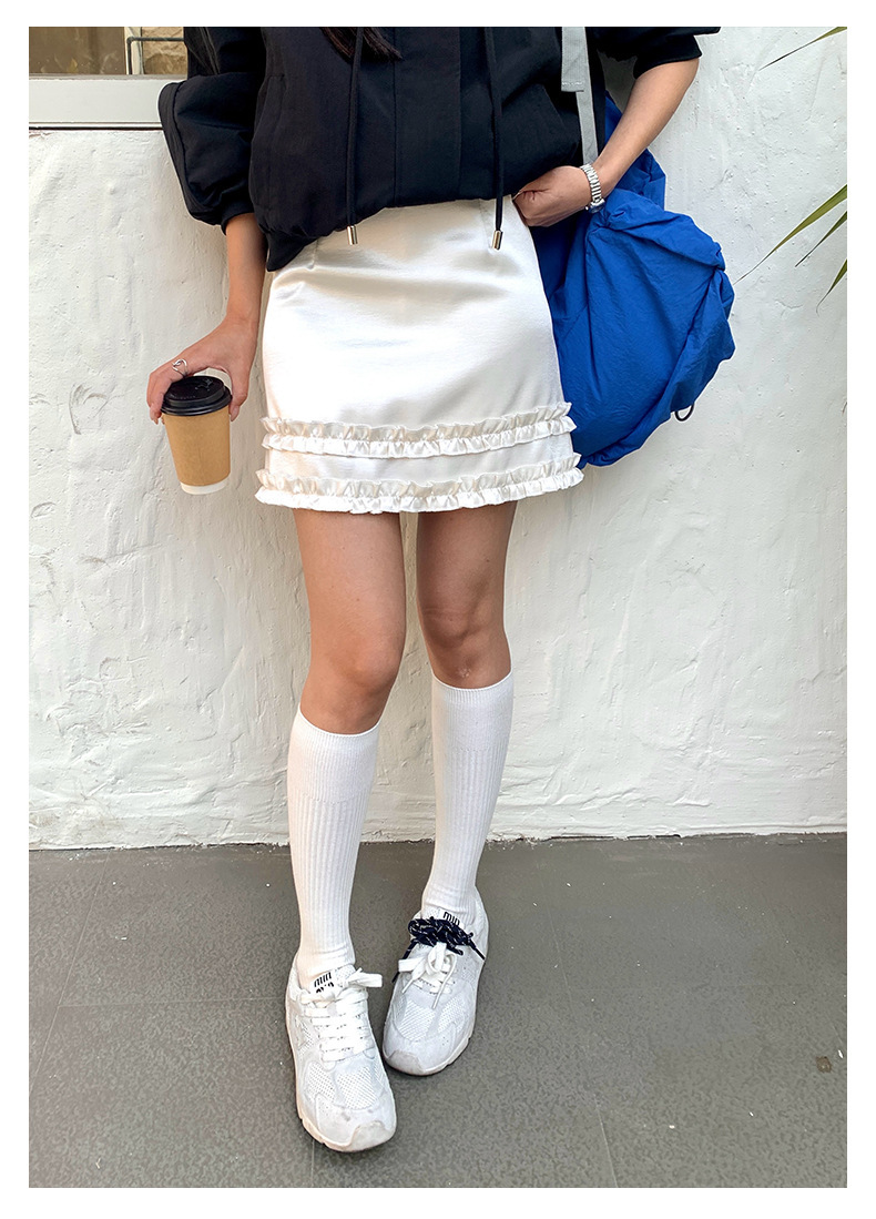 *o-ha-you*【FHZH1GE5010198】法式緞面雙層花邊半身裙2025春韓系包臀A字短裙-2色-如有需要請先諮詢