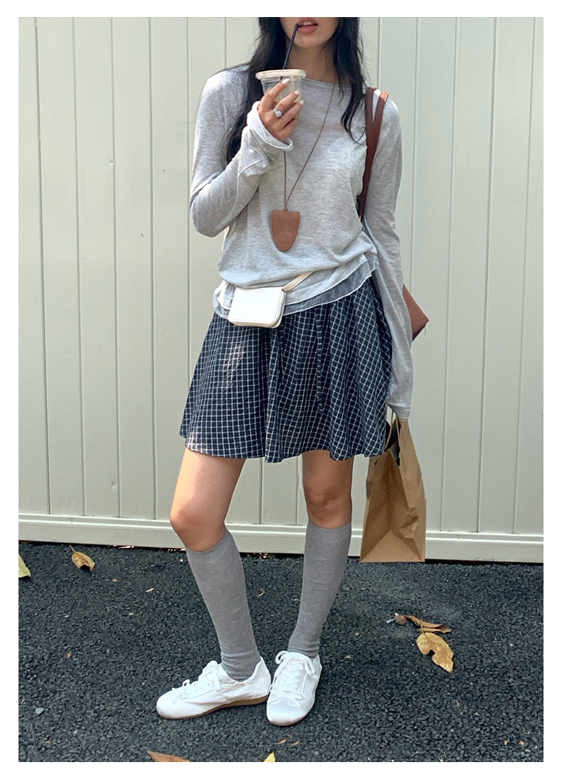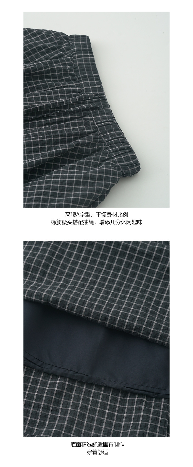 *o-ha-you*【FHZH1GE5020406】鬆緊腰格紋拼接內襯設計A字短裙2025夏休閒俏皮半裙-如有需要請先諮詢