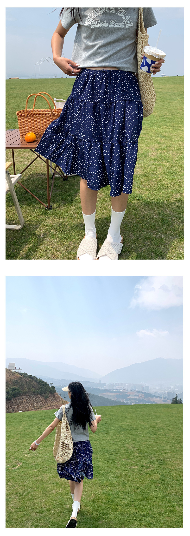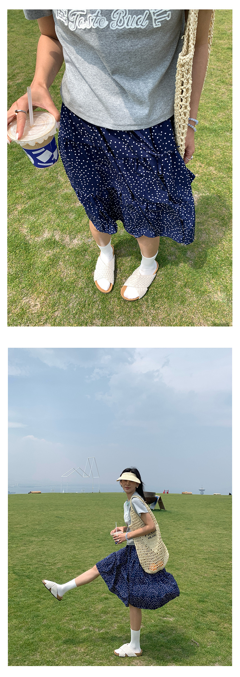*o-ha-you*【FHZH1GE5020420】白色波點鬆緊腰多層裙擺半身裙2025夏款甜美俏皮短裙-2色-如有需要請先諮詢