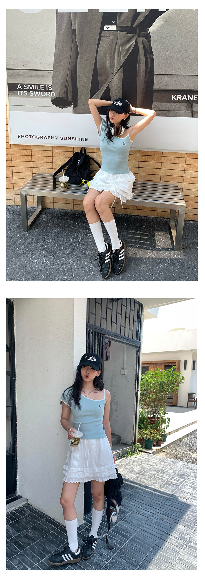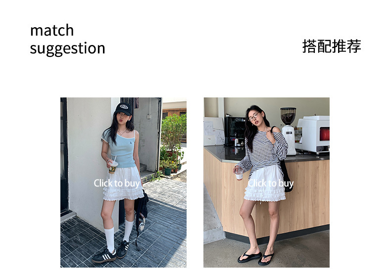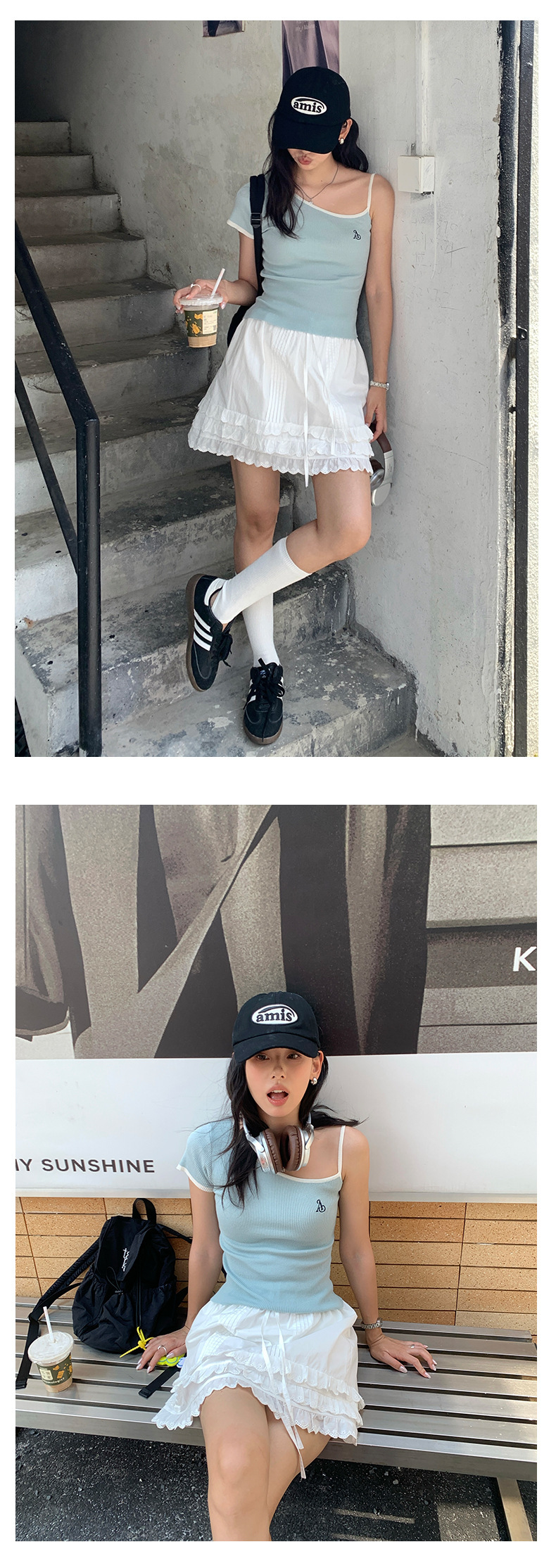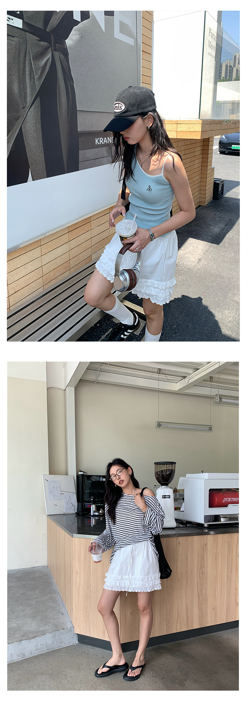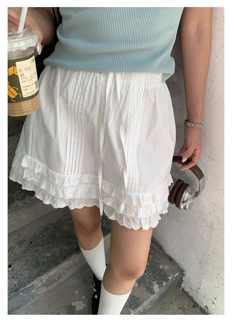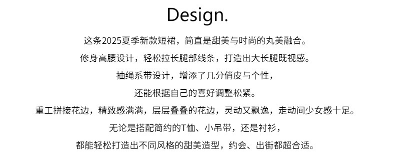 *o-ha-you*【FHZH1GE5020427】韓系修身高腰抽繩繫帶設計重工拼接花邊甜美百搭短裙