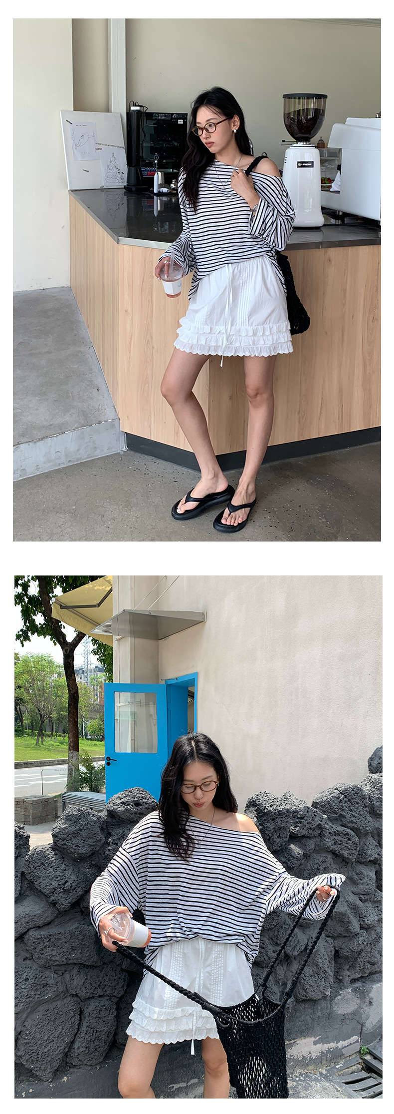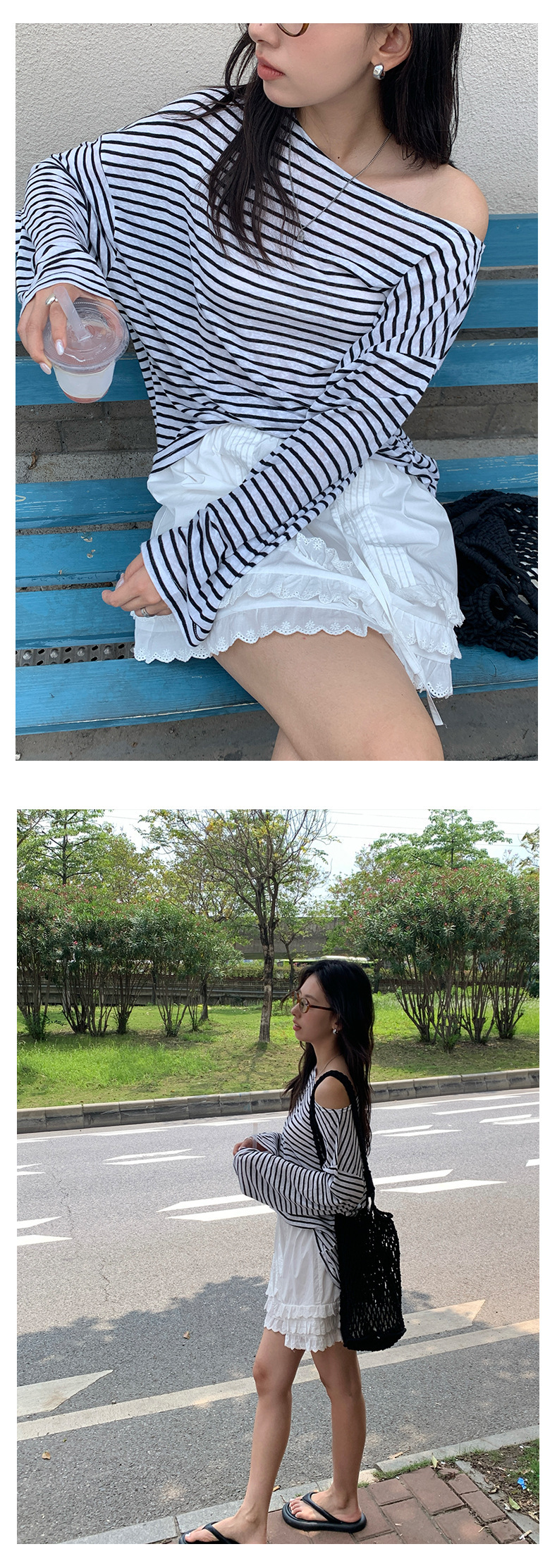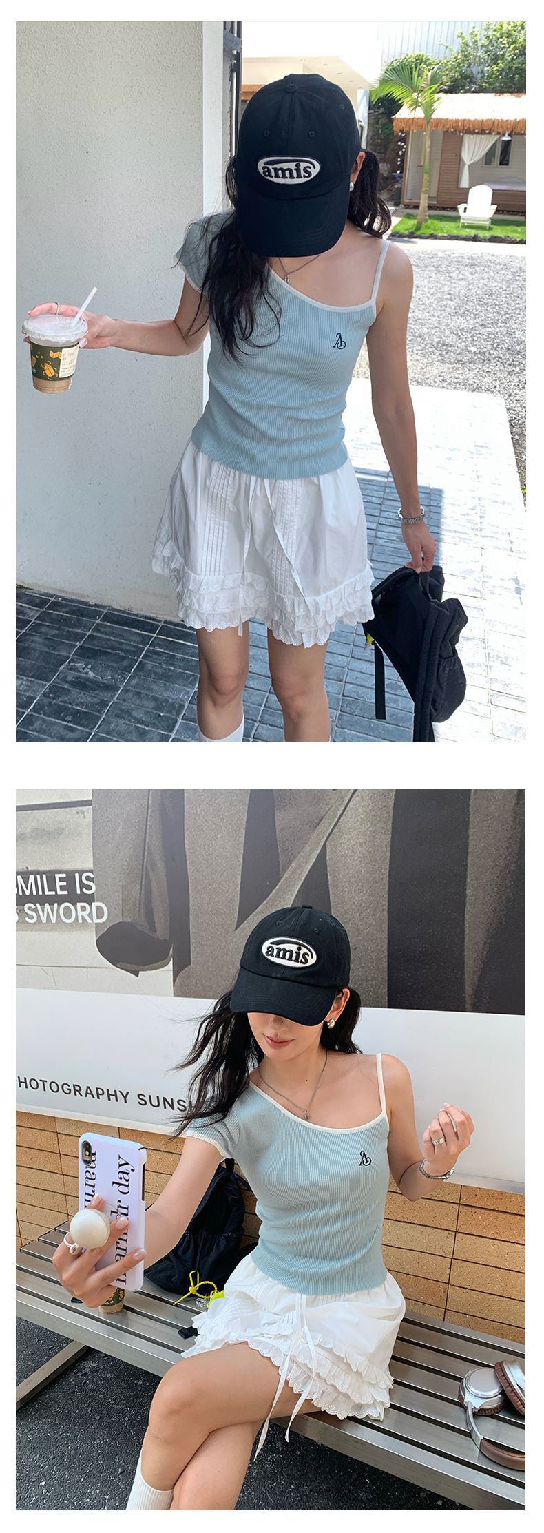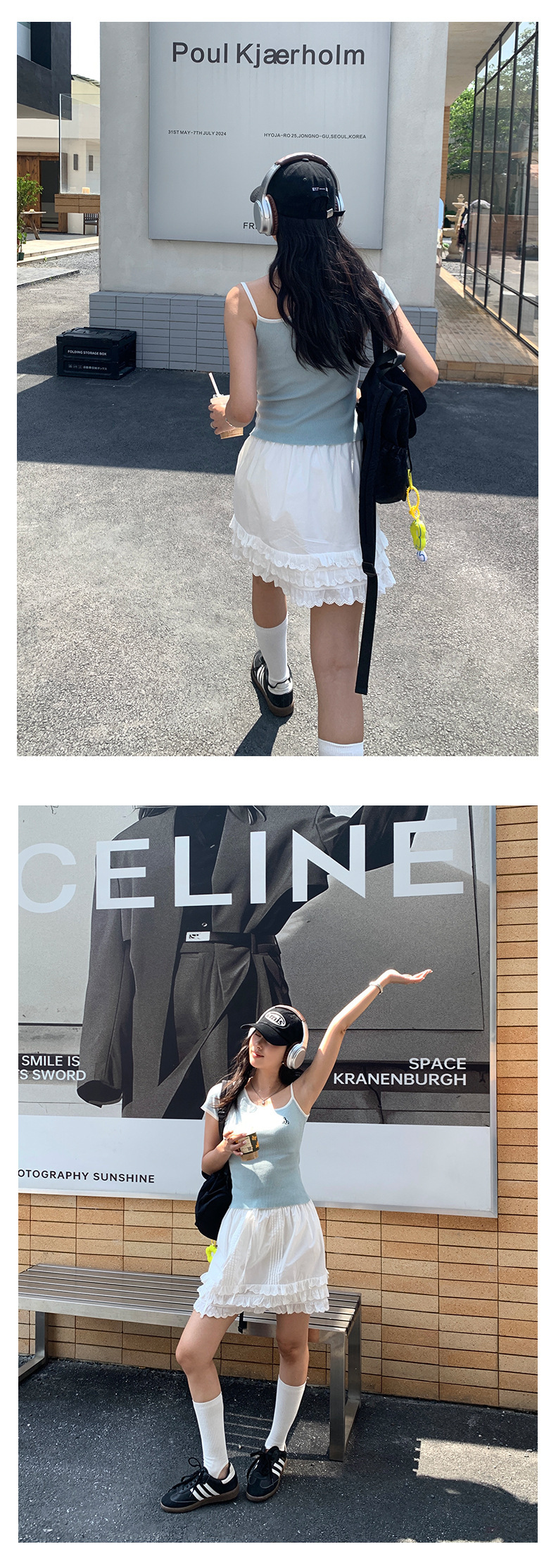 *o-ha-you*【FHZH1GE5020427】韓系修身高腰抽繩繫帶設計重工拼接花邊甜美百搭短裙
