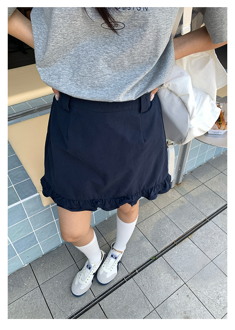 *o-ha-you*【FHZH1GE5020605】韓系新款下擺木耳邊顯瘦短裙防走光高腰A字半身裙-2色-如有需要請先諮詢