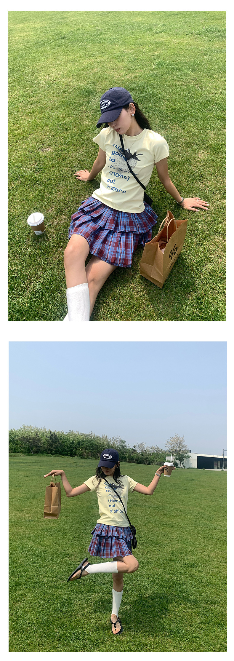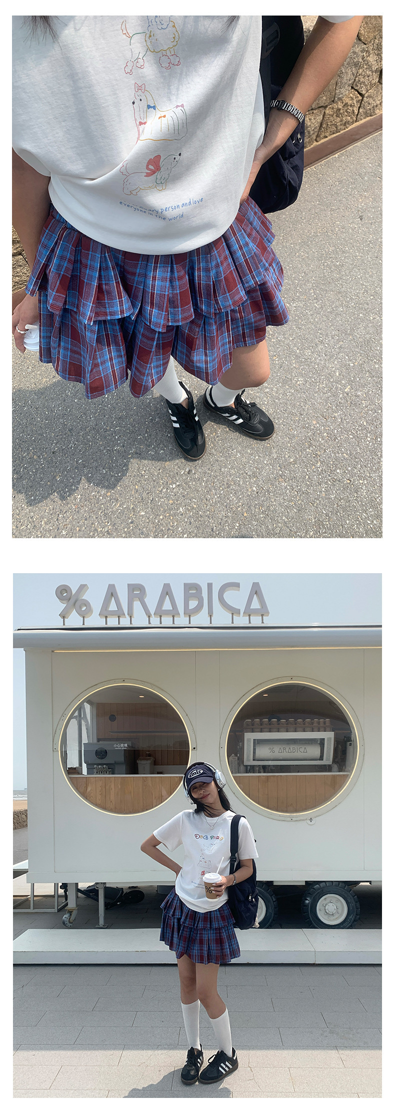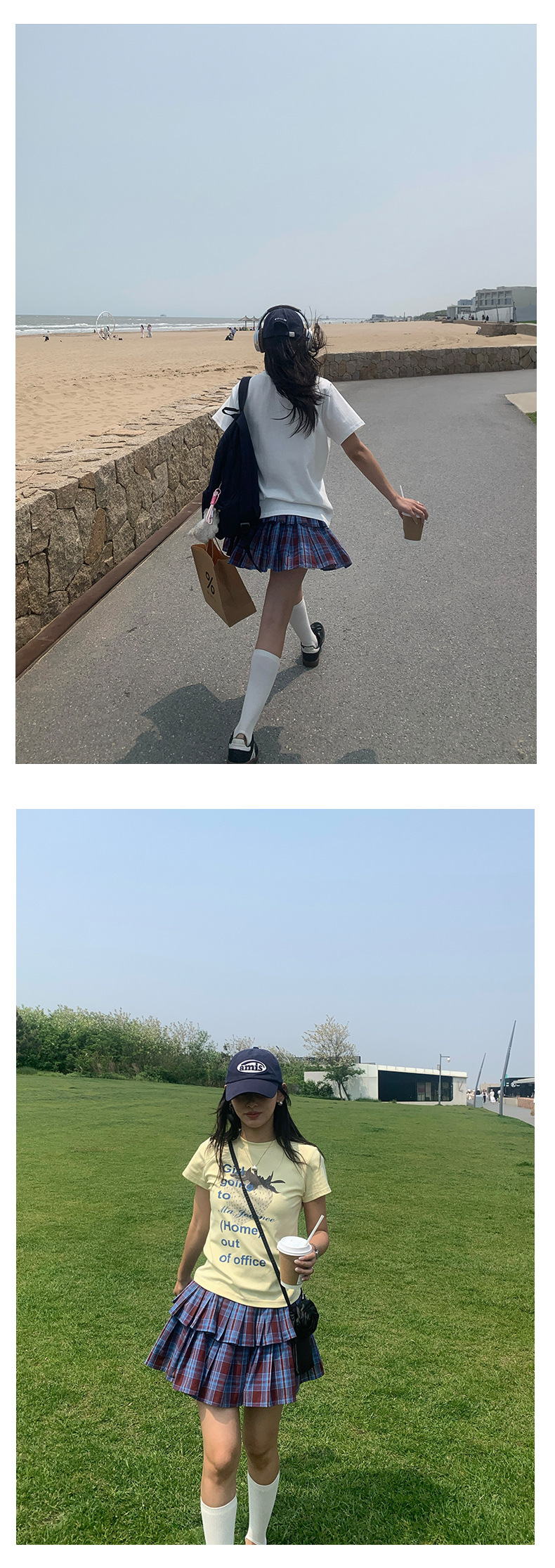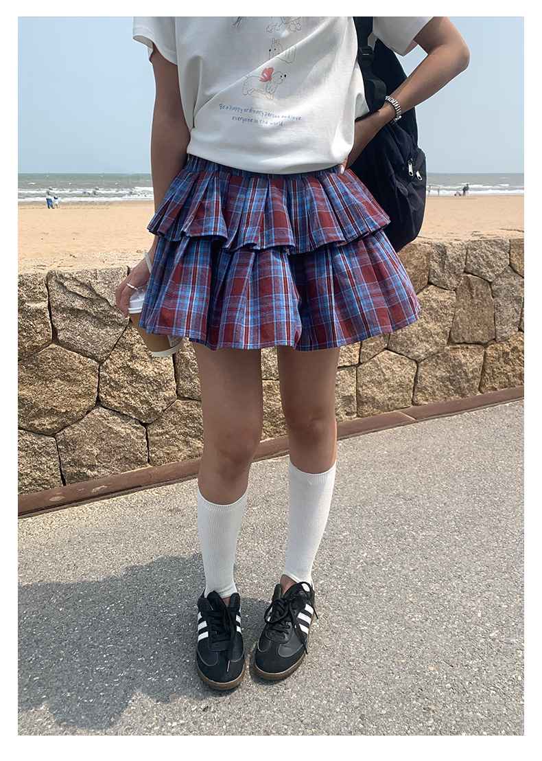 *o-ha-you*【FHZH1GE5020625】韓系新款格紋半身裙夏季學院風高腰短格裙百褶裙半身裙