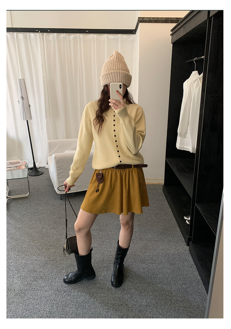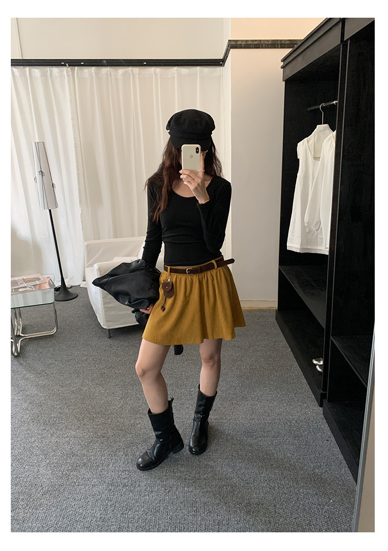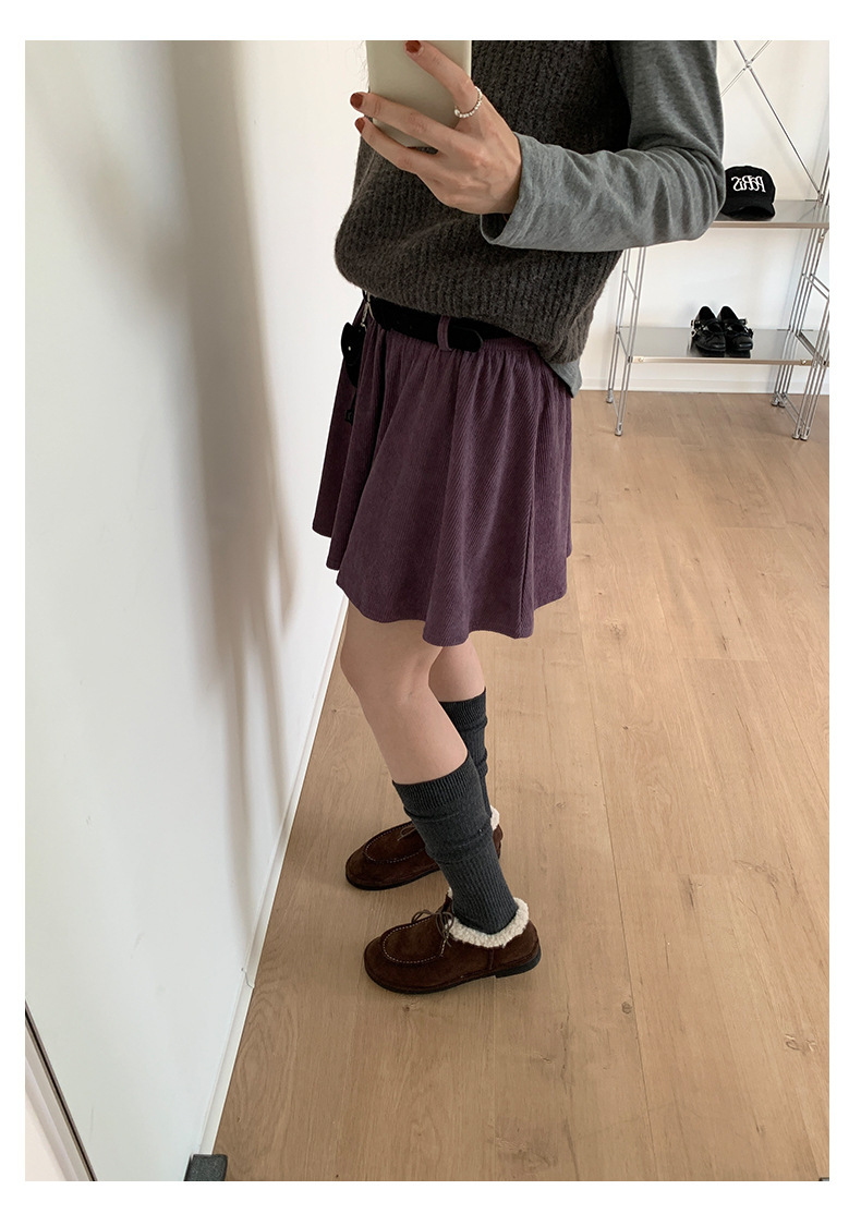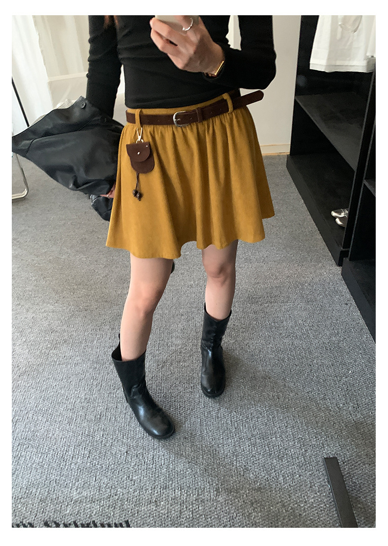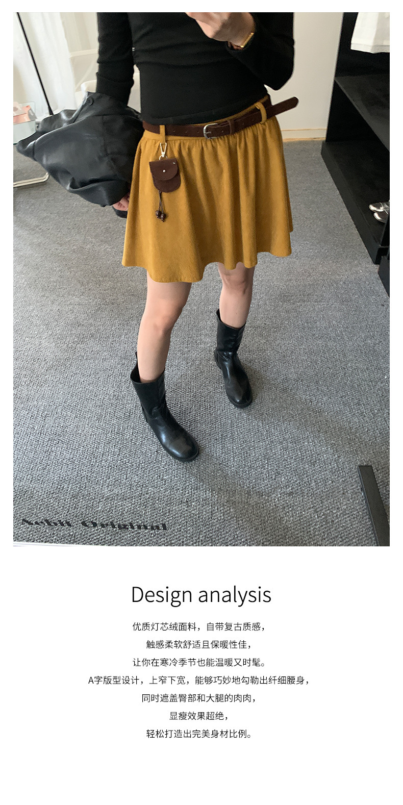 *o-ha-you*【FHZH1GE5041042】辣妹復古燈芯絨半身裙秋冬新款鬆緊腰顯瘦百搭A字短裙-3色