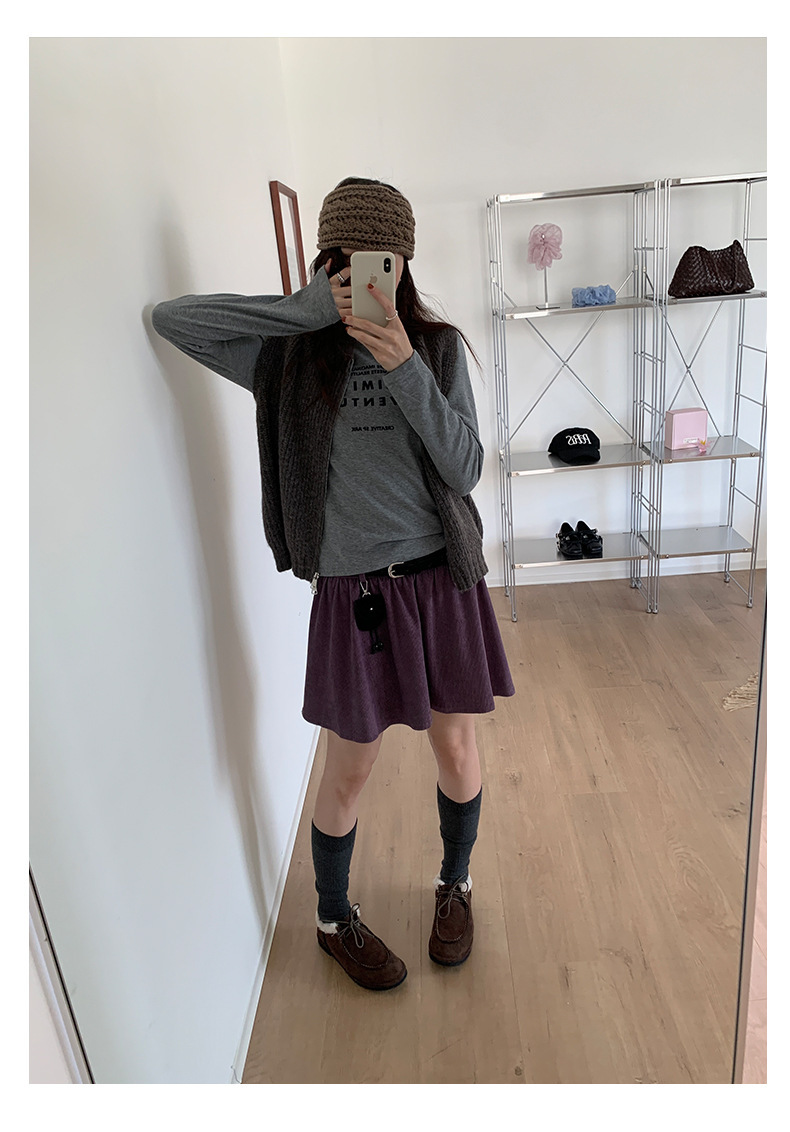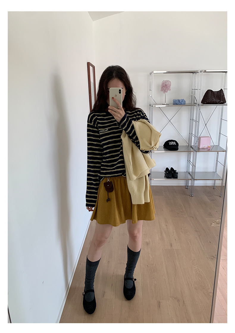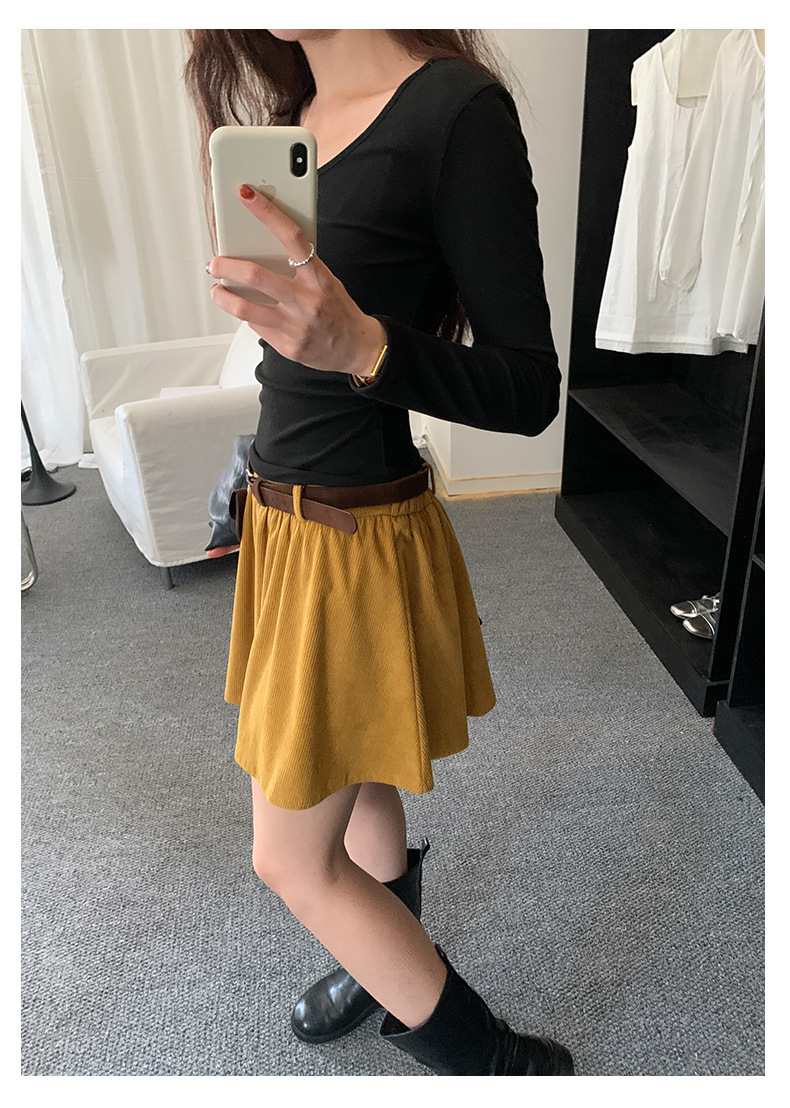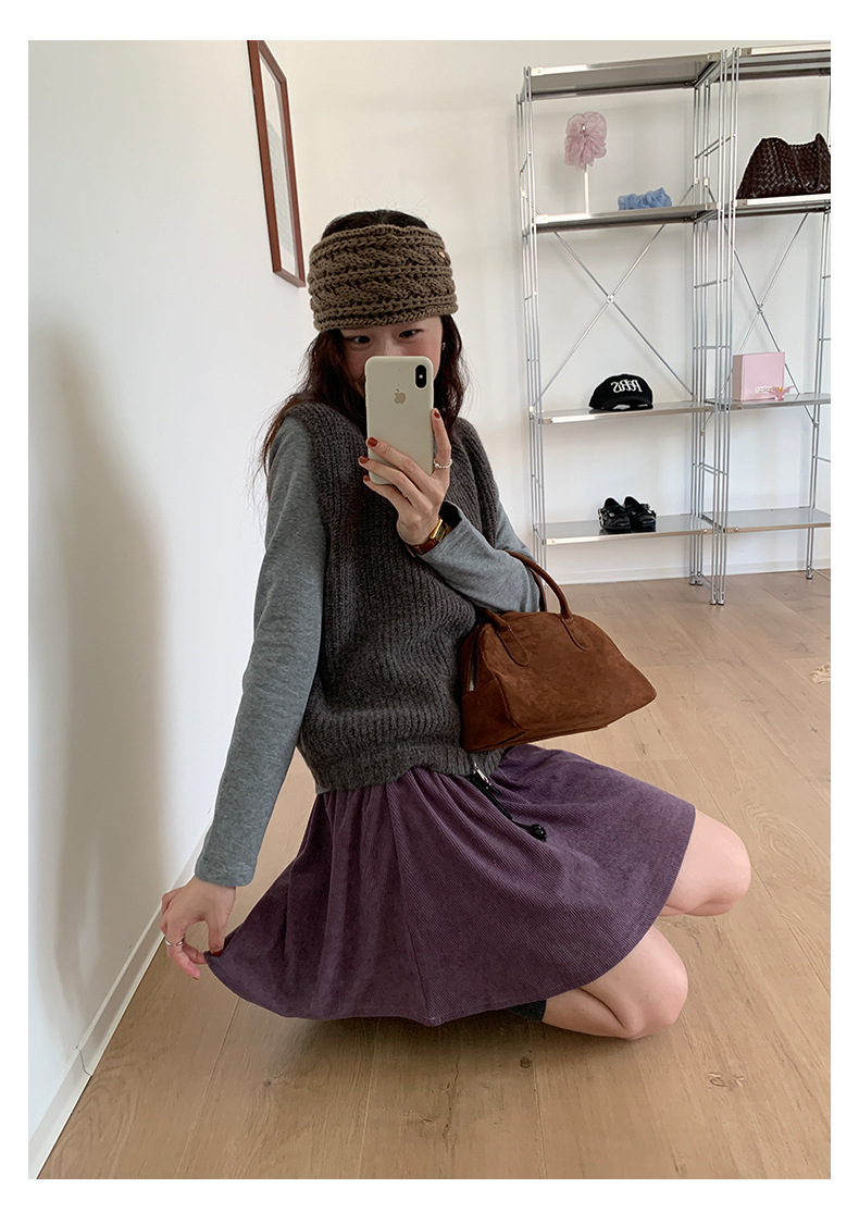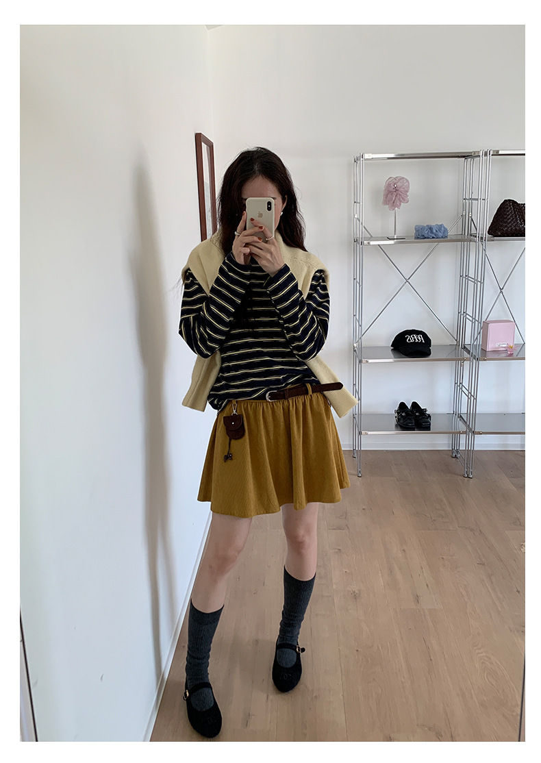 *o-ha-you*【FHZH1GE5041042】辣妹復古燈芯絨半身裙秋冬新款鬆緊腰顯瘦百搭A字短裙-3色