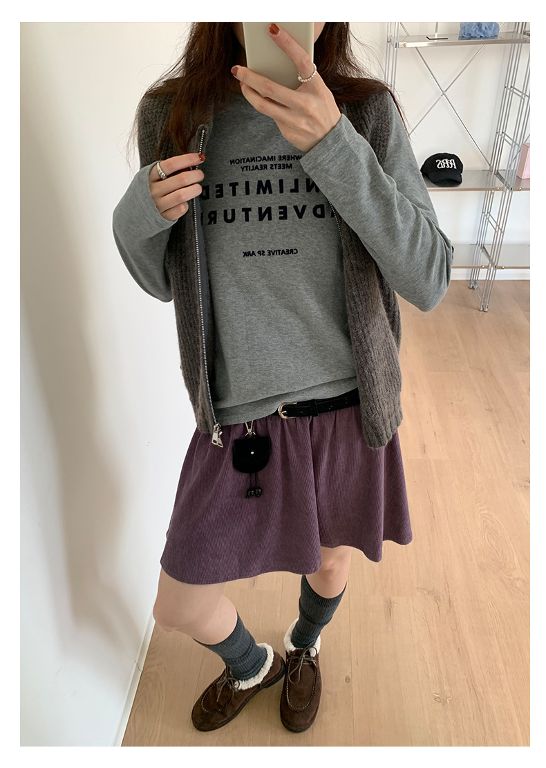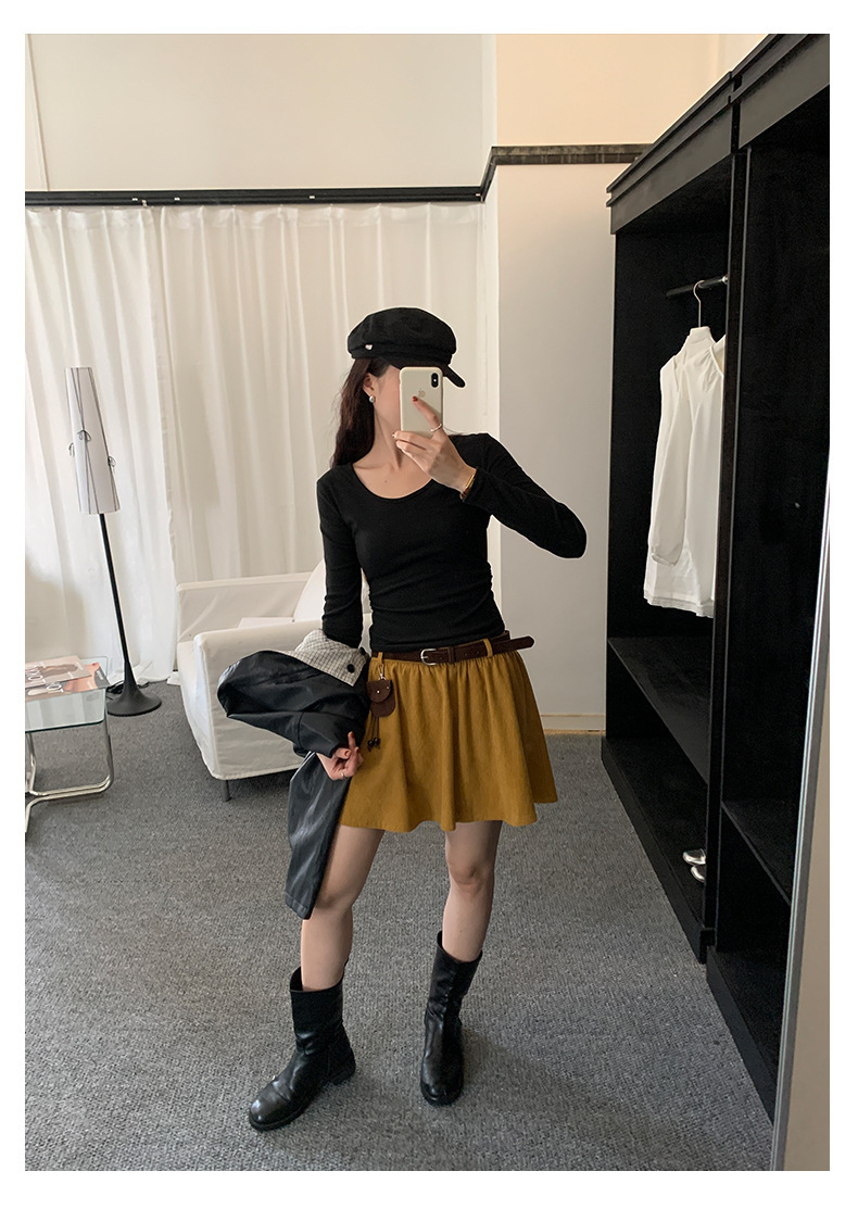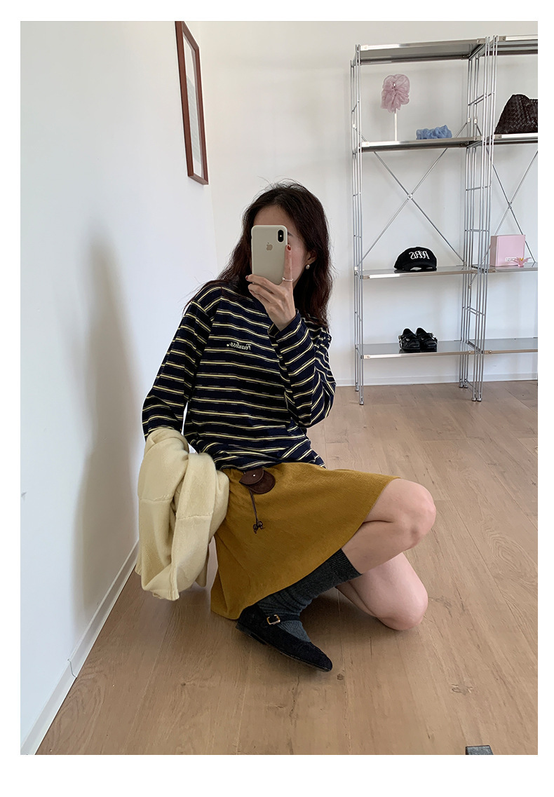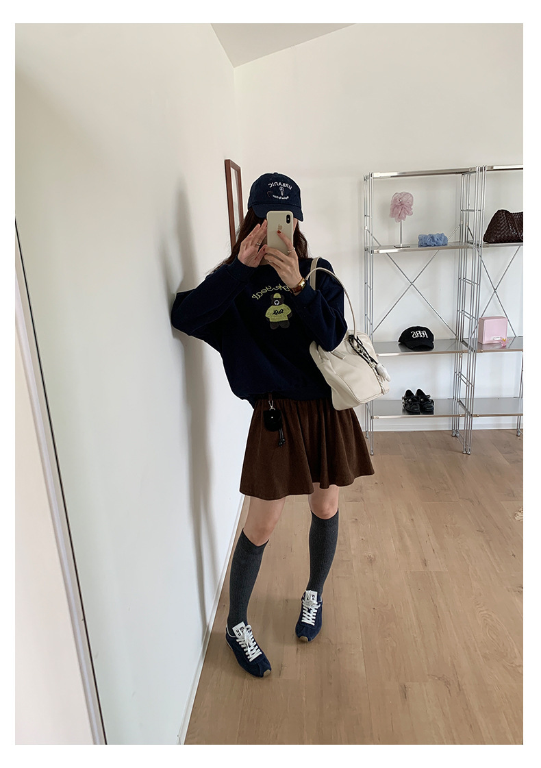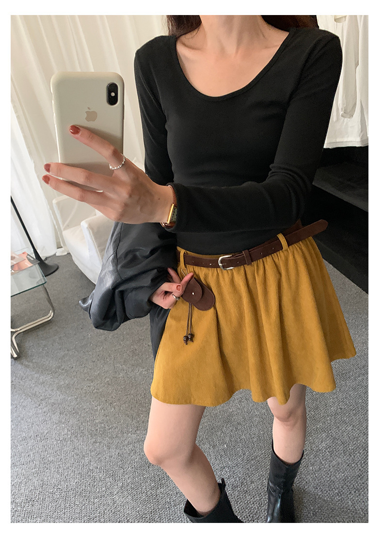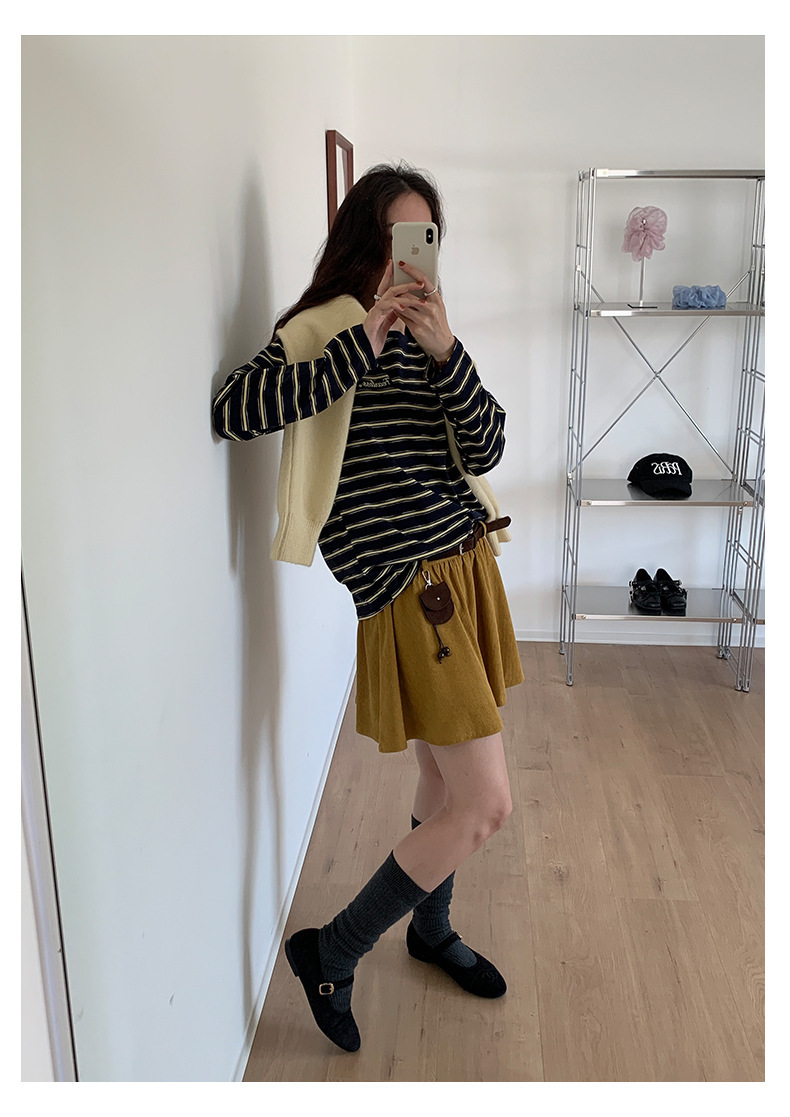 *o-ha-you*【FHZH1GE5041042】辣妹復古燈芯絨半身裙秋冬新款鬆緊腰顯瘦百搭A字短裙-3色