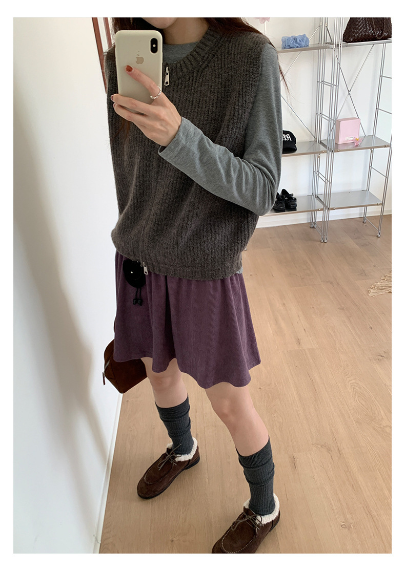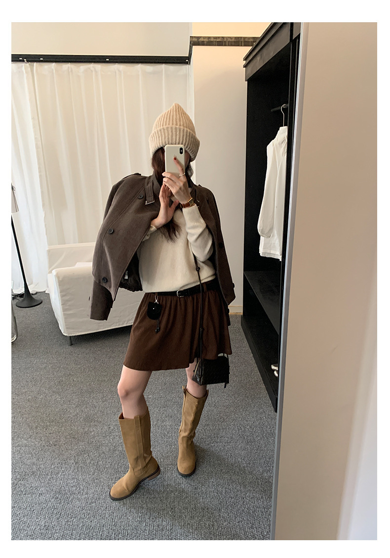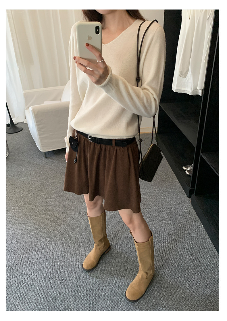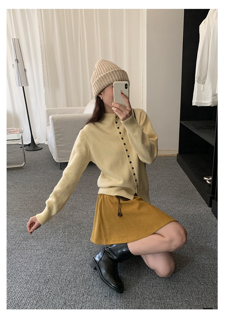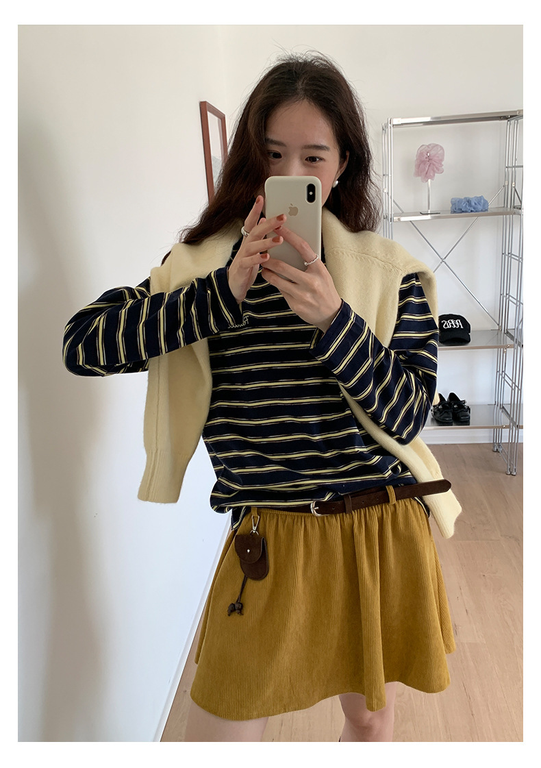 *o-ha-you*【FHZH1GE5041042】辣妹復古燈芯絨半身裙秋冬新款鬆緊腰顯瘦百搭A字短裙-3色