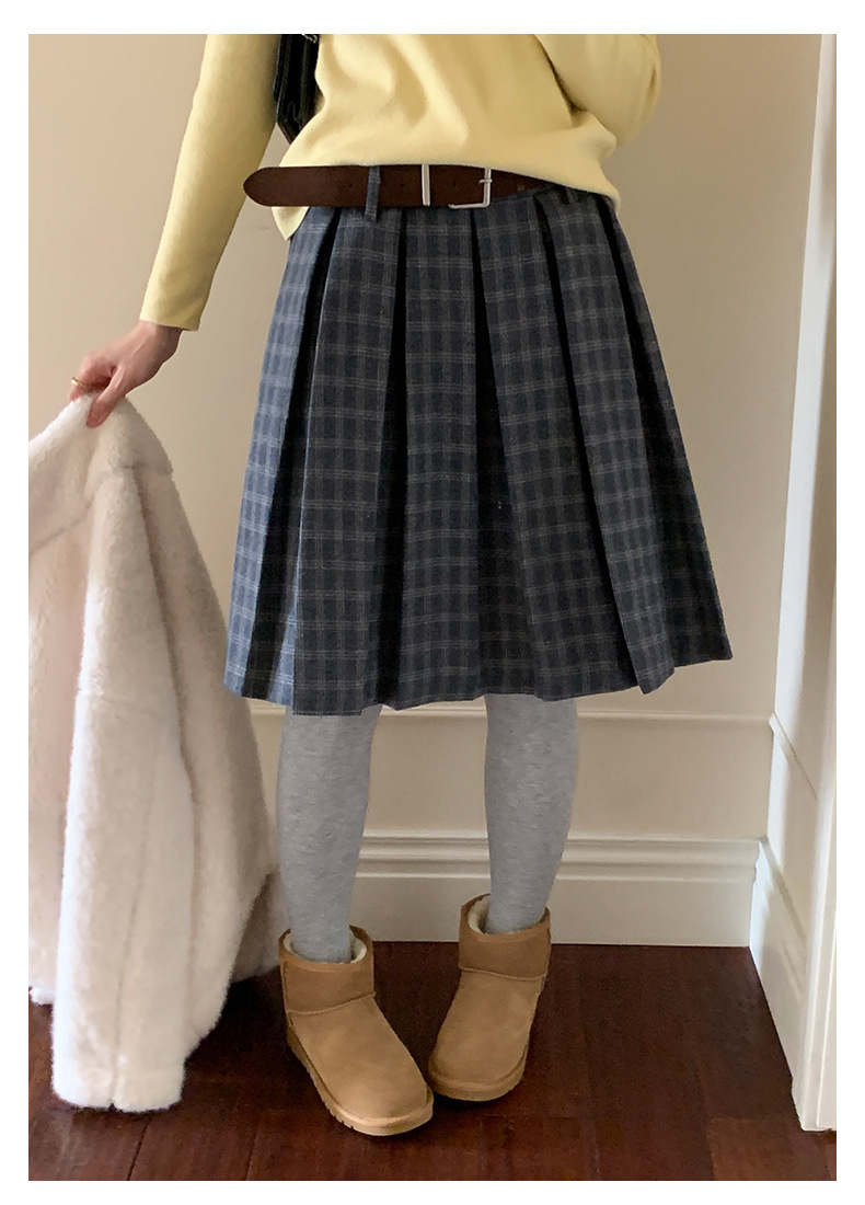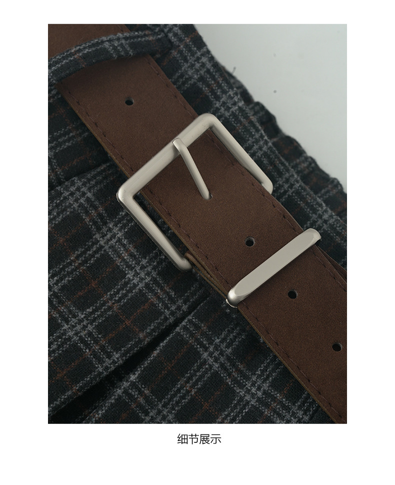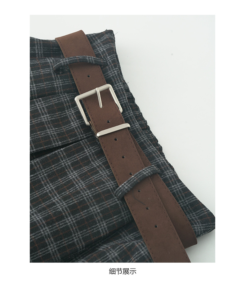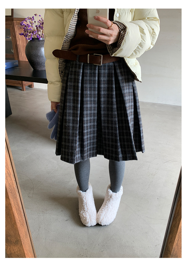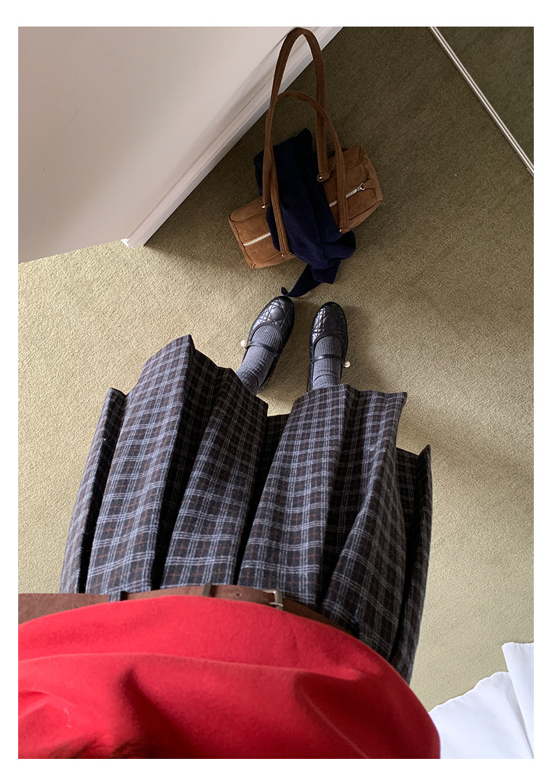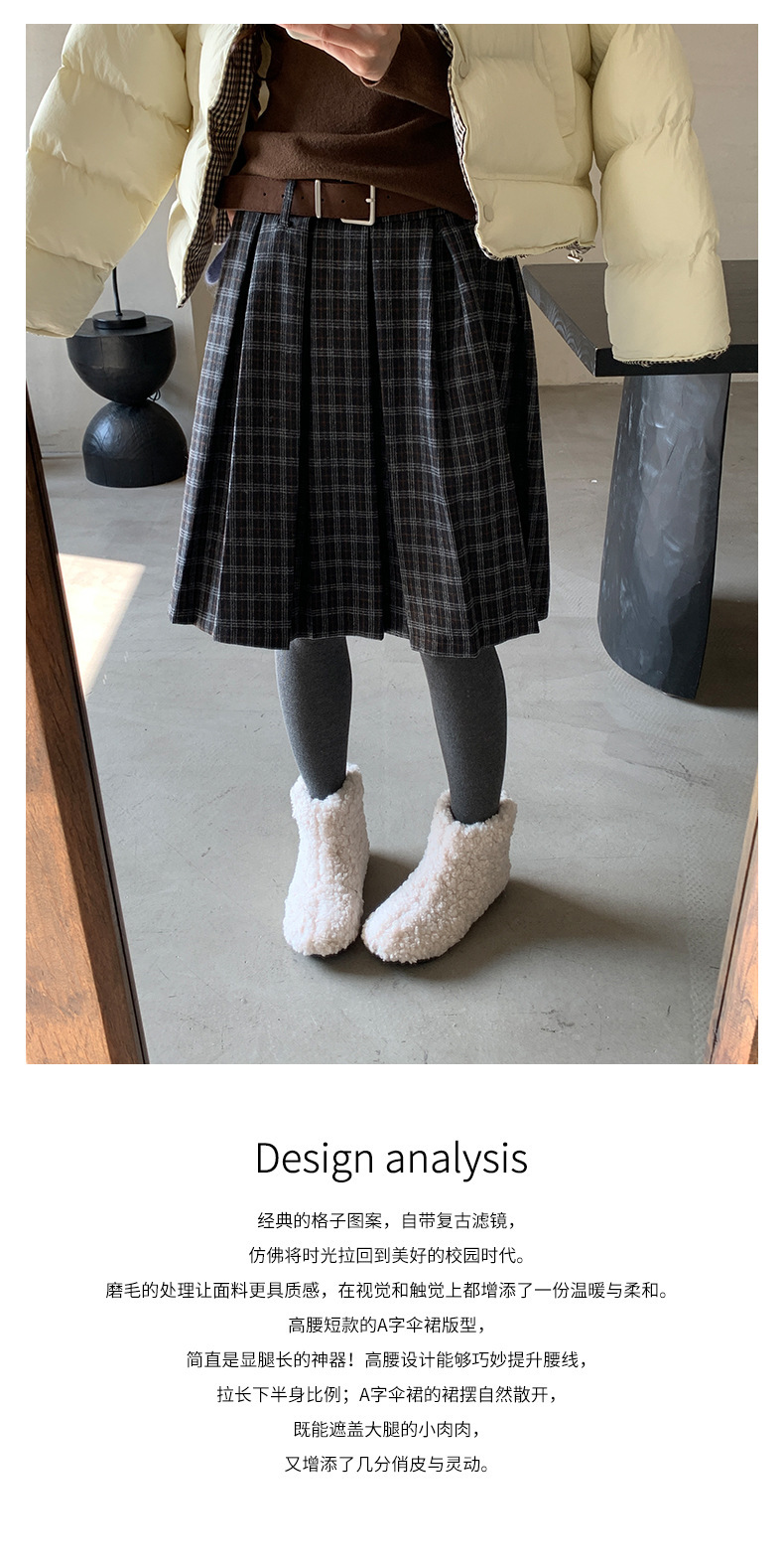 *o-ha-you*【FHZH1GE5041108】學院風復古磨毛格紋百褶裙女冬季韓版高腰短A字傘裙-2色