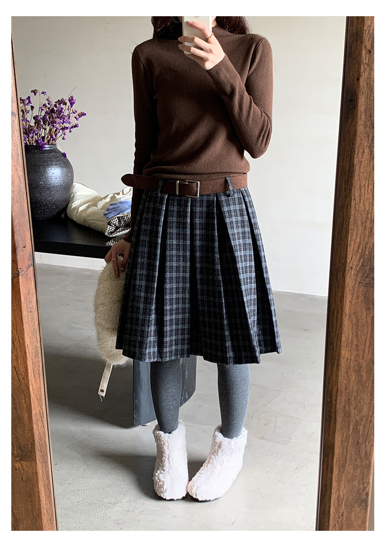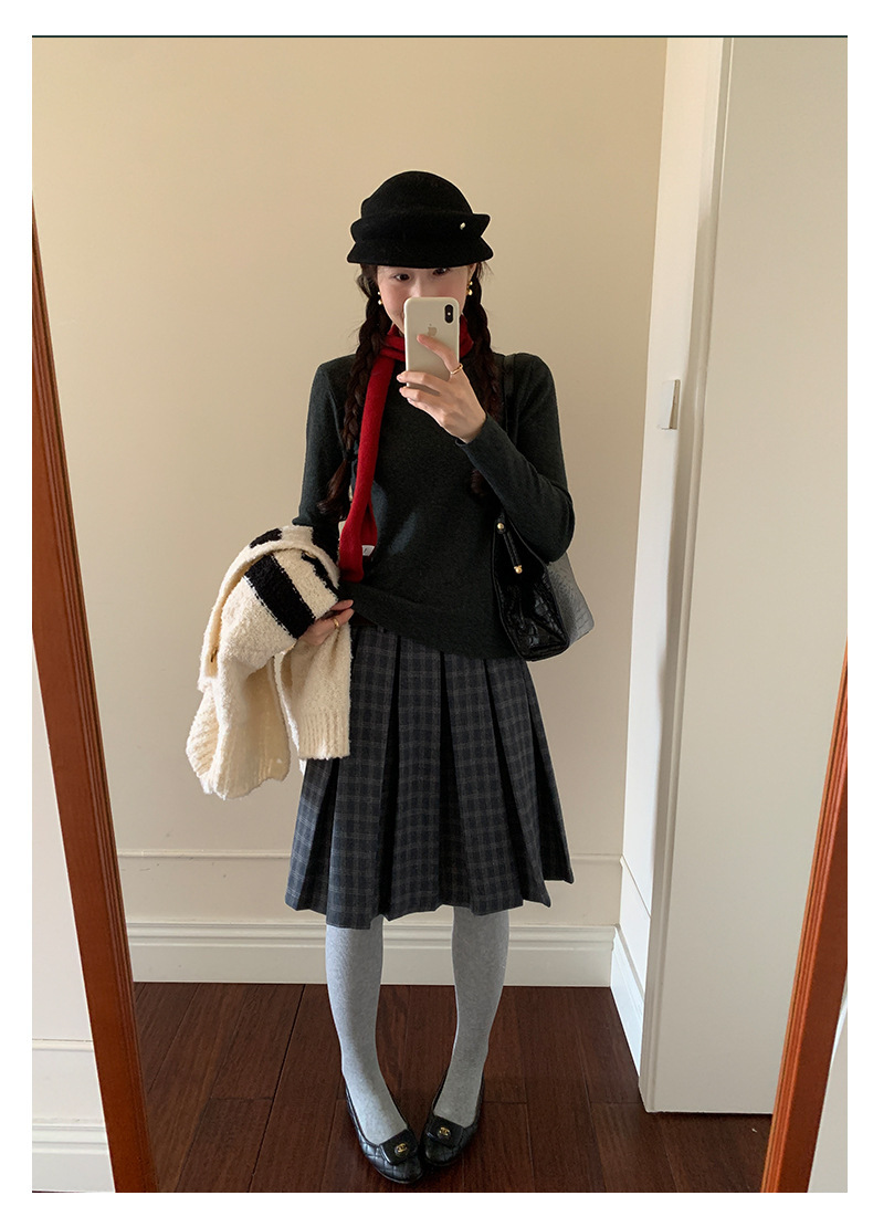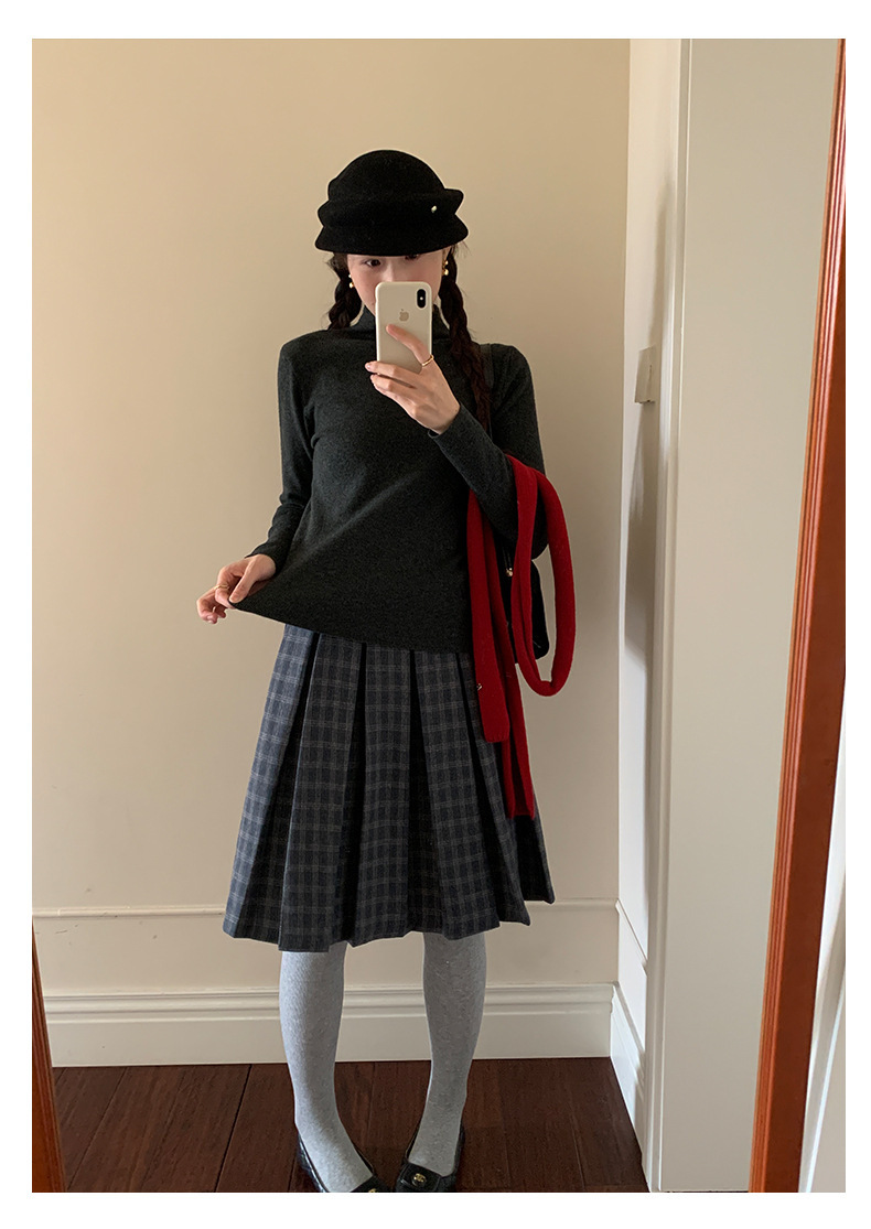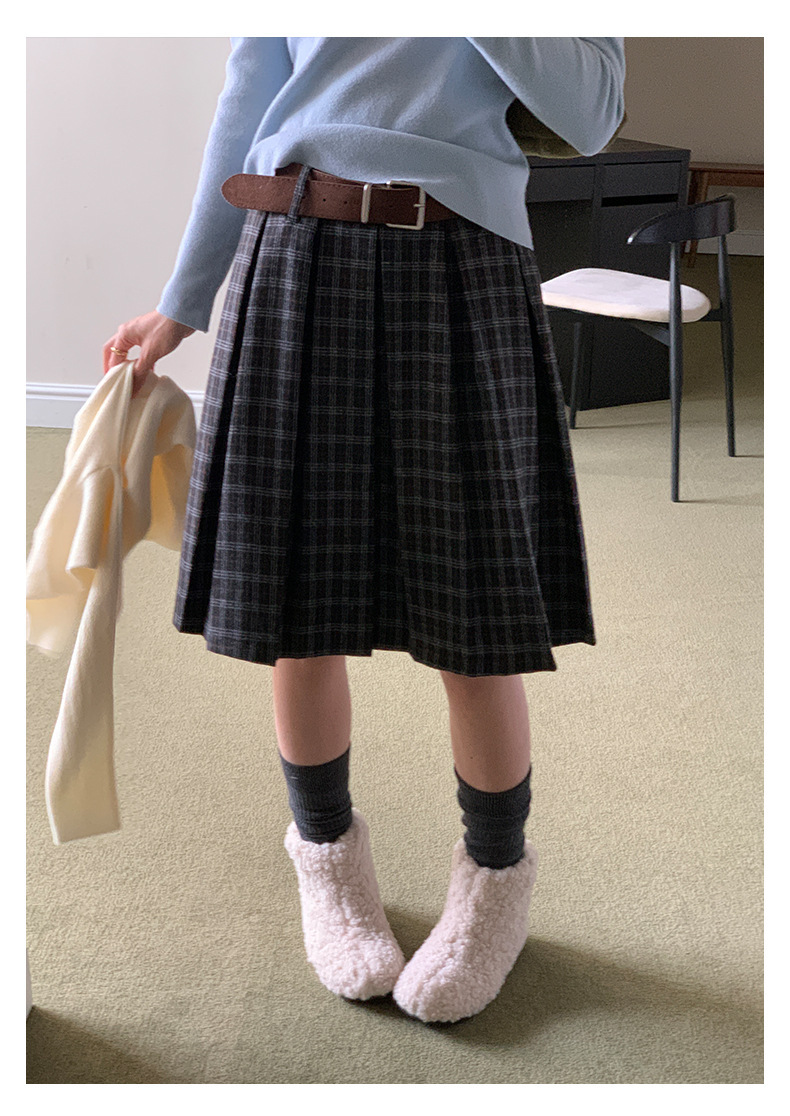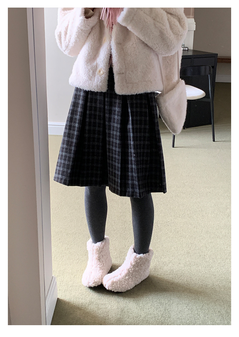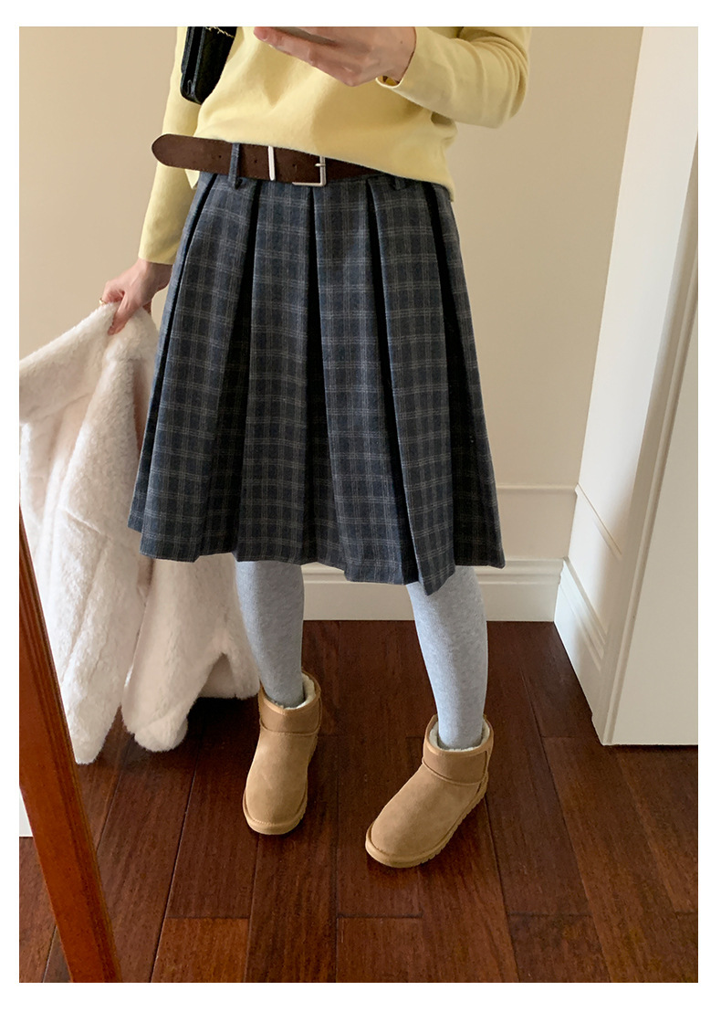 *o-ha-you*【FHZH1GE5041108】學院風復古磨毛格紋百褶裙女冬季韓版高腰短A字傘裙-2色